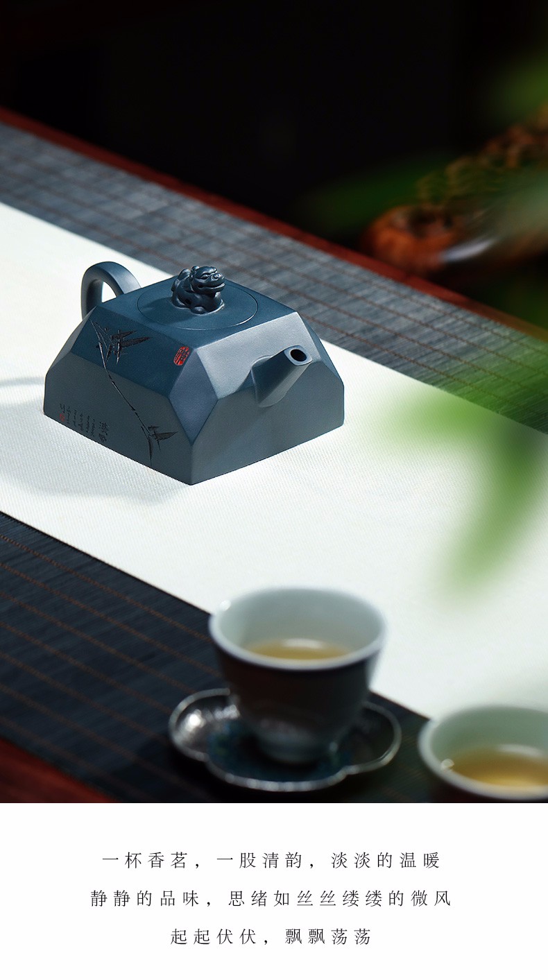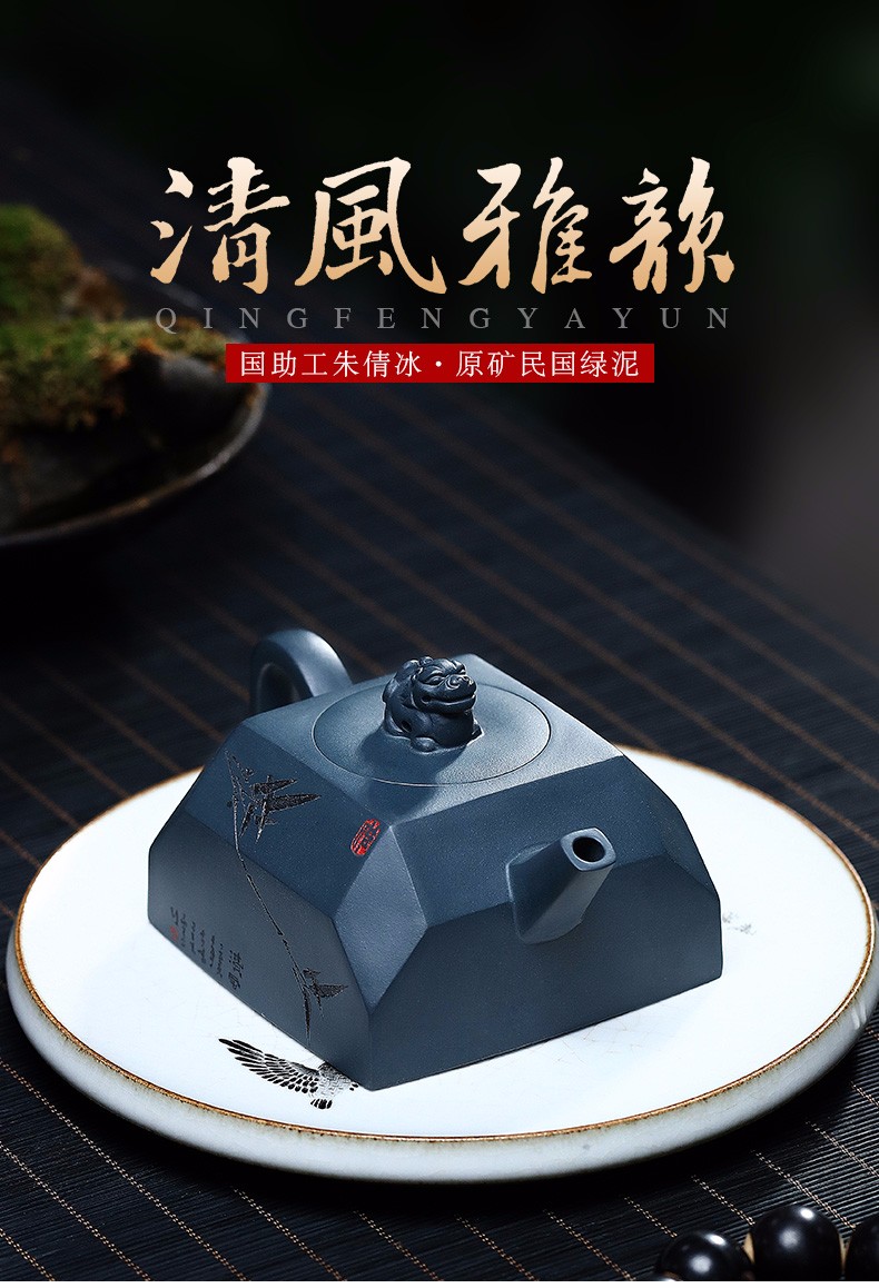 Zanghutianxia Yixing Purple Clay Pot Famous Pure Handmade Raw Ore National Green Mud Square Gongfu Teapot Fresh Style Elegant St