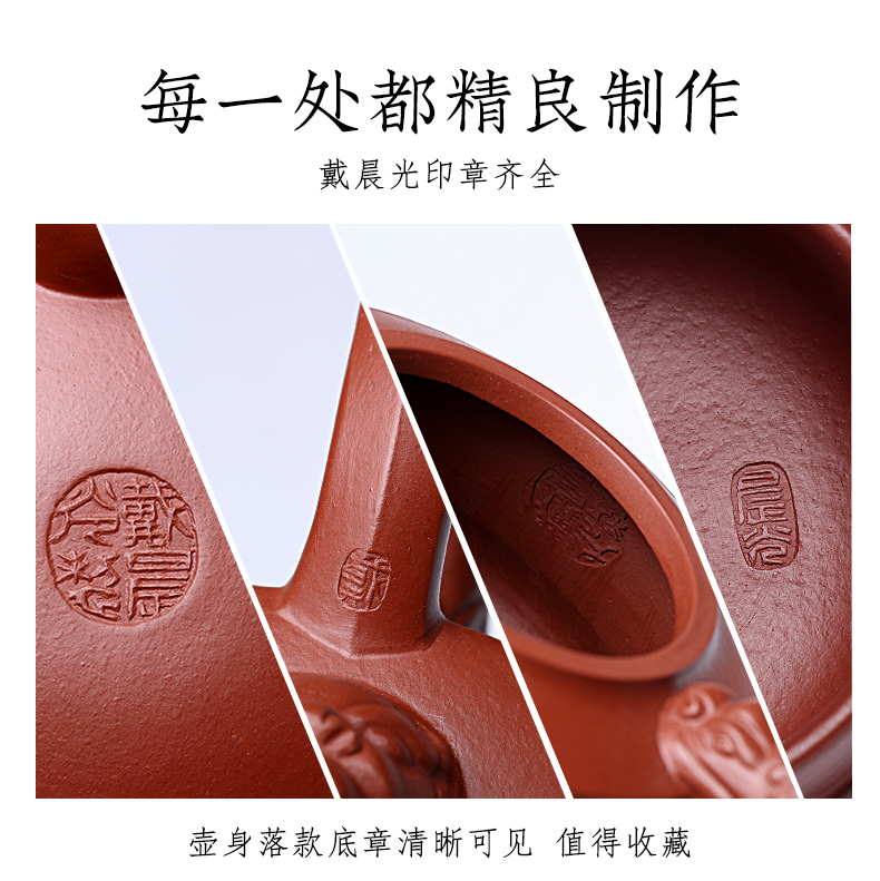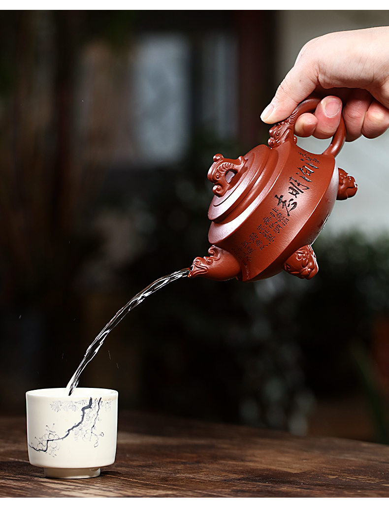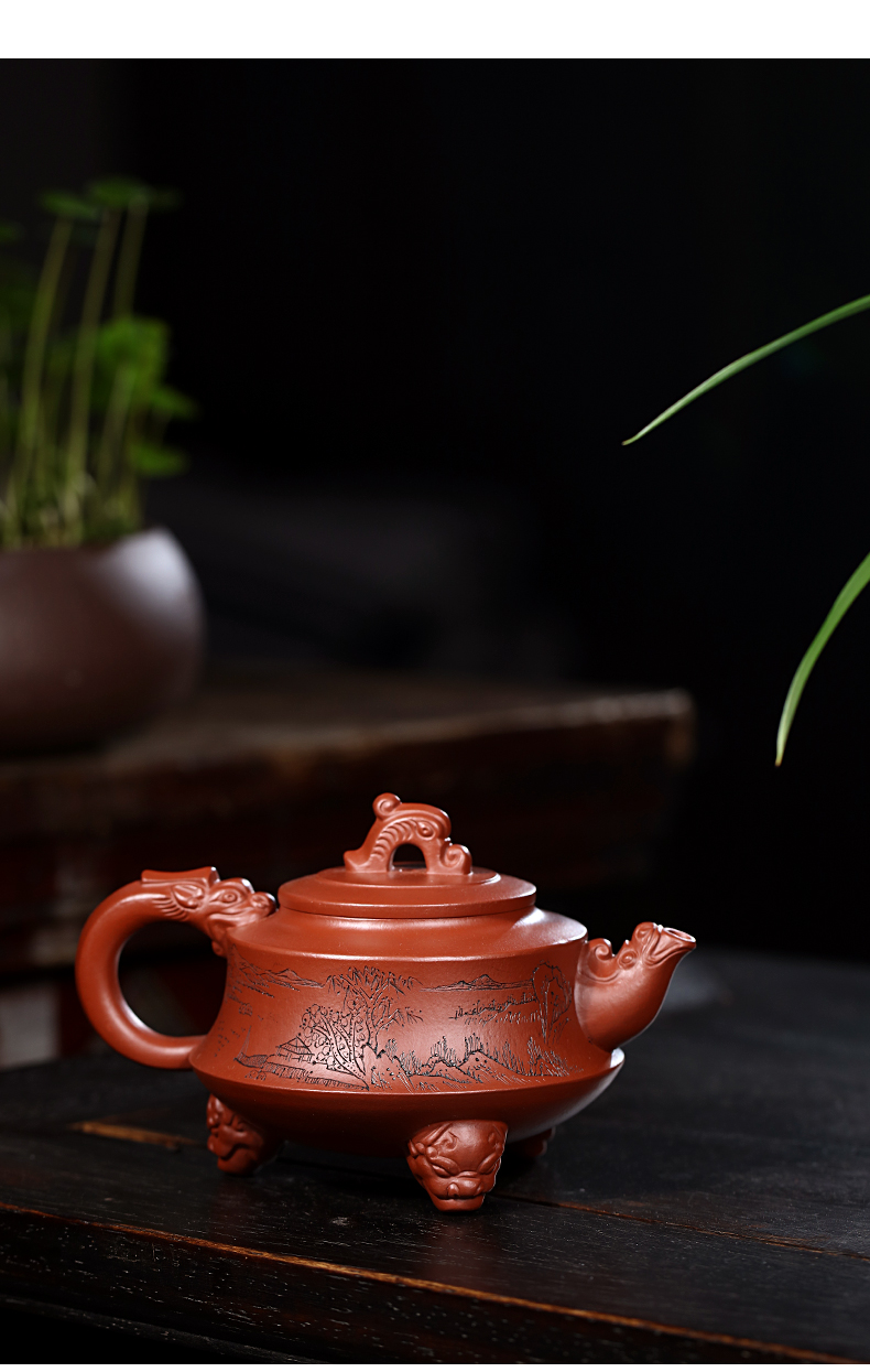 Zanghutianxia Yixing Purple Clay Pot Hand-Carved Household Kung Fu Tea Set Single Teapot Raw Ore Dahongpao Tea Teapot Show High