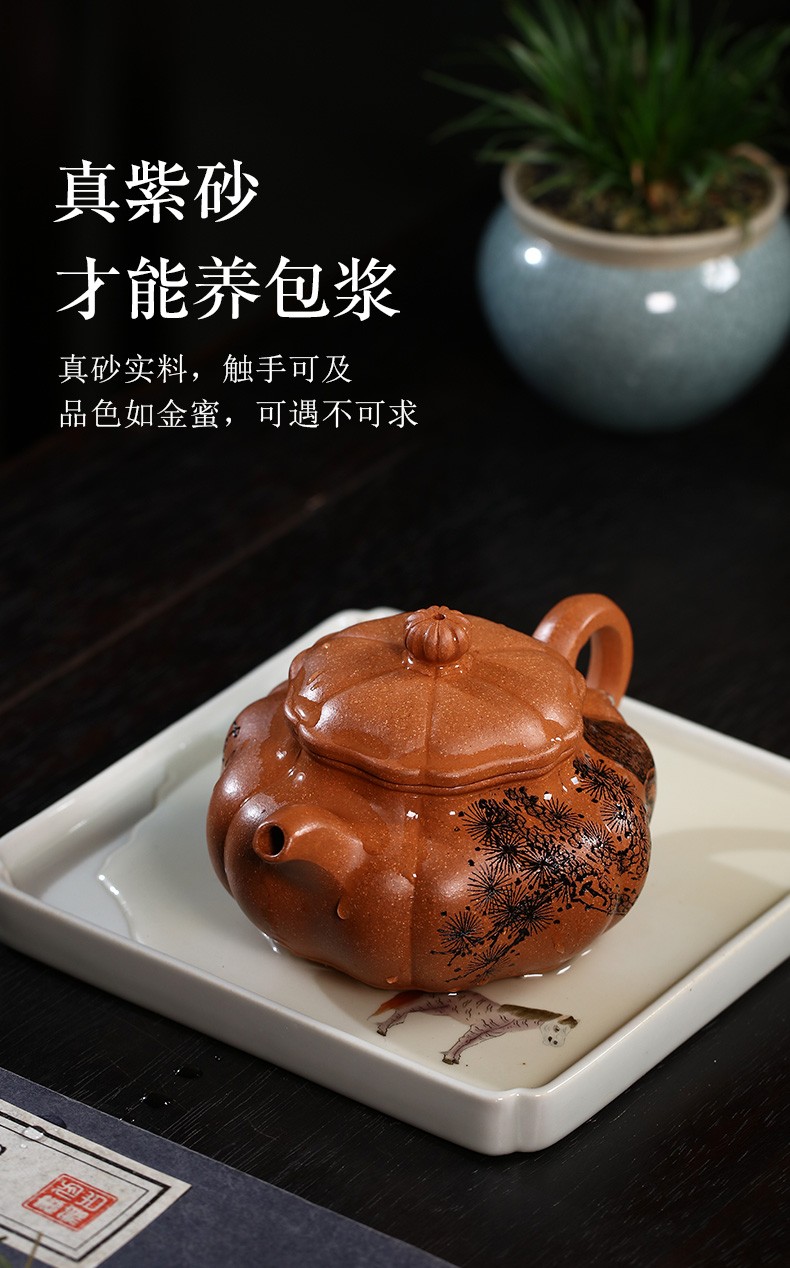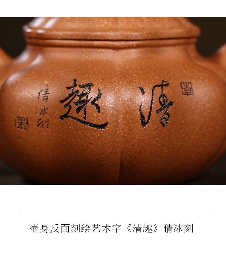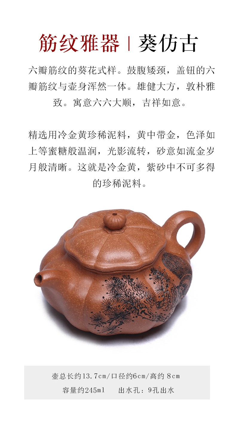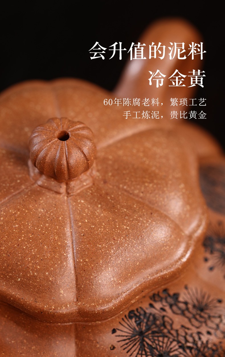 Zanghutianxia Yixing Purple Clay Pot Hand-Carved Teapot Raw Ore Cold Gold Yellow Mud Kung Fu Tea Set Tendon Maker Sunflower Arch