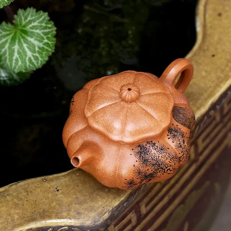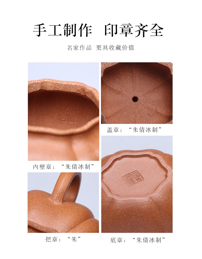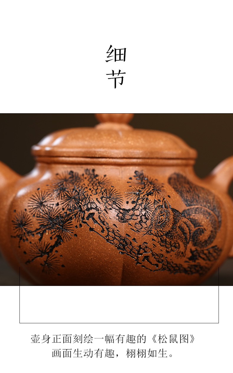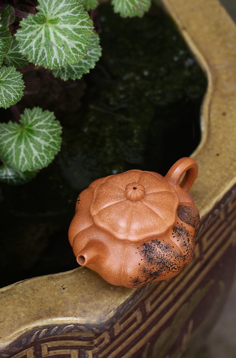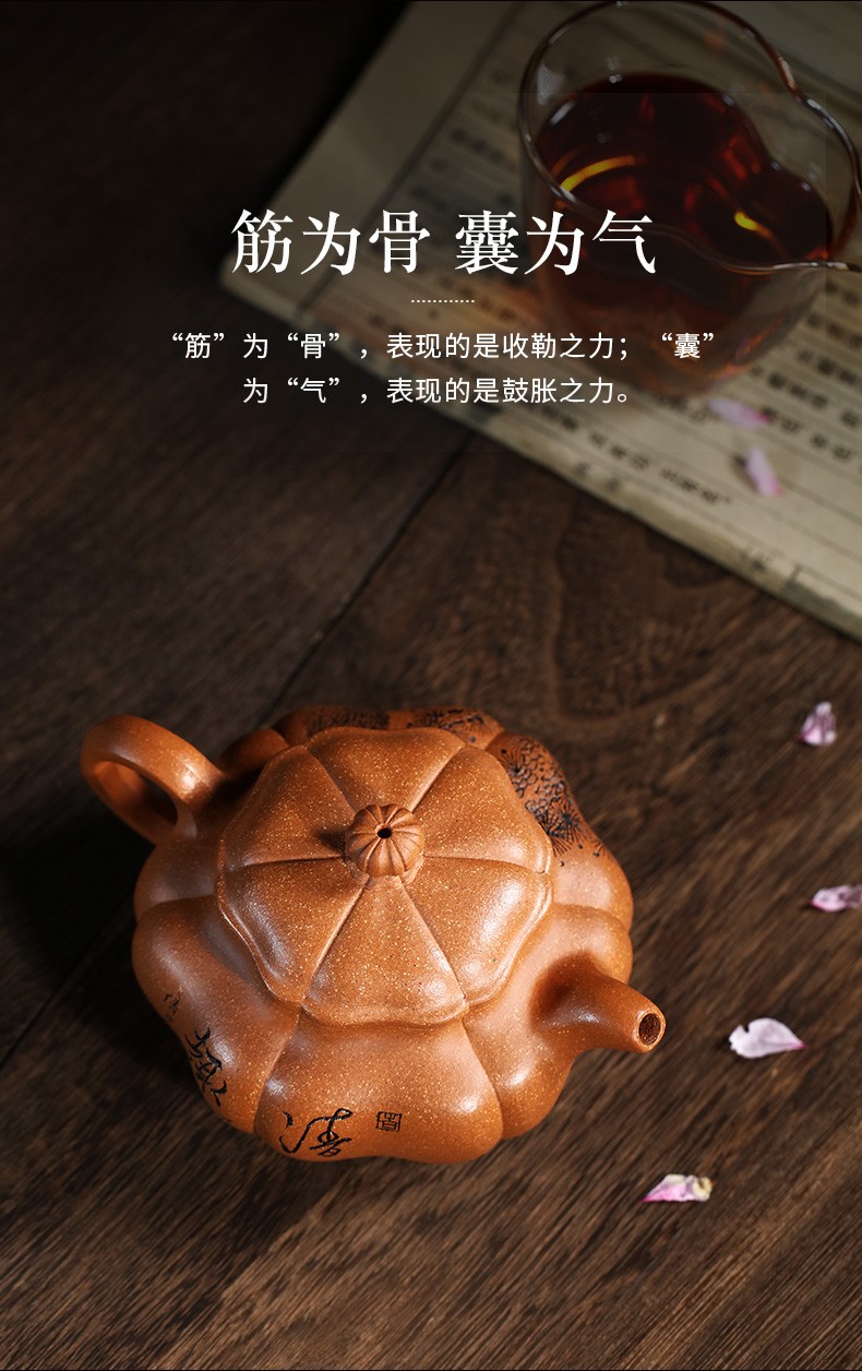 Zanghutianxia Yixing Purple Clay Pot Hand-Carved Teapot Raw Ore Cold Gold Yellow Mud Kung Fu Tea Set Tendon Maker Sunflower Arch