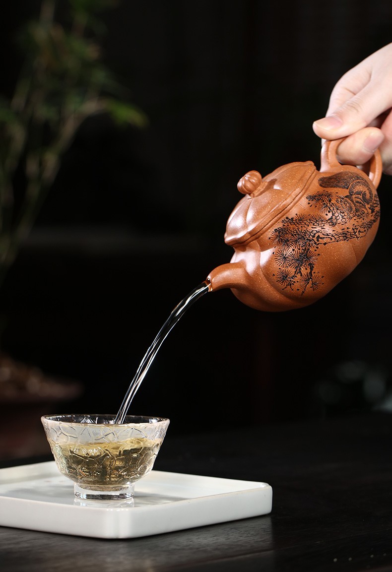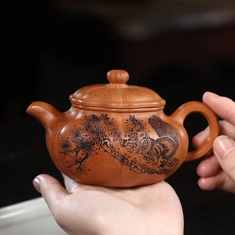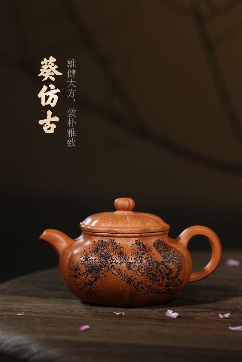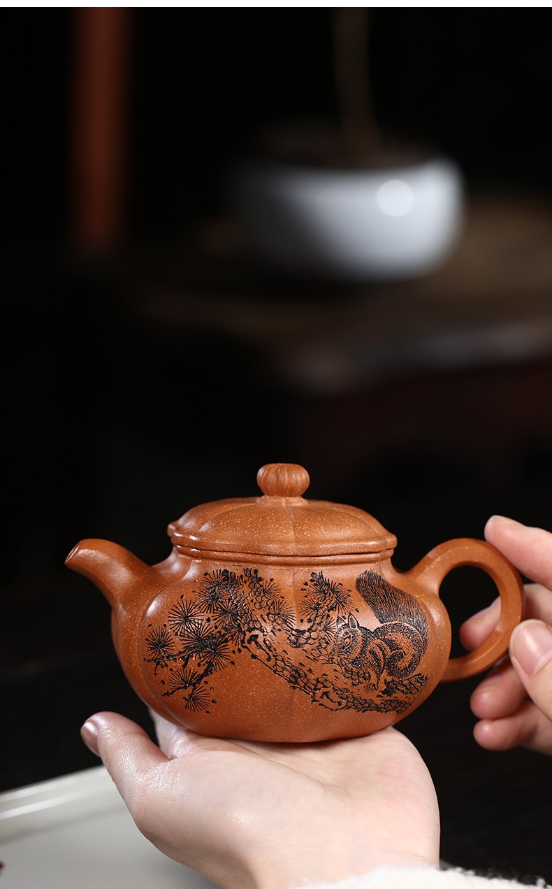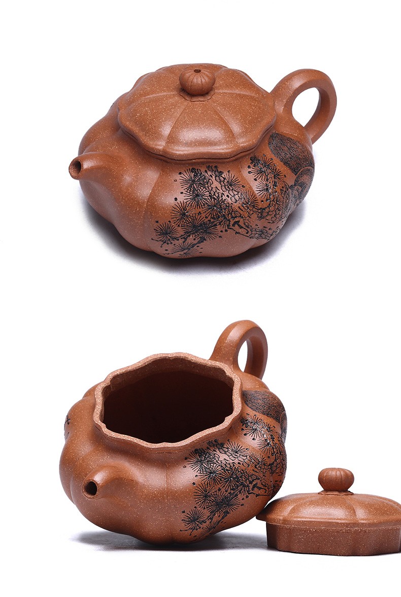 Zanghutianxia Yixing Purple Clay Pot Hand-Carved Teapot Raw Ore Cold Gold Yellow Mud Kung Fu Tea Set Tendon Maker Sunflower Arch