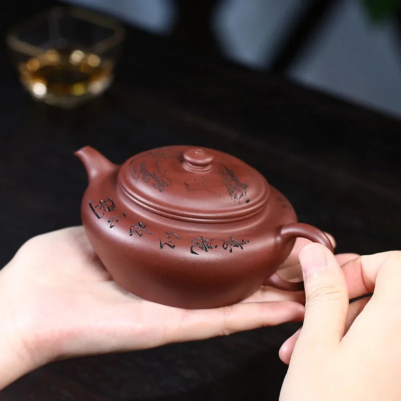 Zanghutianxia Yixing Purple Clay Pot Handmade Carved Kung Fu Tea Set Raw Ore Bottom Trough Clear Household Teapot Mirror Drum Mi
