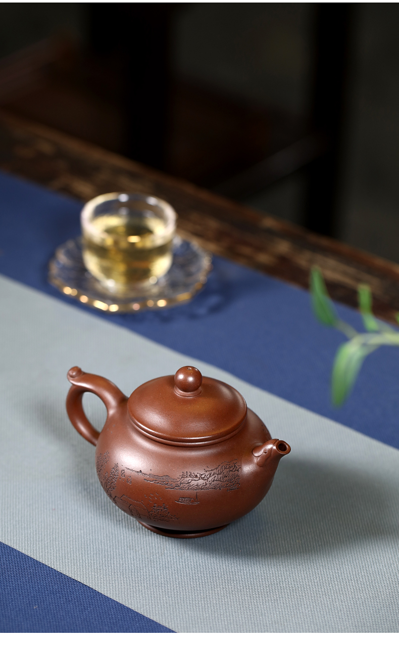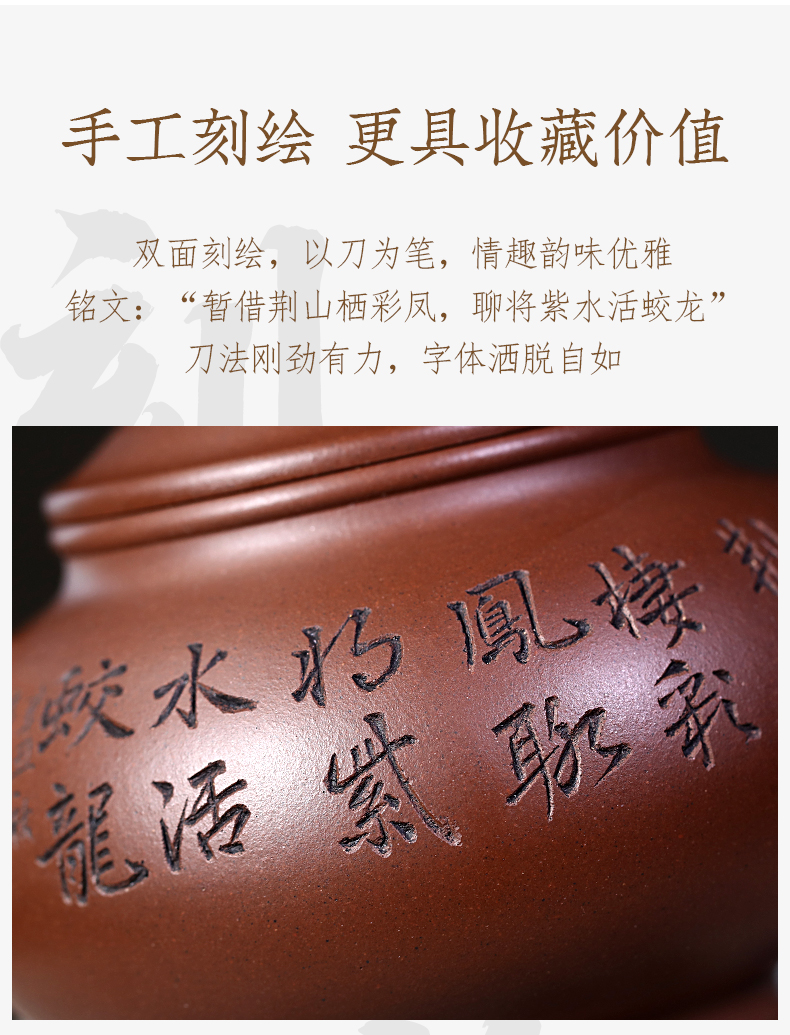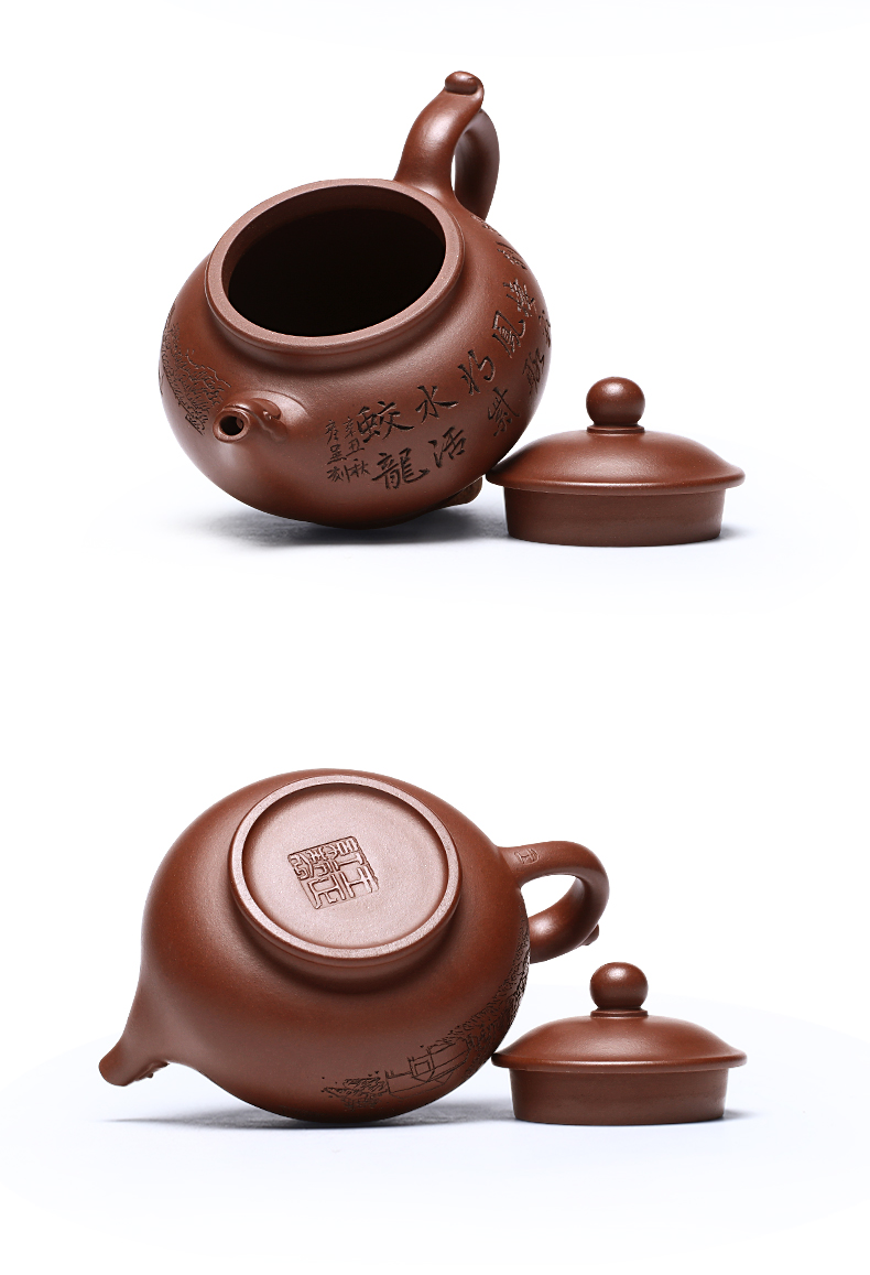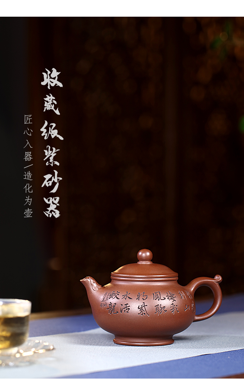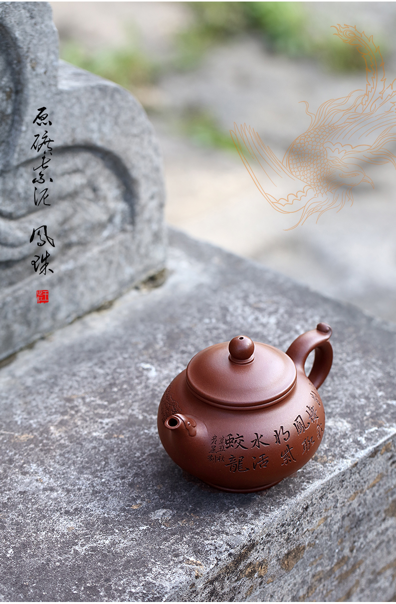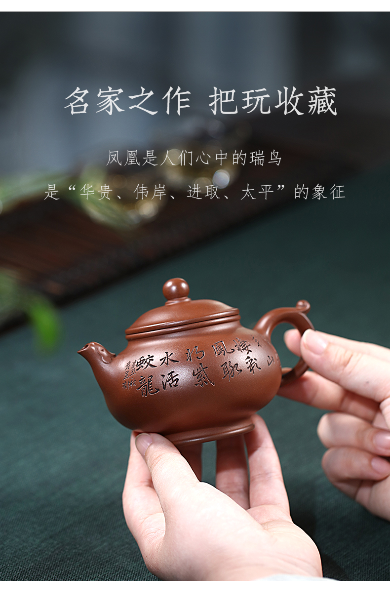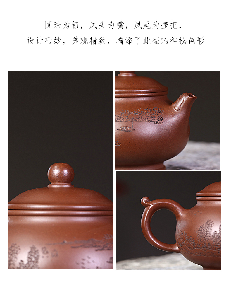 Zanghutianxia Yixing Purple Clay Pot Handmade Carved Kung Fu Tea Set Raw Ore Purple Clay Household Teapot Phoenix Beads Pot Phoe