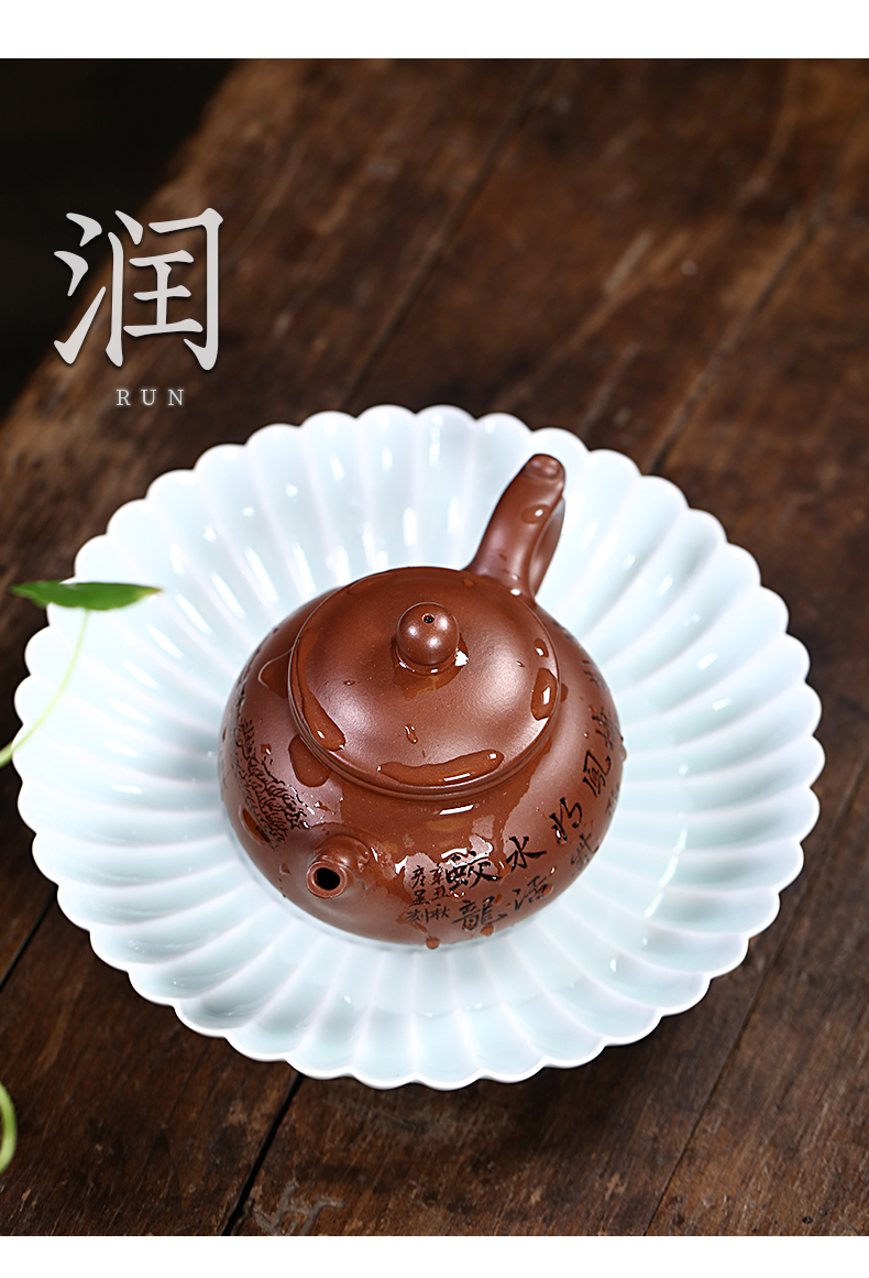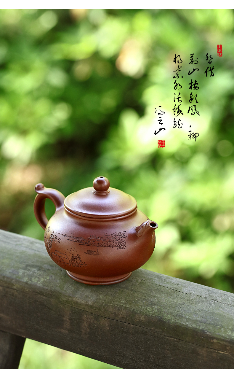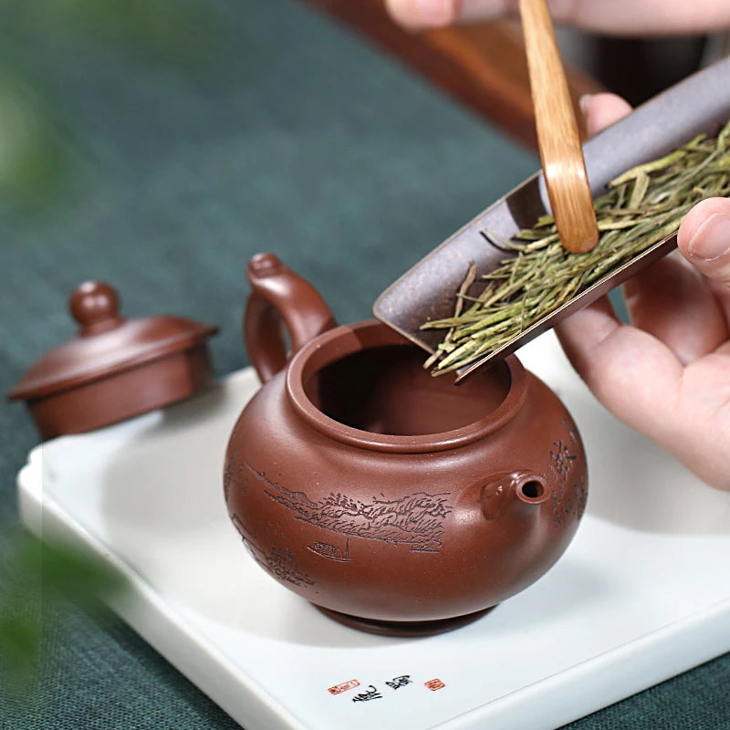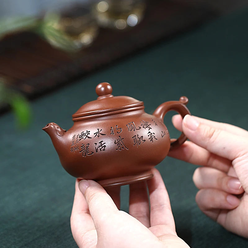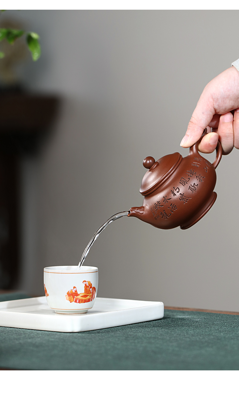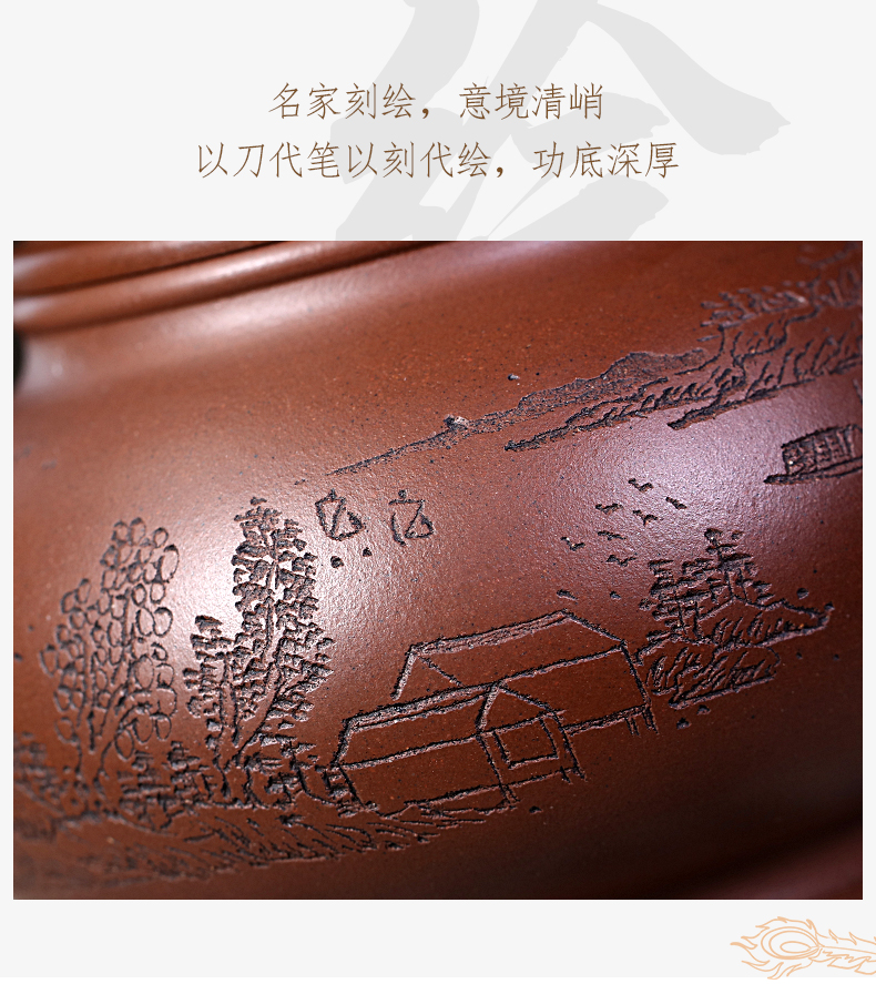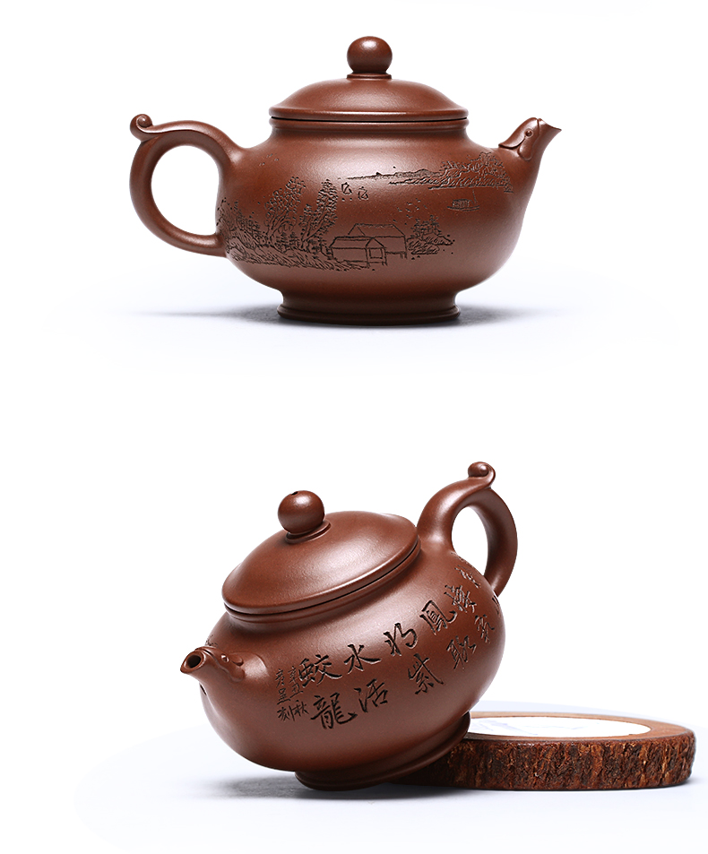 Zanghutianxia Yixing Purple Clay Pot Handmade Carved Kung Fu Tea Set Raw Ore Purple Clay Household Teapot Phoenix Beads Pot Phoe
