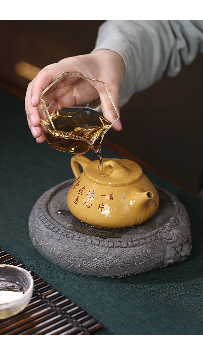 Zanghutianxia Yixing Purple Clay Pot Handmade Carved Purple Sand Tea Set Raw Ore Gold Segment Mud Household Teapot Ice Heart Sto