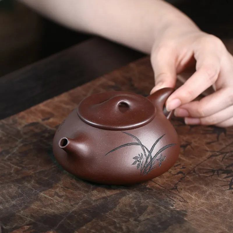 Zanghutianxia Yixing Purple Clay Pot Handmade Carving Kung Fu Teaware Single Pot Raw Ore Purple Clay Household Teapot Xishan Shi