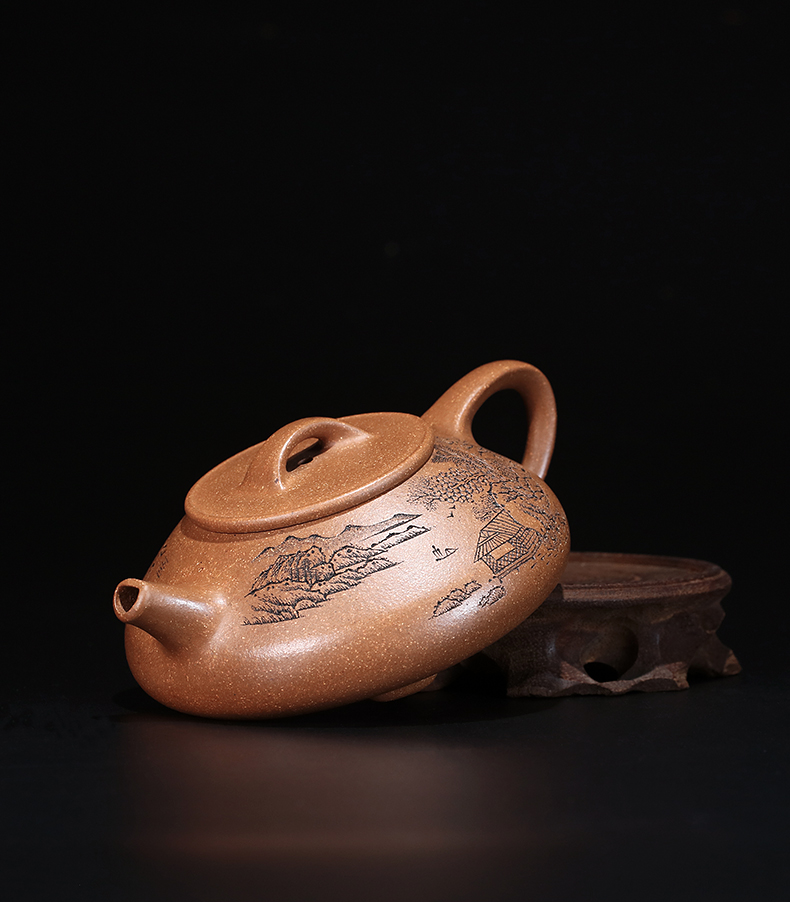Zanghutianxia Yixing Purple Clay Teapot Handmade Carved Kung Fu Tea Set Raw Ore Cold Golden Handmade Teapot Eight Square Shipiao