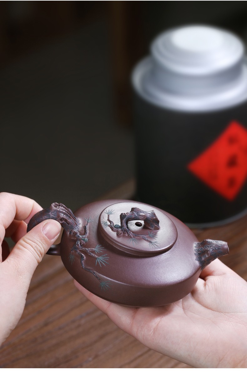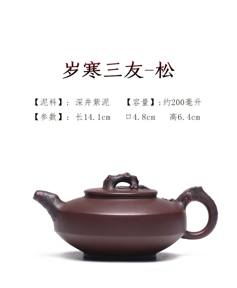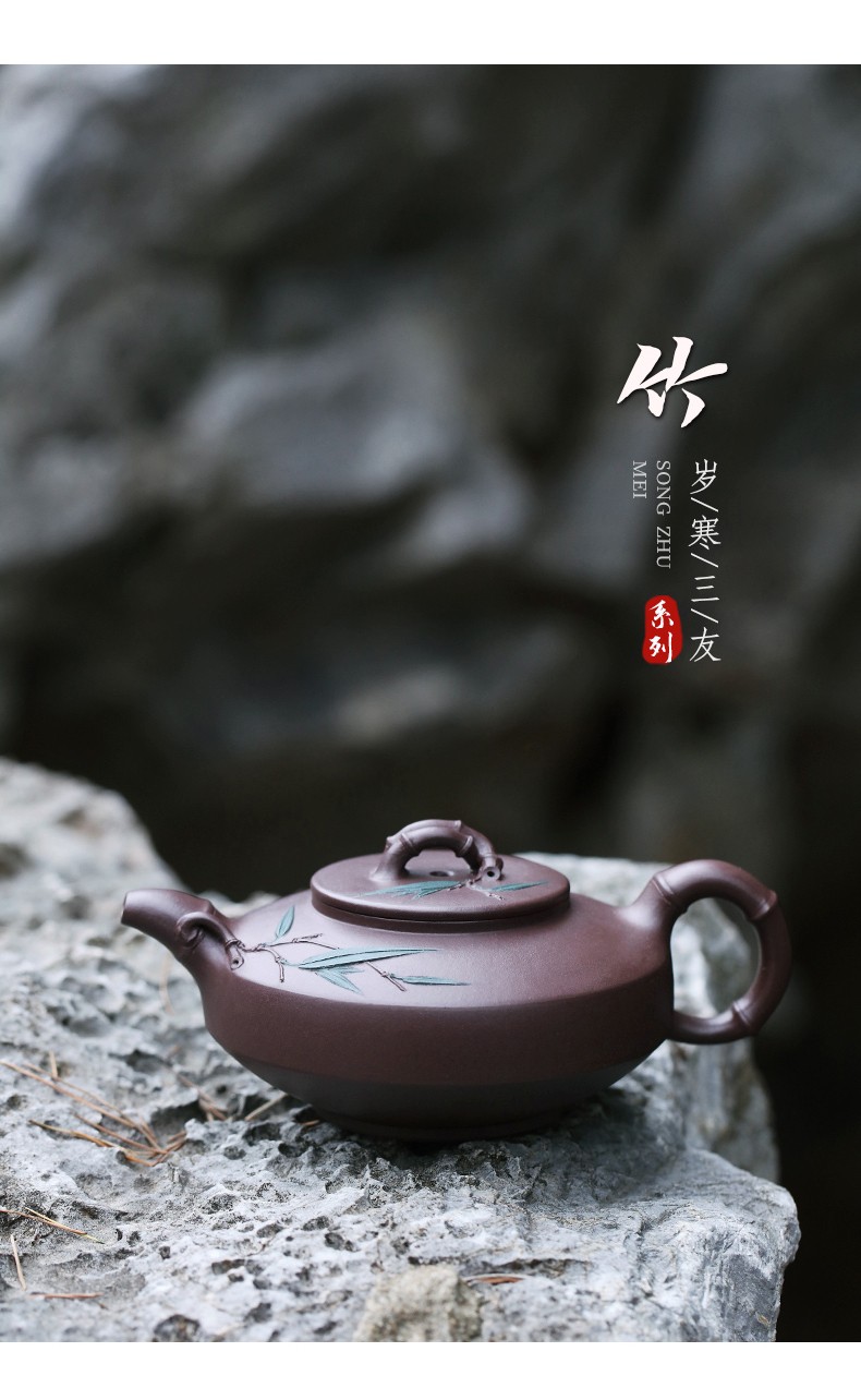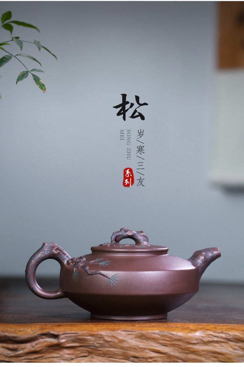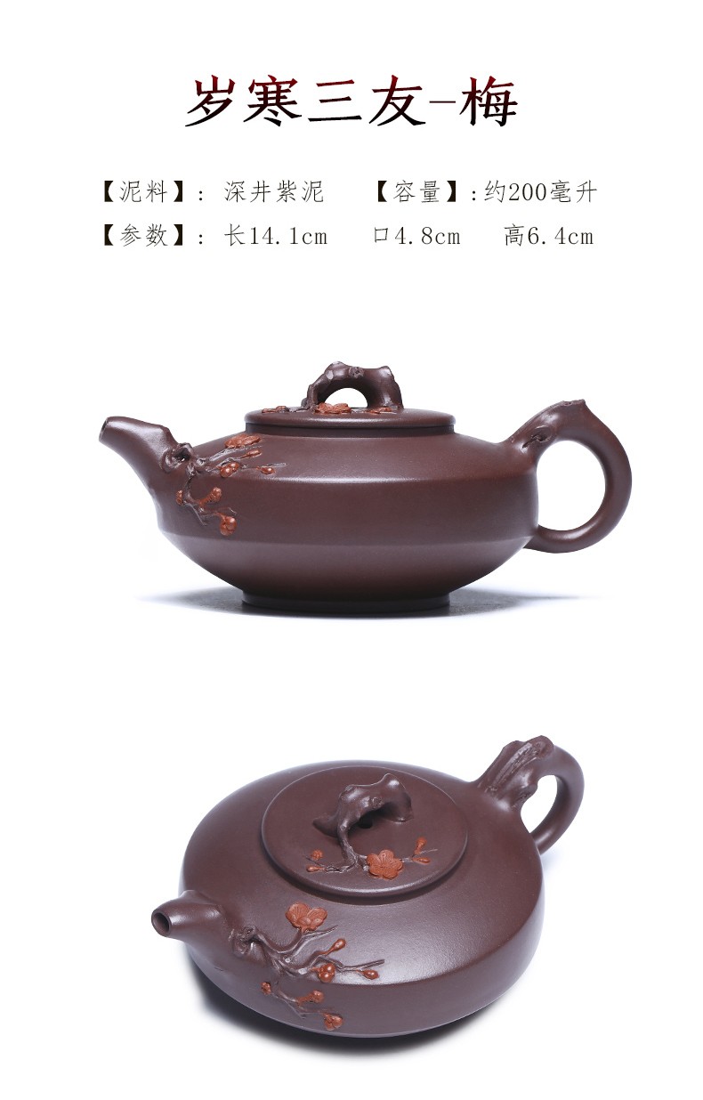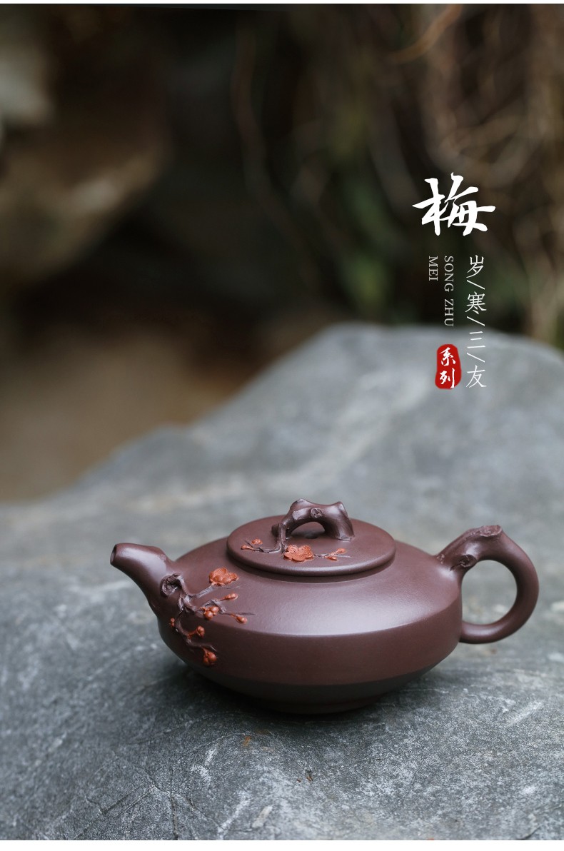 Zanghutianxia Yixing Purple Clay Teapot Handmade Kung Fu Tea Set Flower Ware Pine, Bamboo, Wintersweet Raw Ore Deep Well Purple