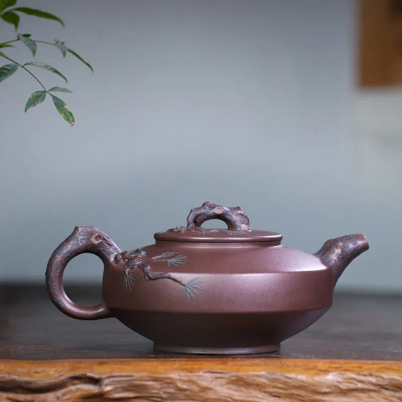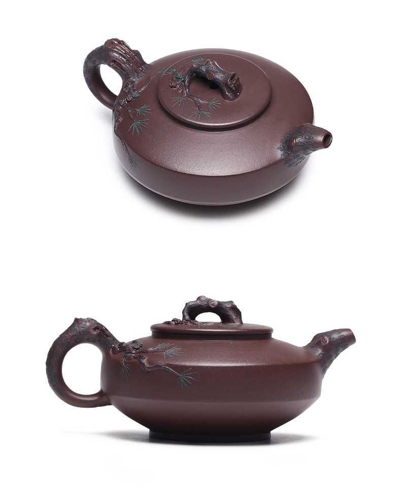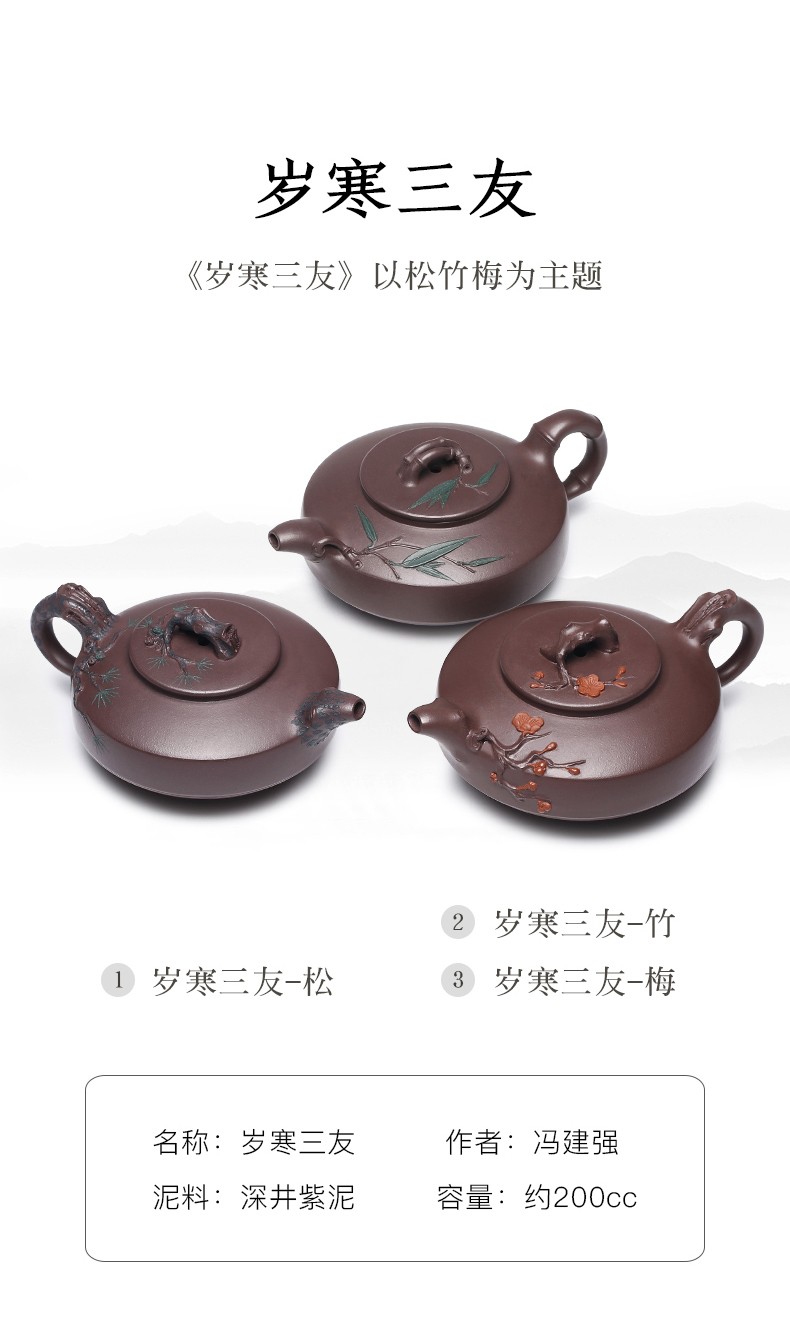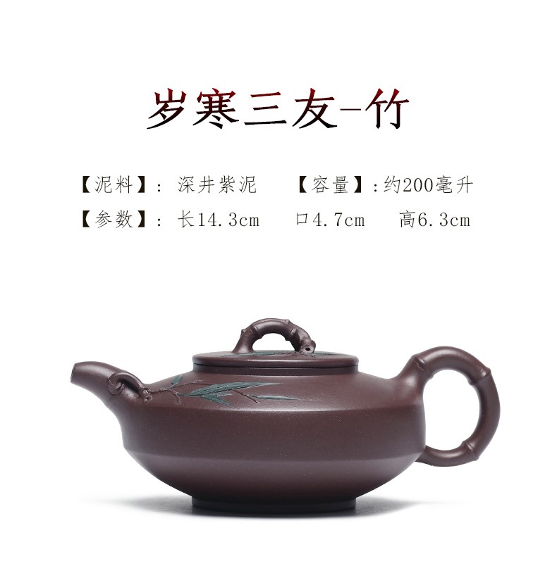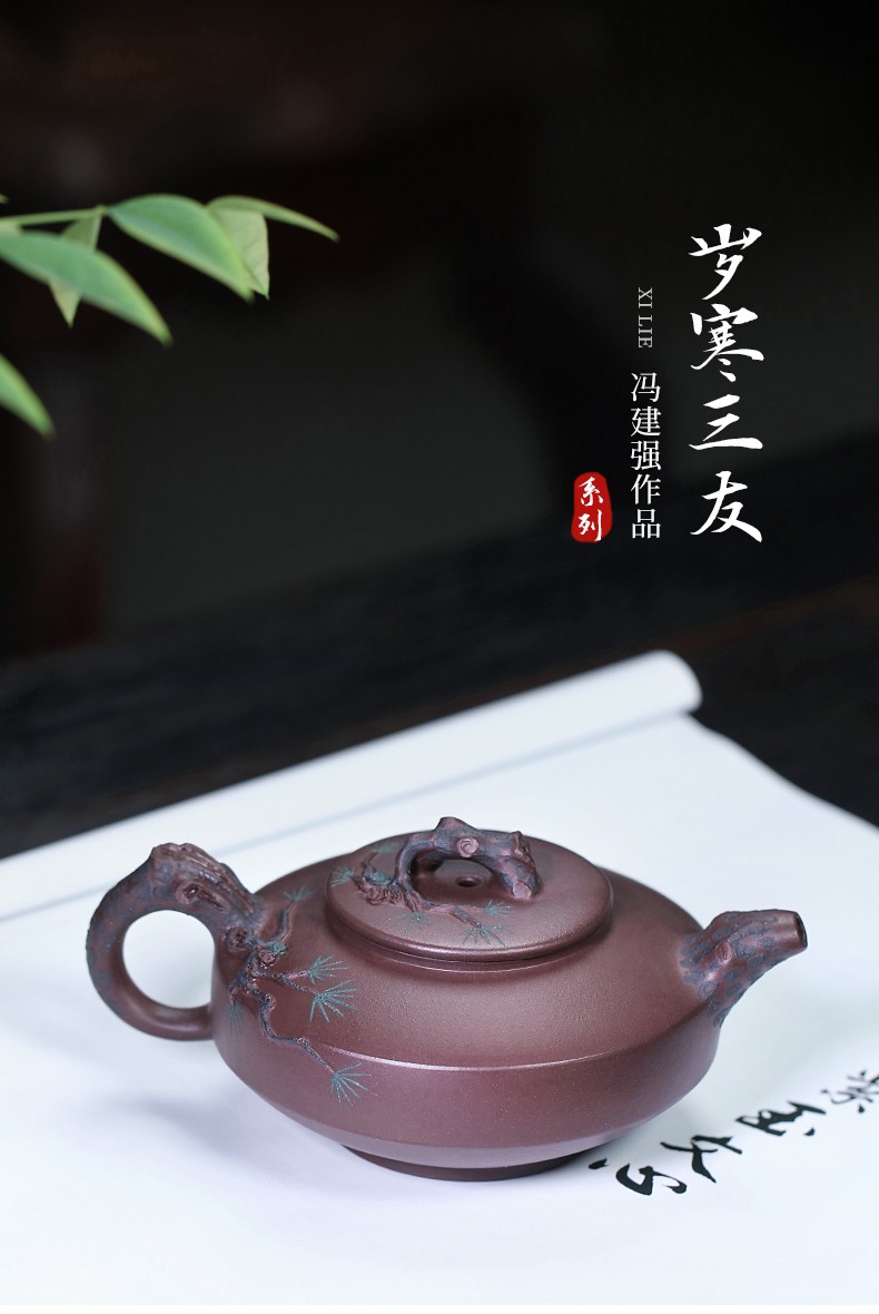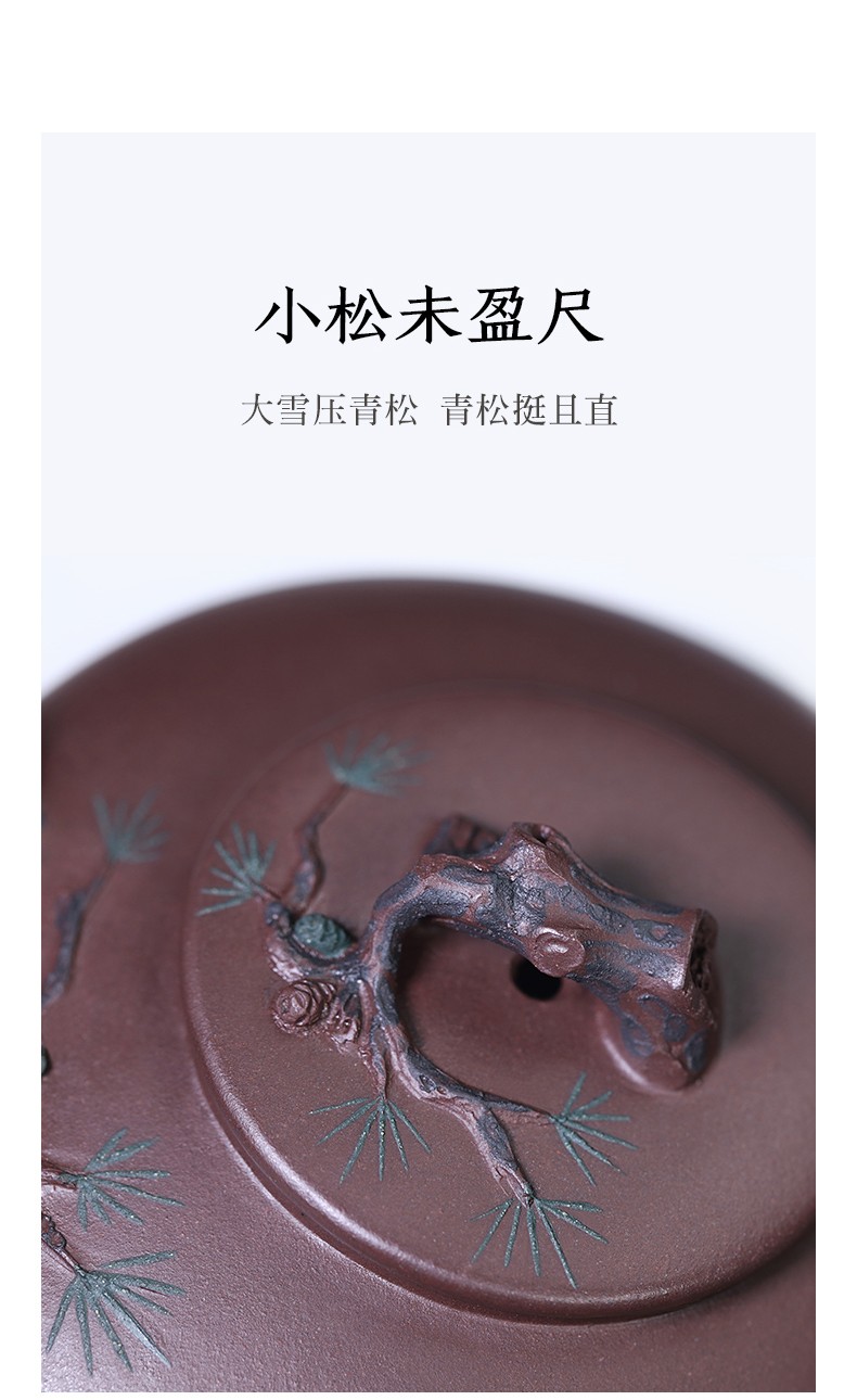 Zanghutianxia Yixing Purple Clay Teapot Handmade Kung Fu Tea Set Flower Ware Pine, Bamboo, Wintersweet Raw Ore Deep Well Purple