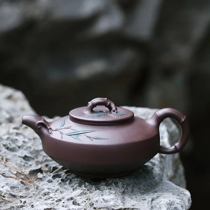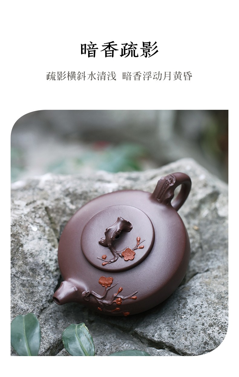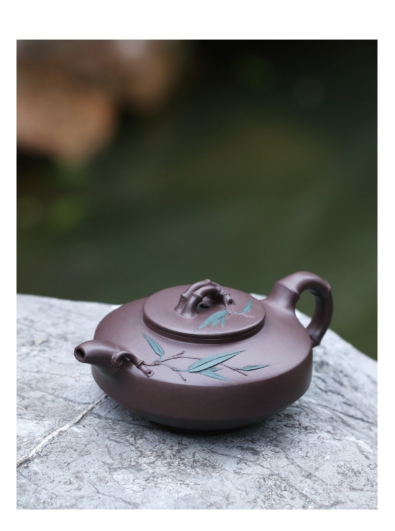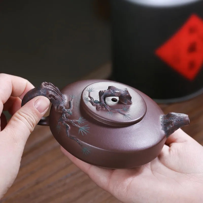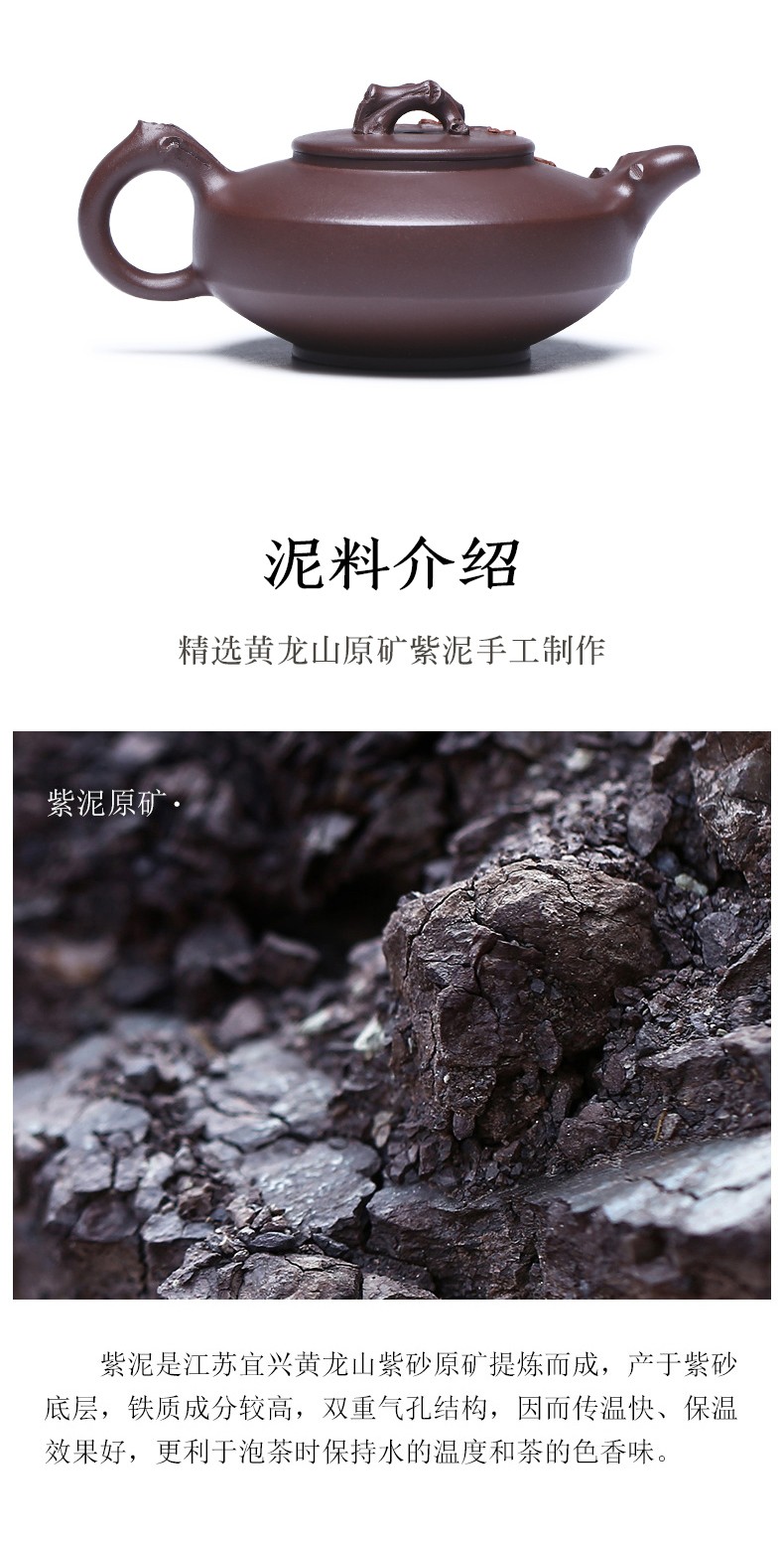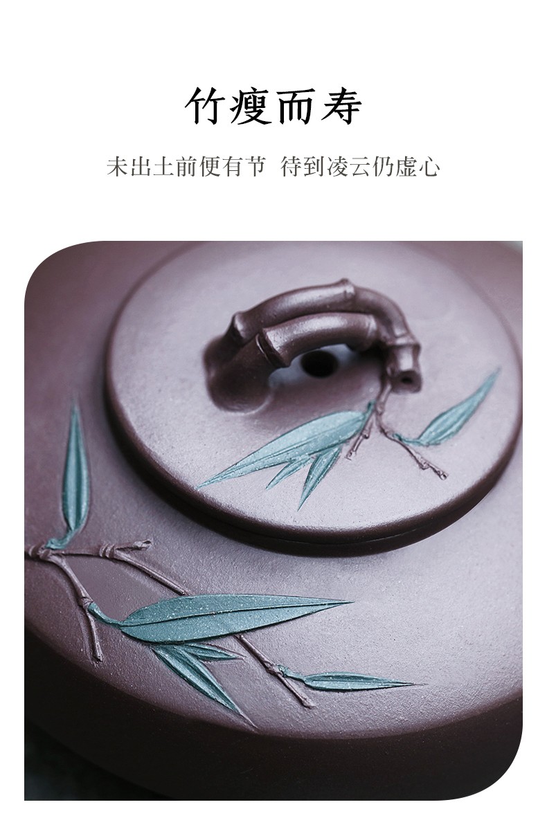 Zanghutianxia Yixing Purple Clay Teapot Handmade Kung Fu Tea Set Flower Ware Pine, Bamboo, Wintersweet Raw Ore Deep Well Purple