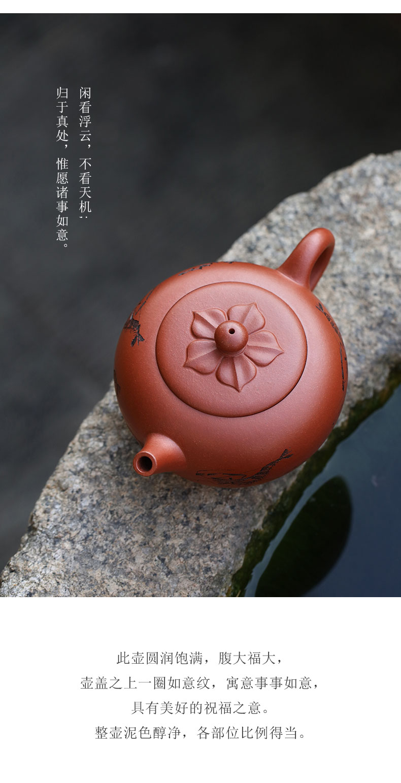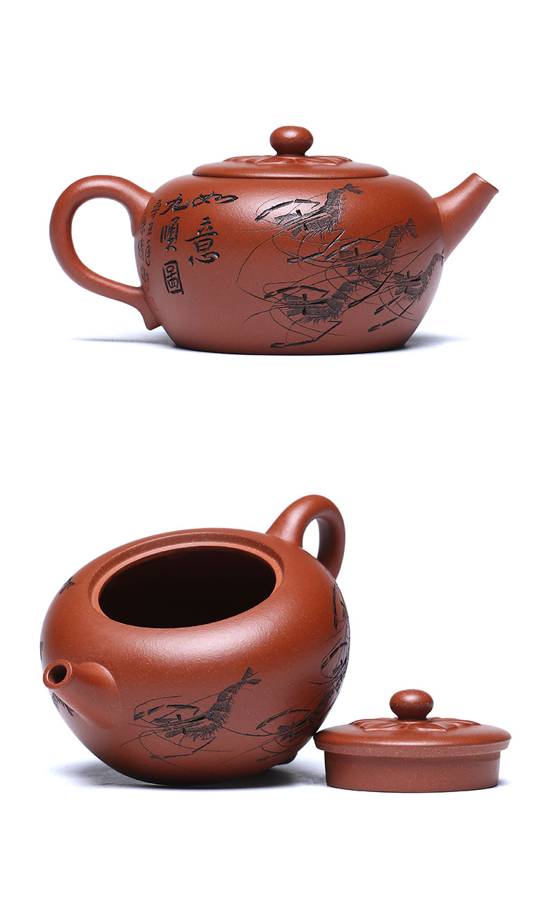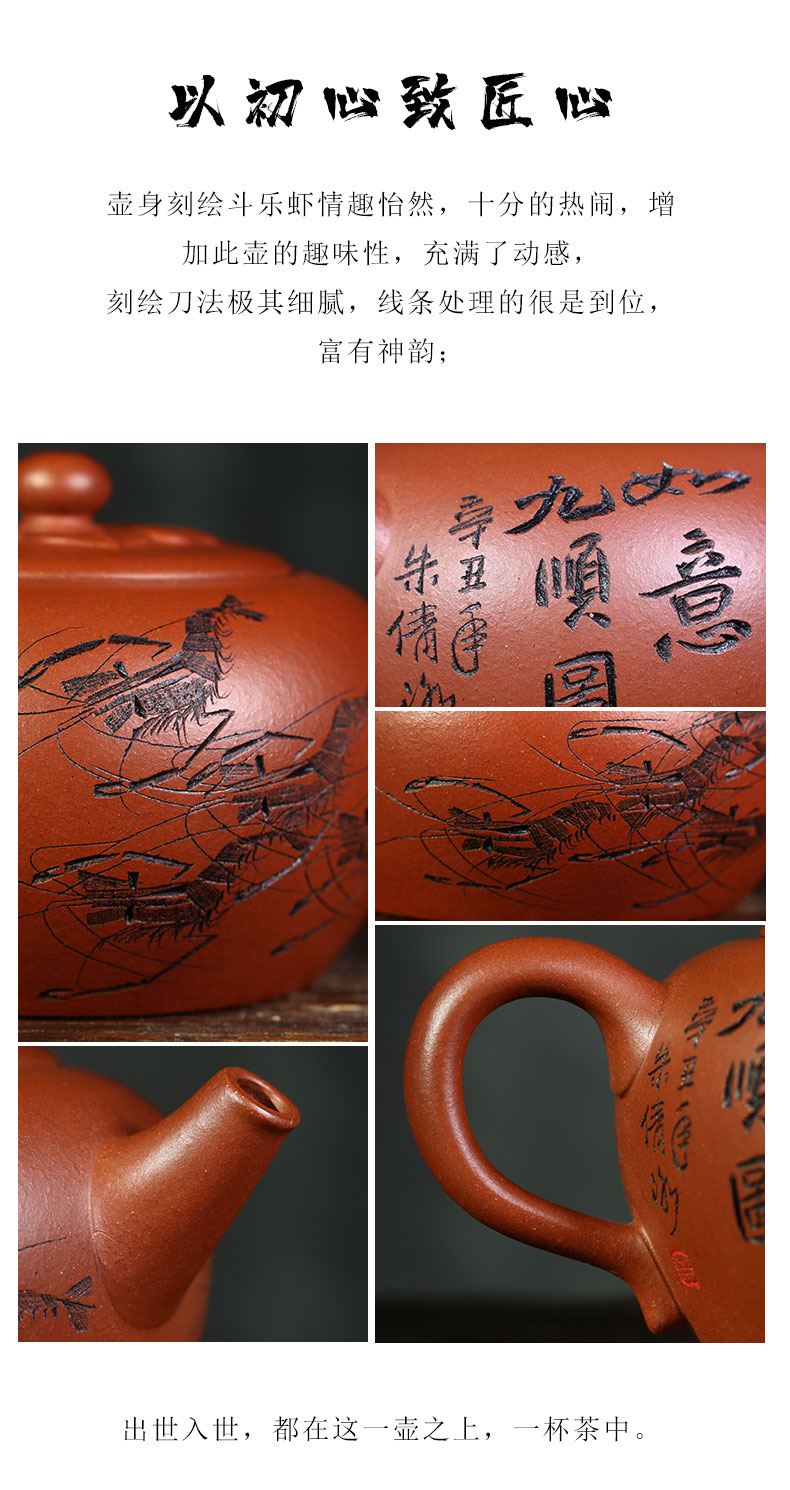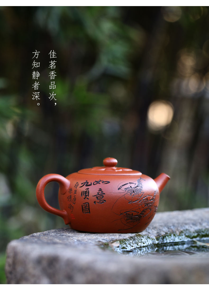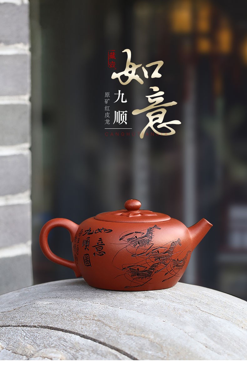 Zanghutianxia Yixing Purple Sand Teapot Raw Ore Red Leather Dragon Purple Sand Tea Set Handmade Carving Teapot Ruyi Jiushun Ruyi