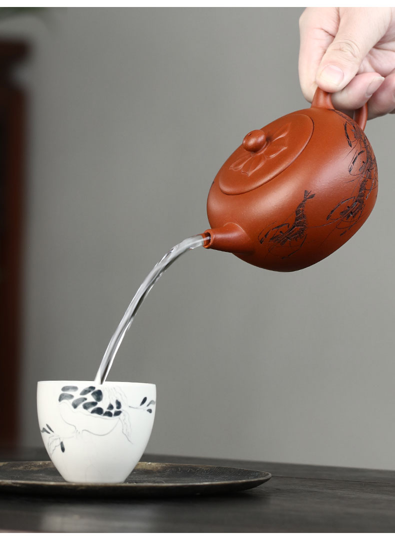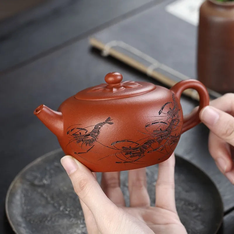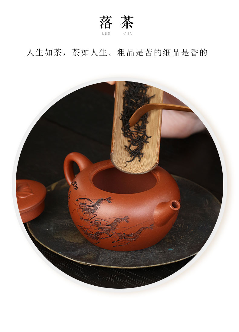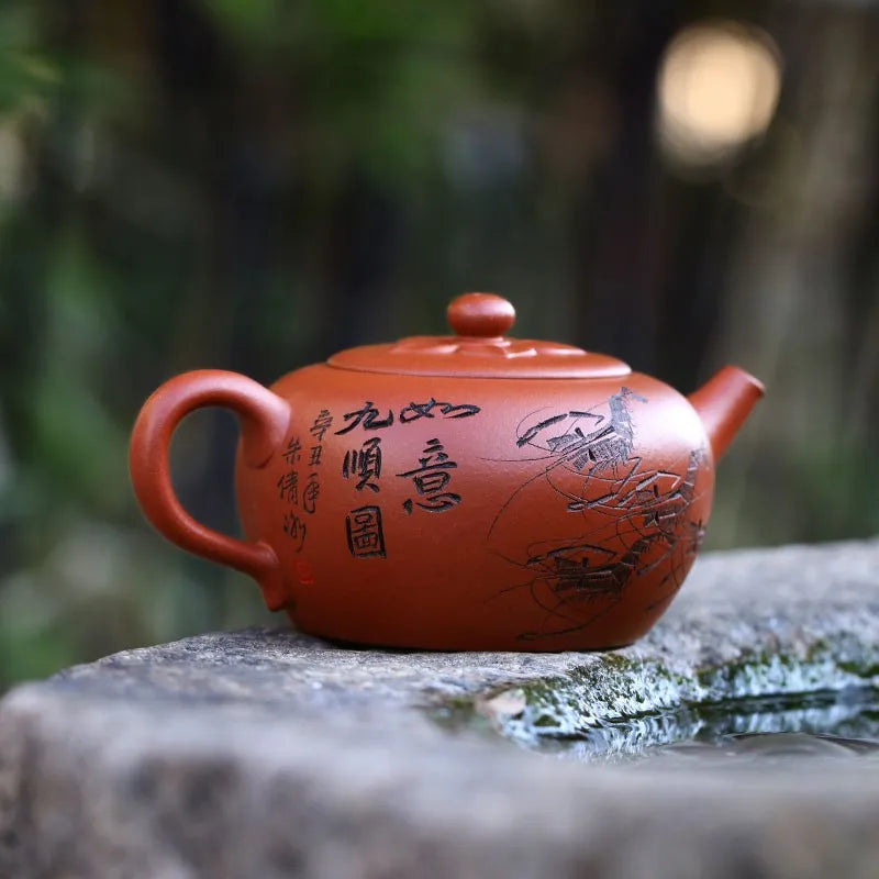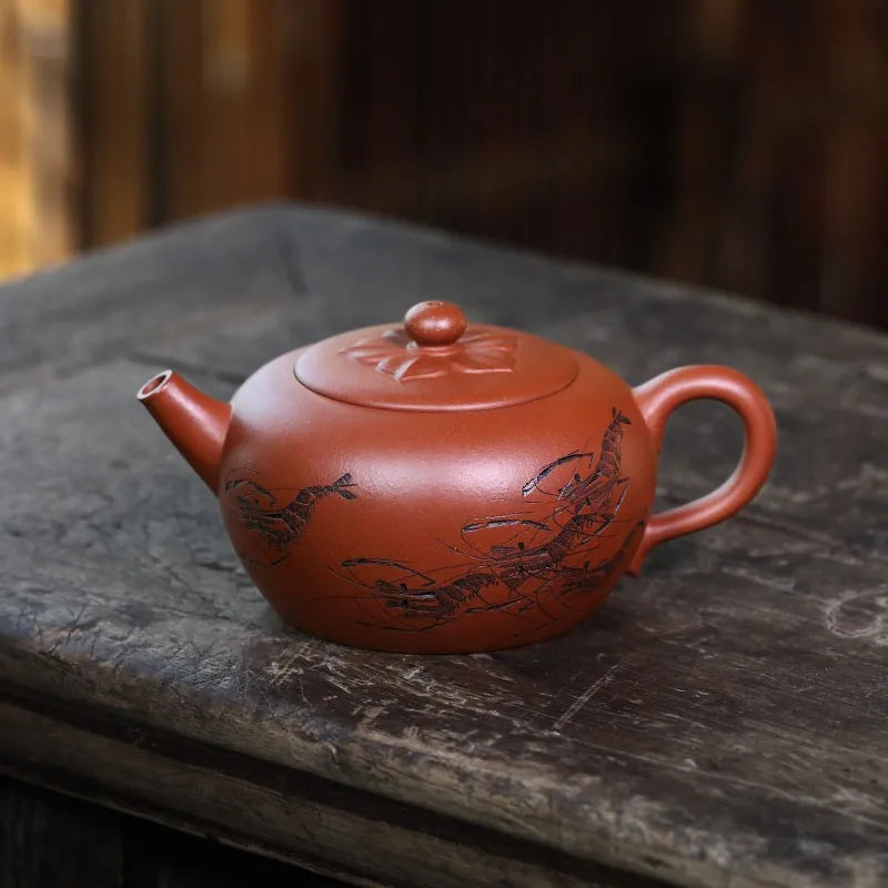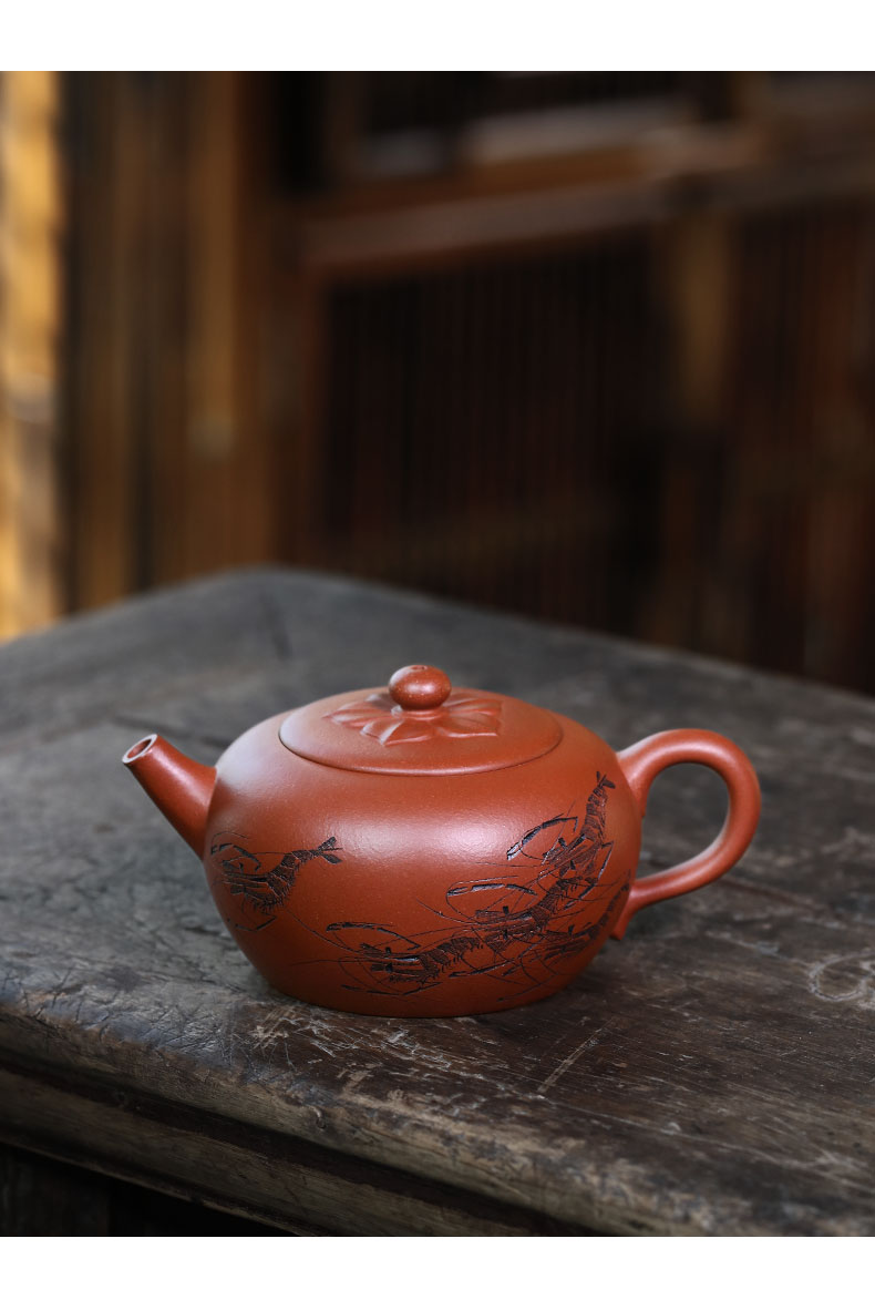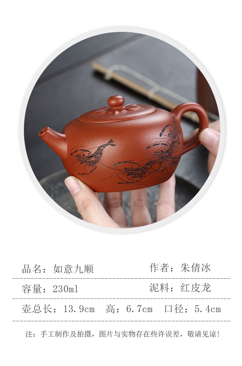 Zanghutianxia Yixing Purple Sand Teapot Raw Ore Red Leather Dragon Purple Sand Tea Set Handmade Carving Teapot Ruyi Jiushun Ruyi