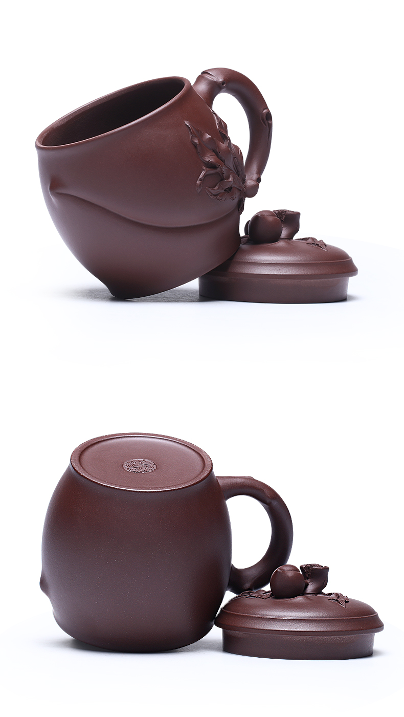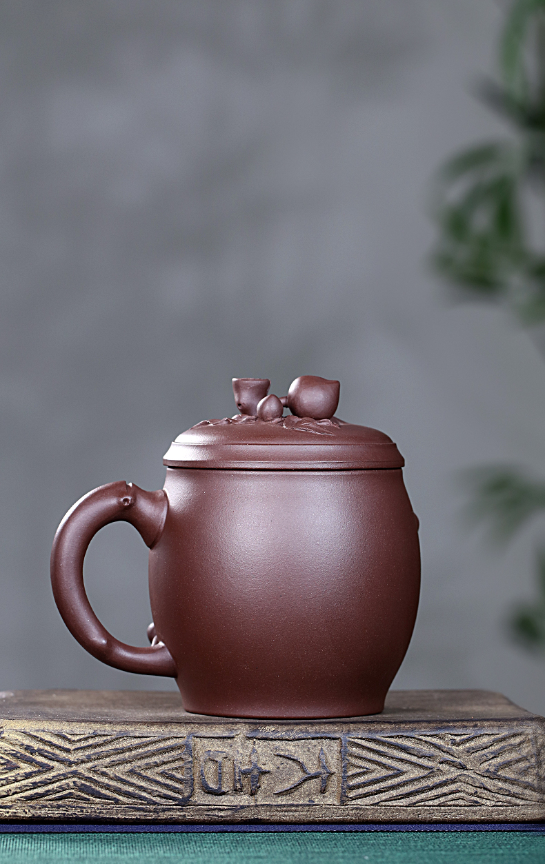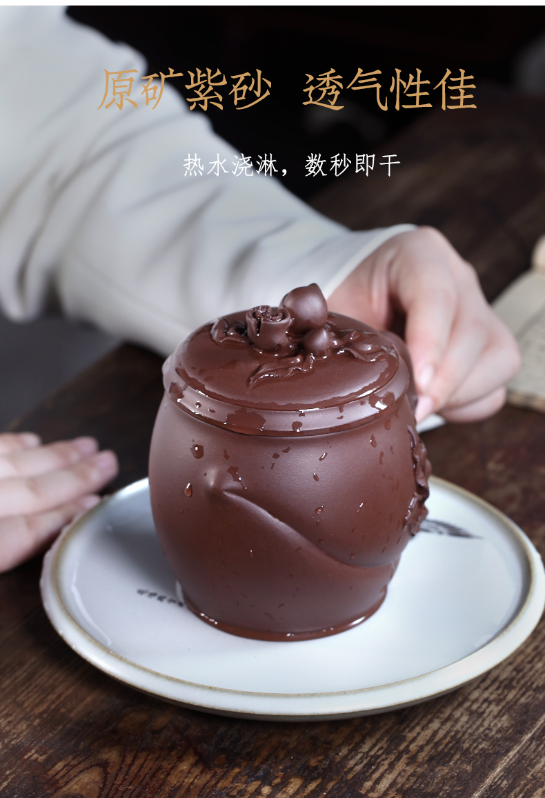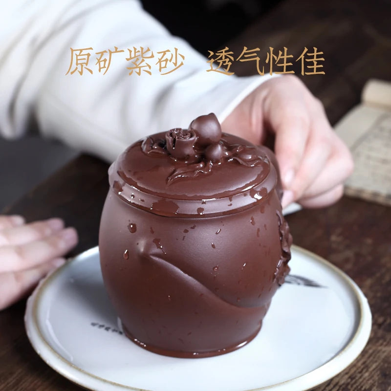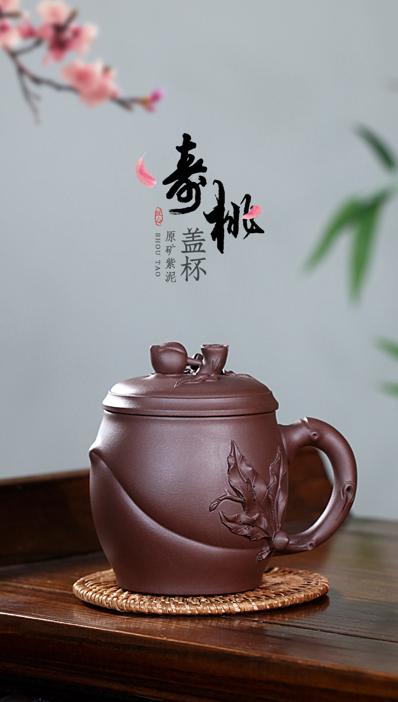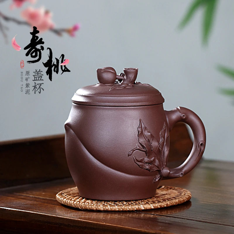 Zanghutianxia Yixing Zisha Cup Handmade Decals Longevity Peach Cup with Cover Large Capacity Office Teaware Men Tea Cup with Cov