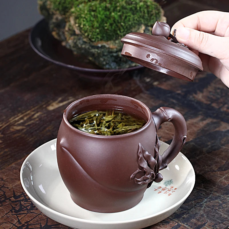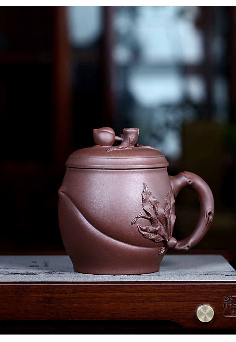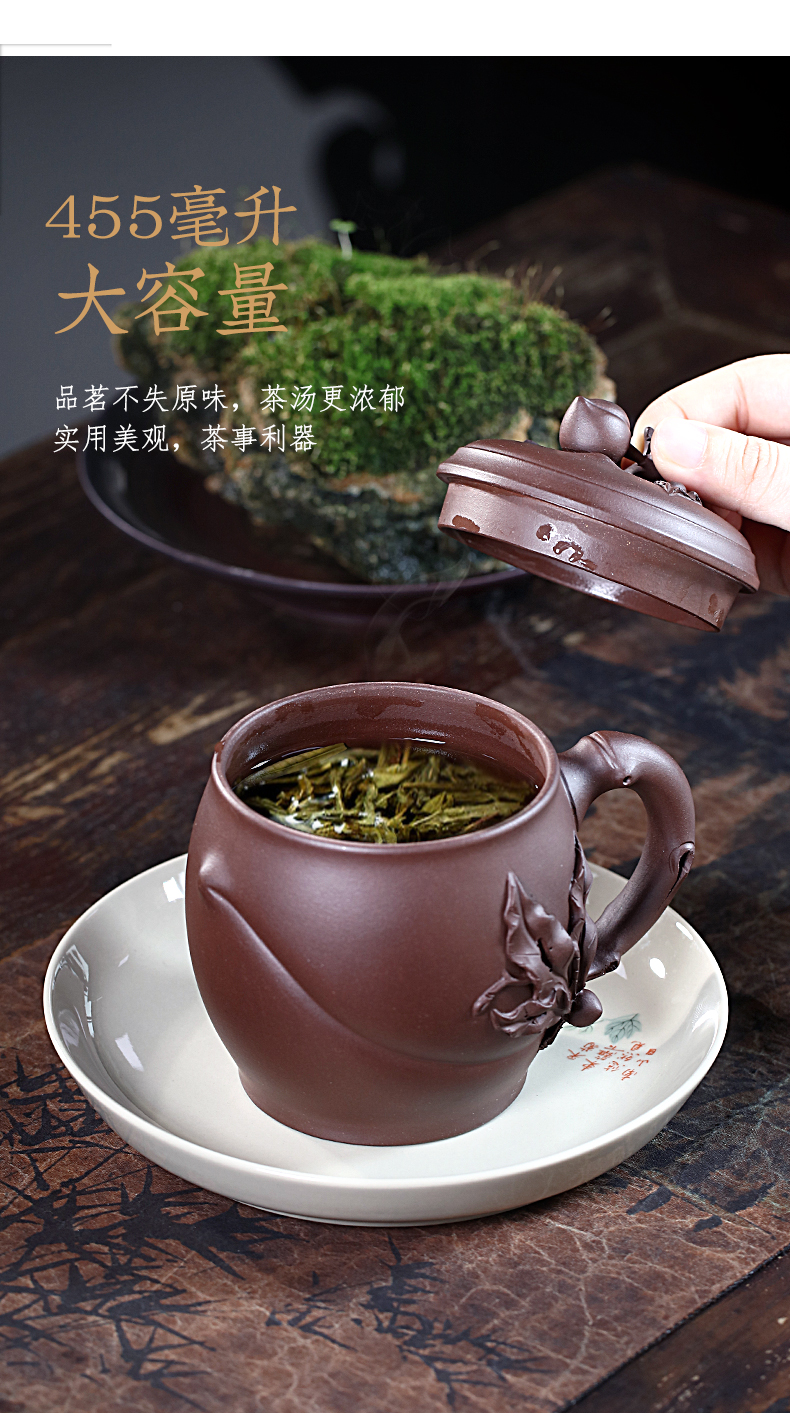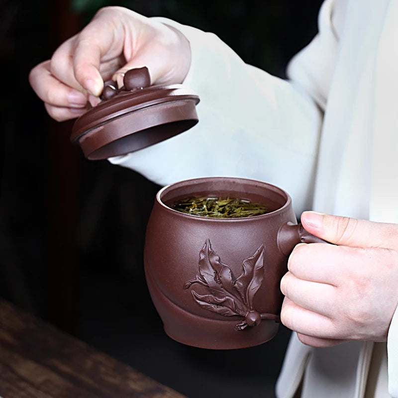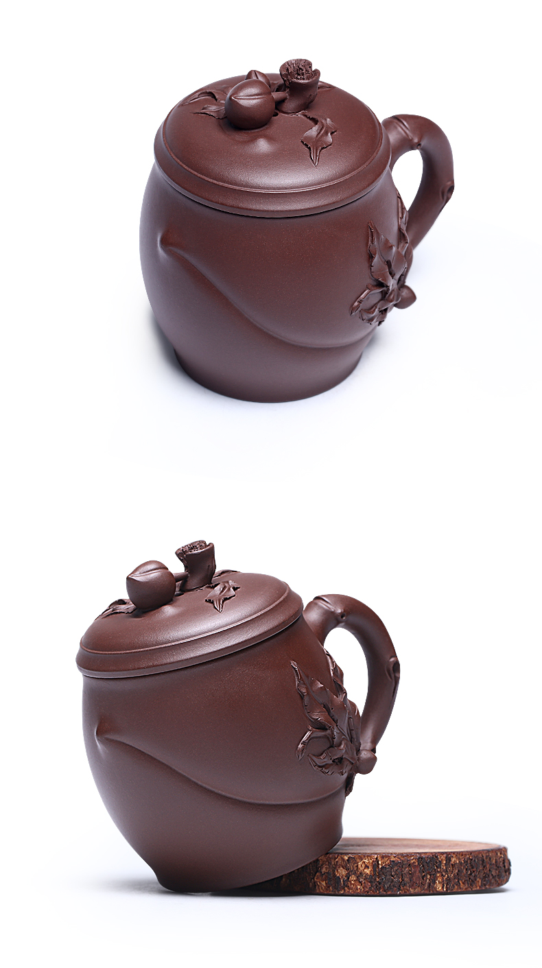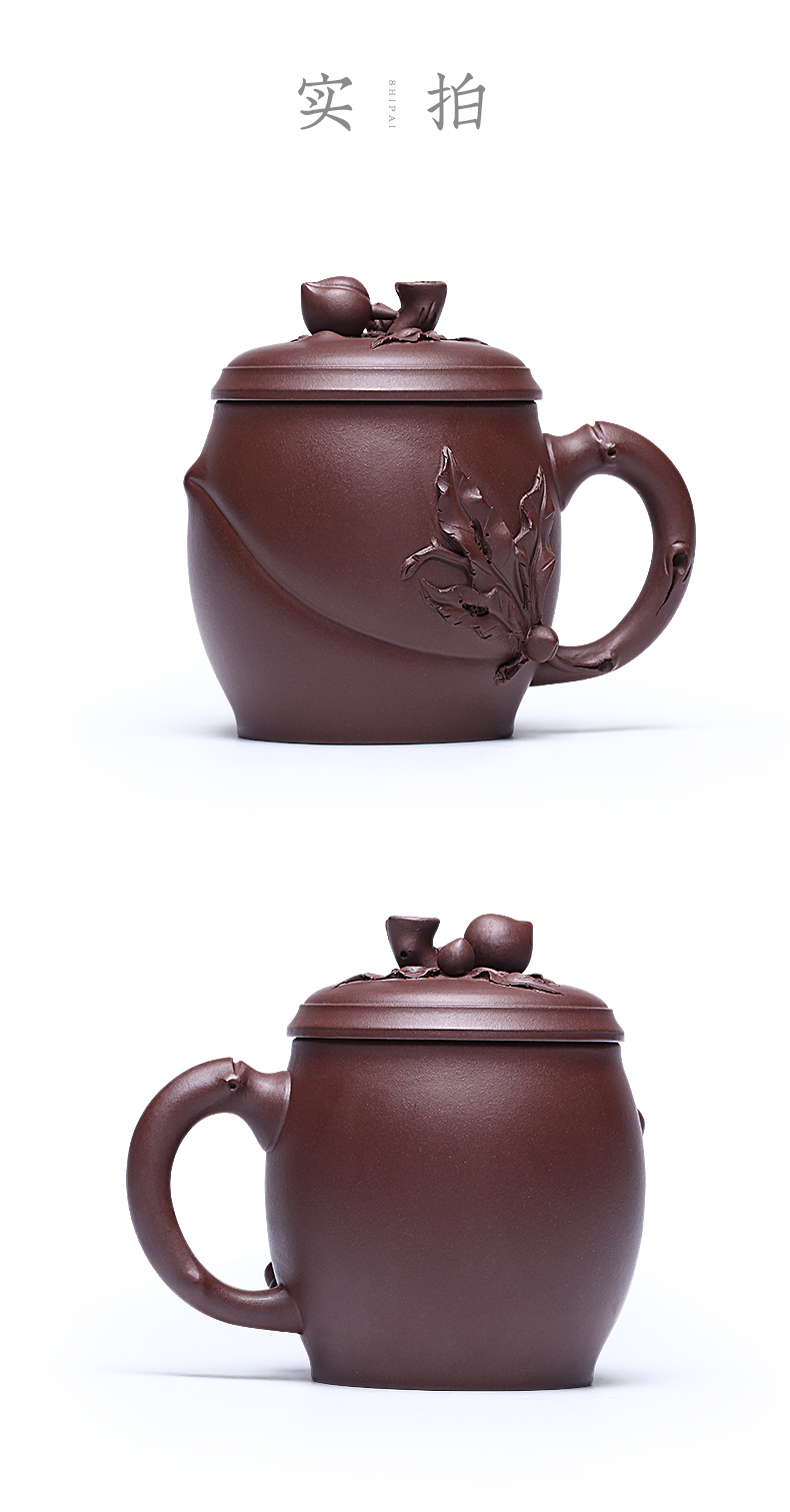 Zanghutianxia Yixing Zisha Cup Handmade Decals Longevity Peach Cup with Cover Large Capacity Office Teaware Men Tea Cup with Cov