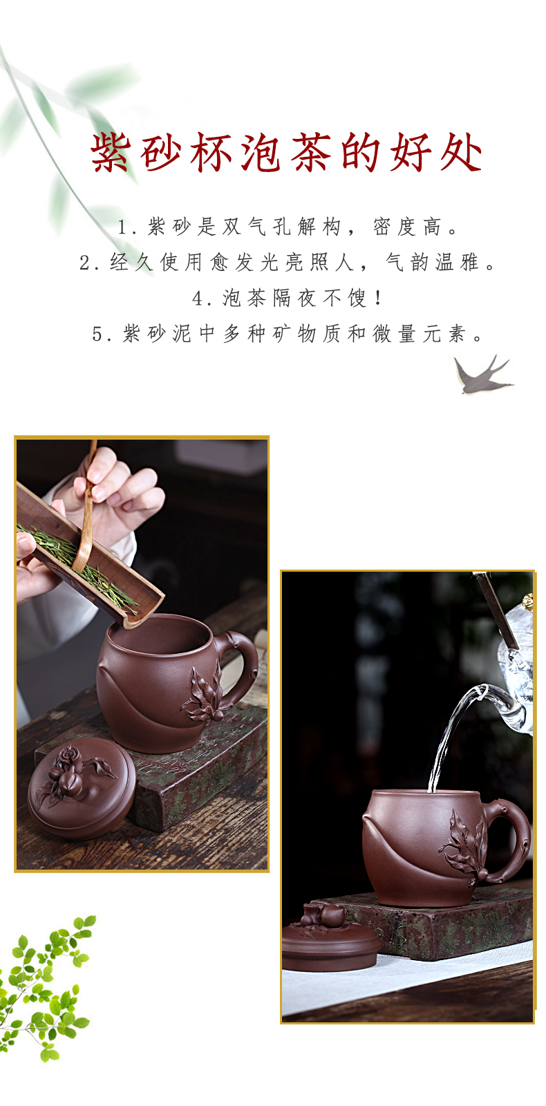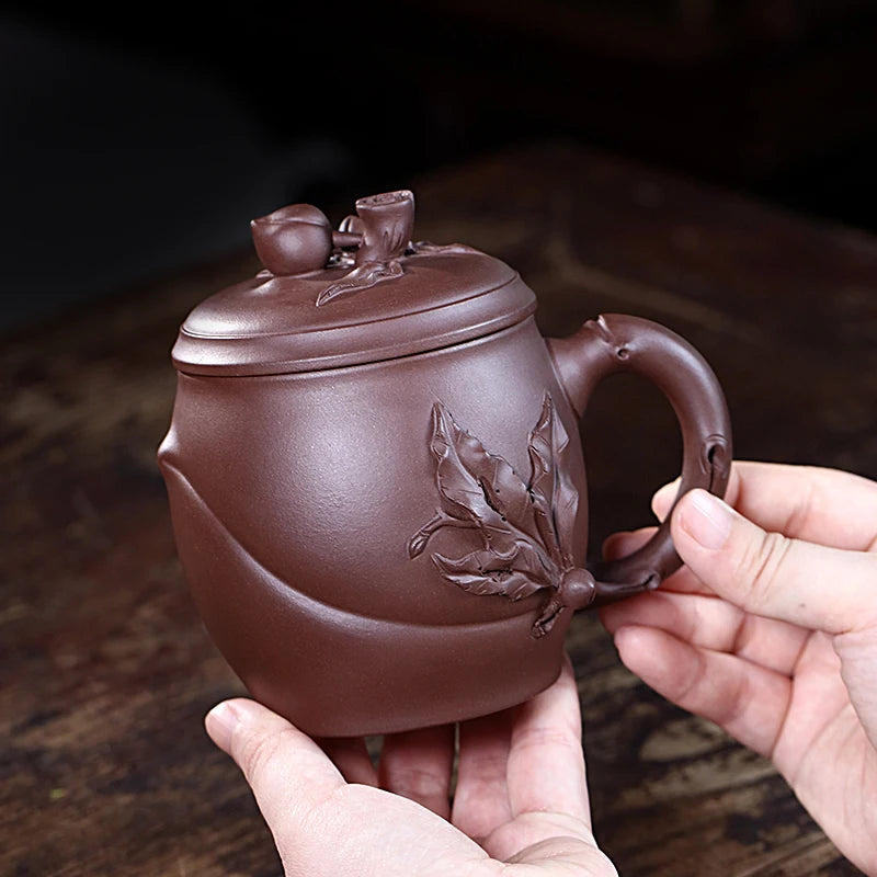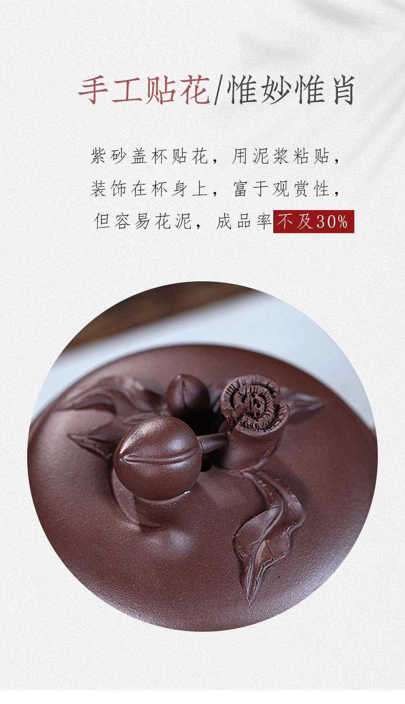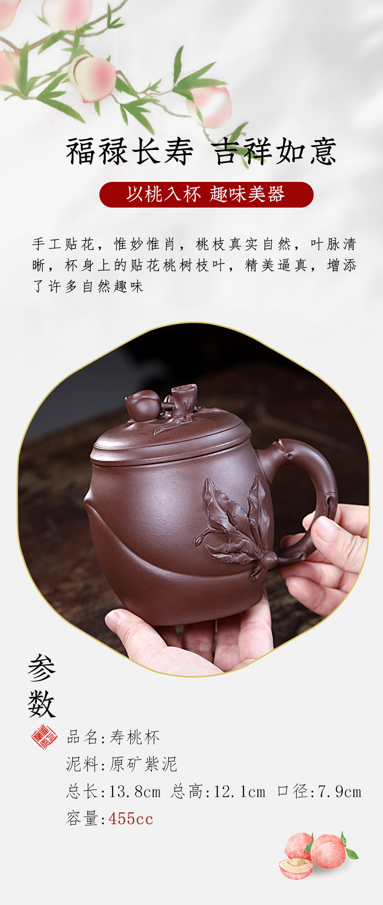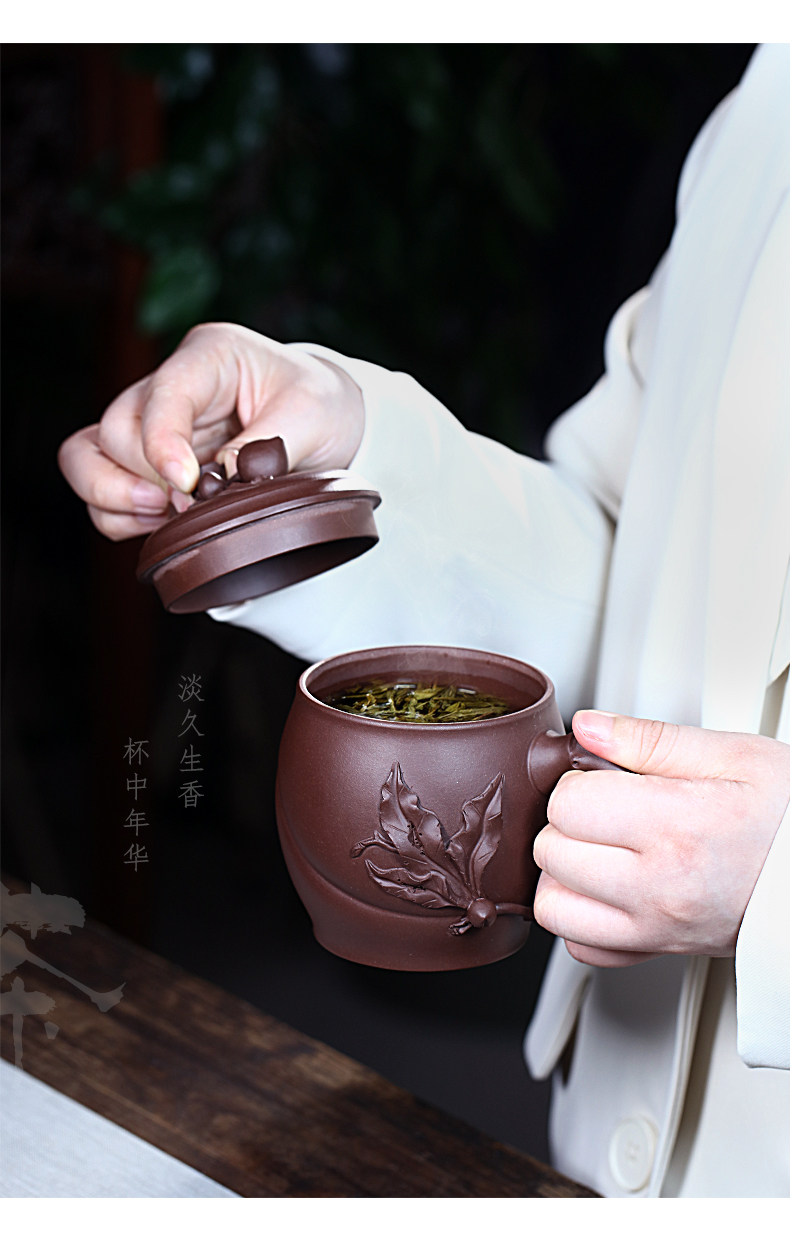 Zanghutianxia Yixing Zisha Cup Handmade Decals Longevity Peach Cup with Cover Large Capacity Office Teaware Men Tea Cup with Cov