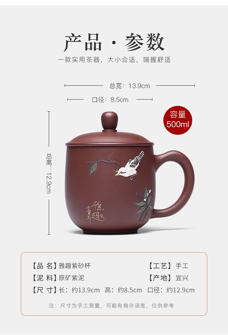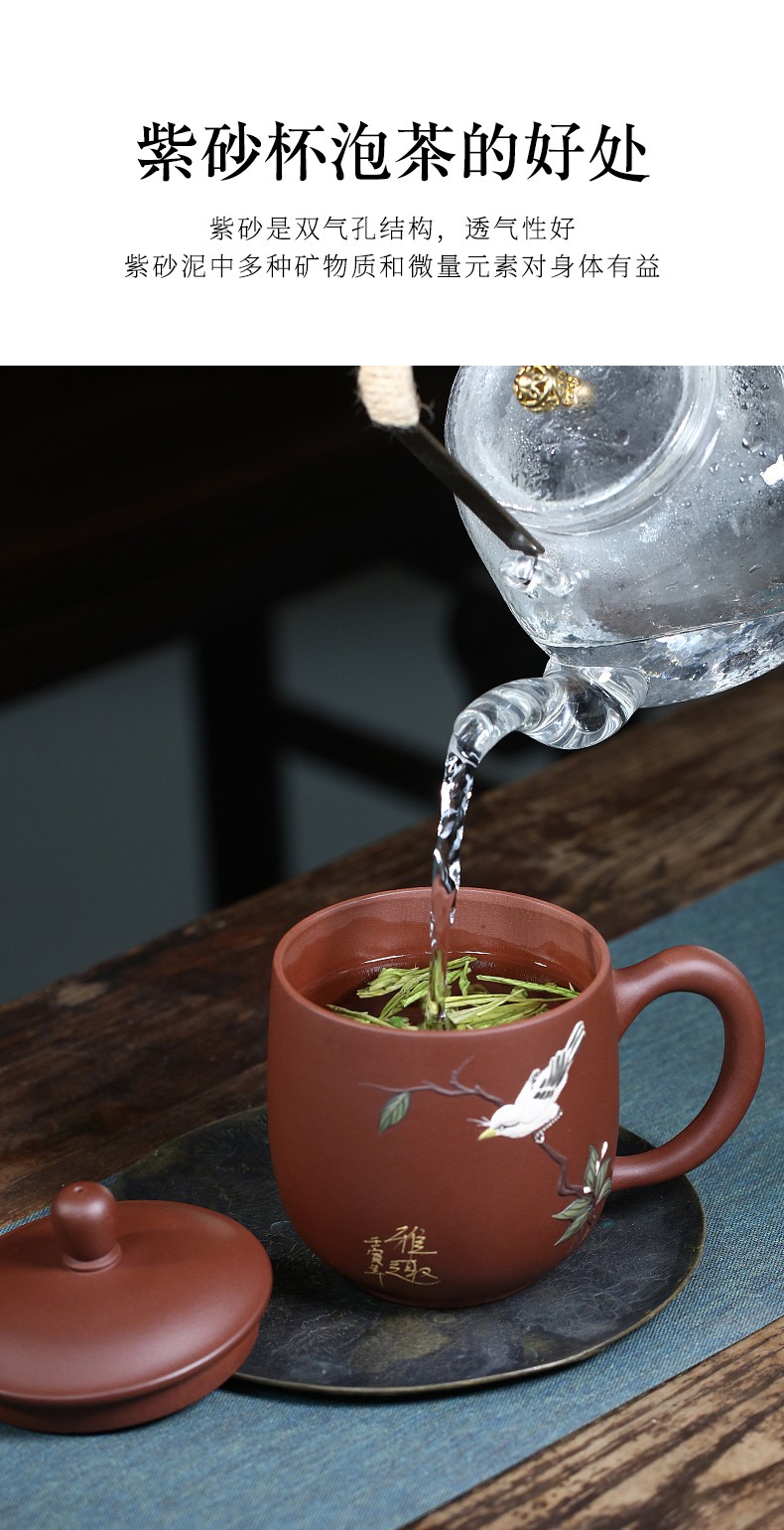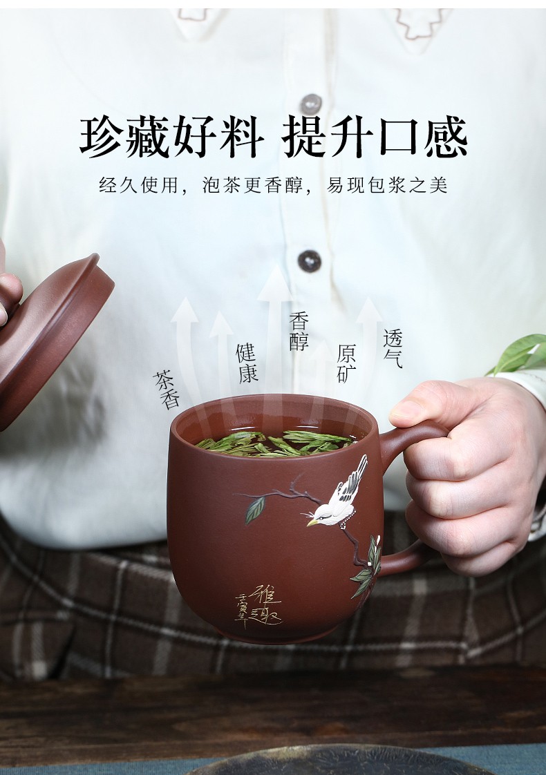 Zanghutianxia Yixing Zisha Cup Handmade Men's Tea Cup Personal Dedicated Office Teaware Large Capacity Elegant Cup with Cover El