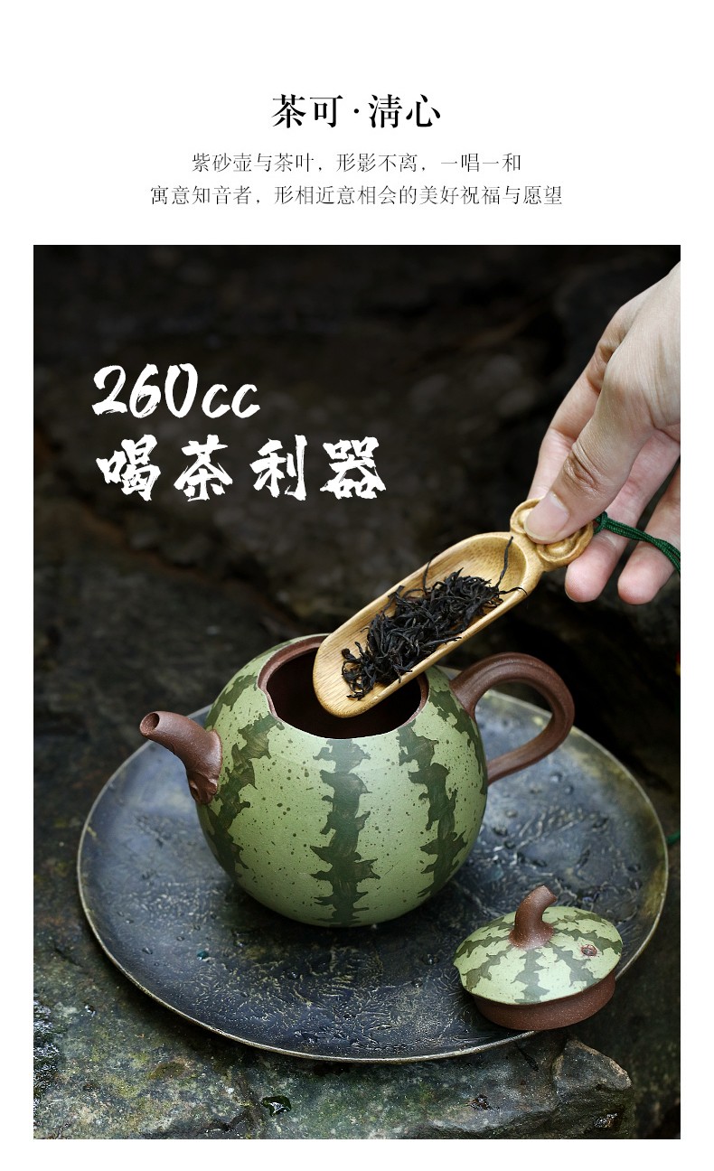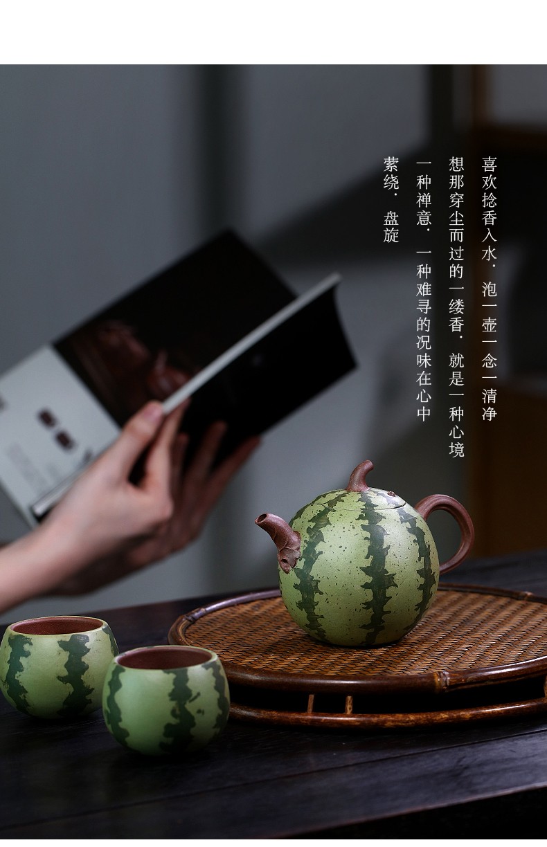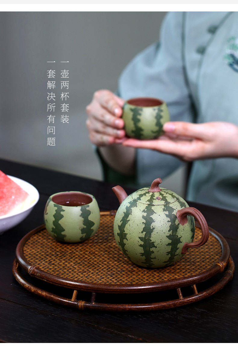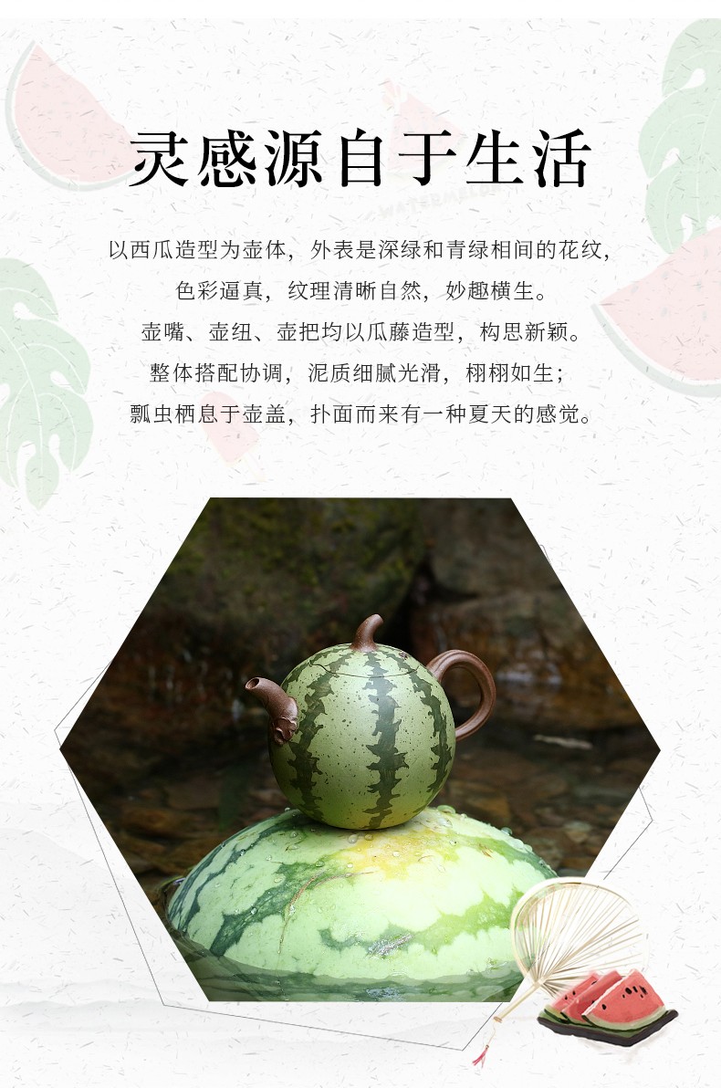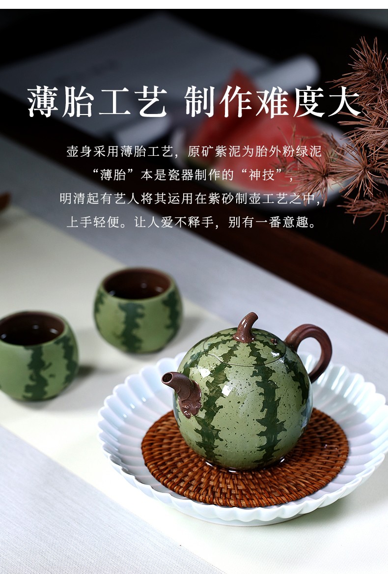 Zanghutianxia Yixing Zisha Teapot Bionic Watermelon Teapot Tea Set Handmade Flower Teapot Zisha Teapot Watermelon Pot One Pot Tw