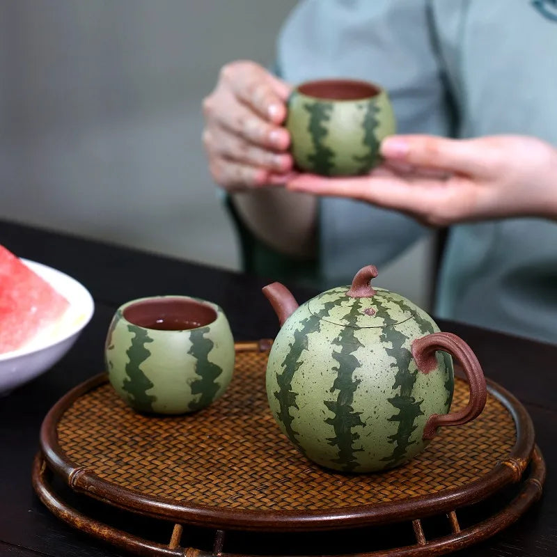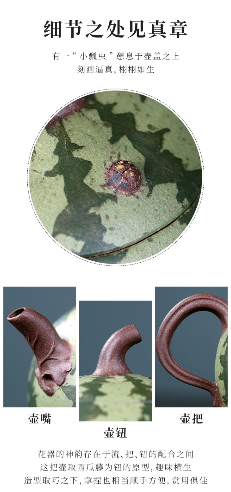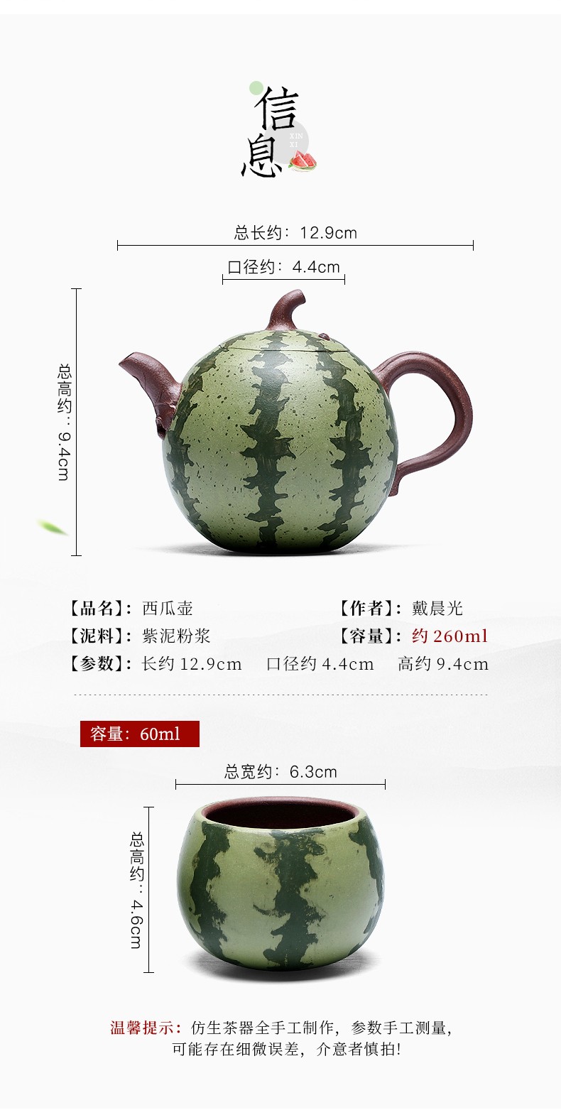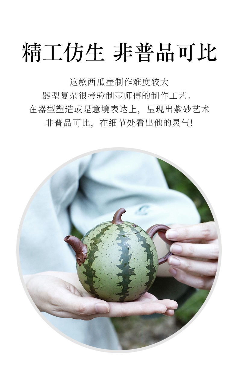 Zanghutianxia Yixing Zisha Teapot Bionic Watermelon Teapot Tea Set Handmade Flower Teapot Zisha Teapot Watermelon Pot One Pot Tw