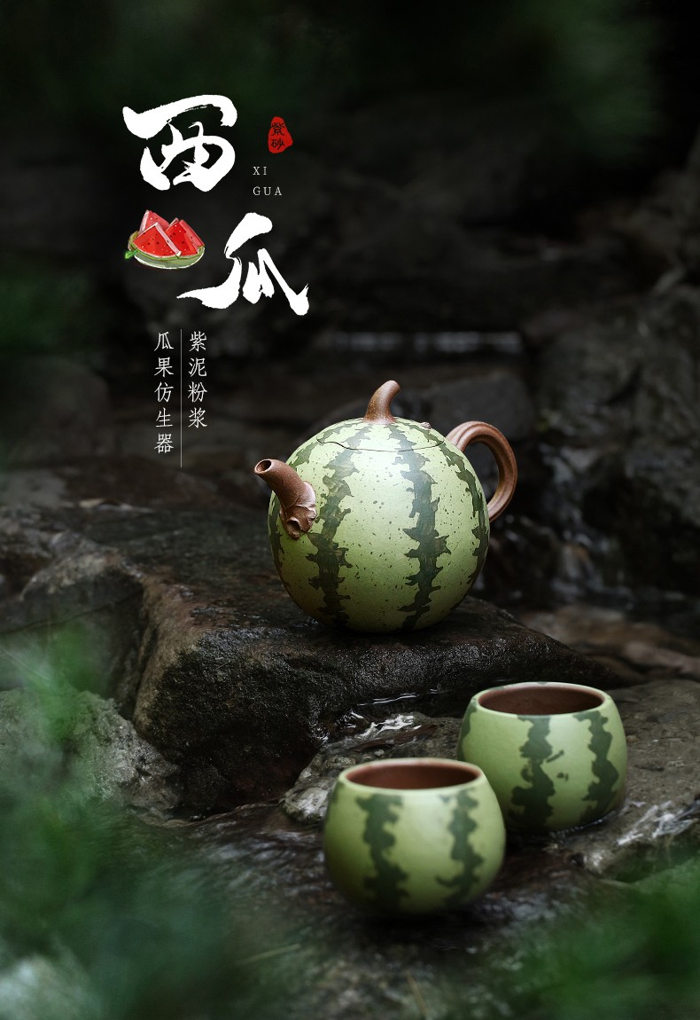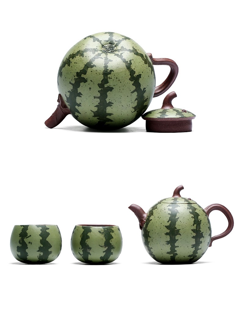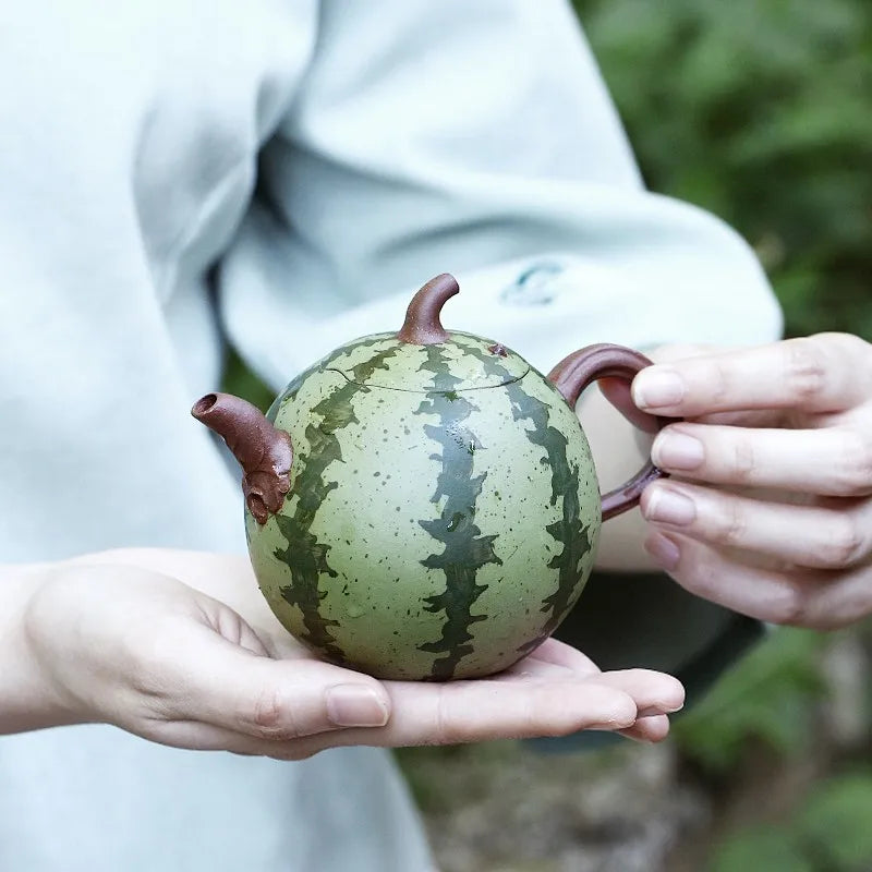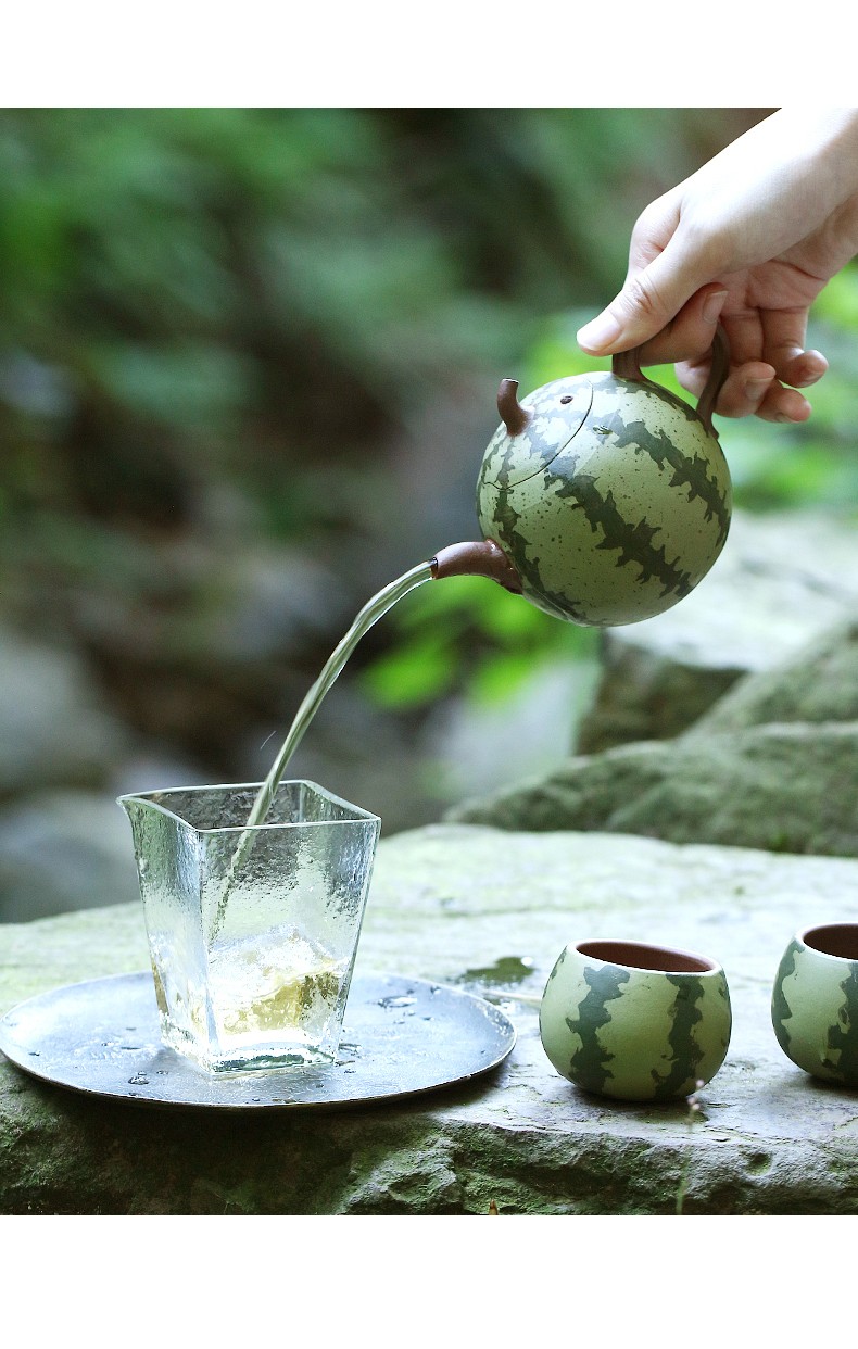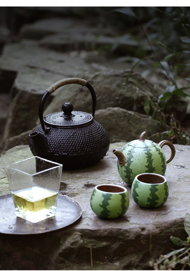 Zanghutianxia Yixing Zisha Teapot Bionic Watermelon Teapot Tea Set Handmade Flower Teapot Zisha Teapot Watermelon Pot One Pot Tw