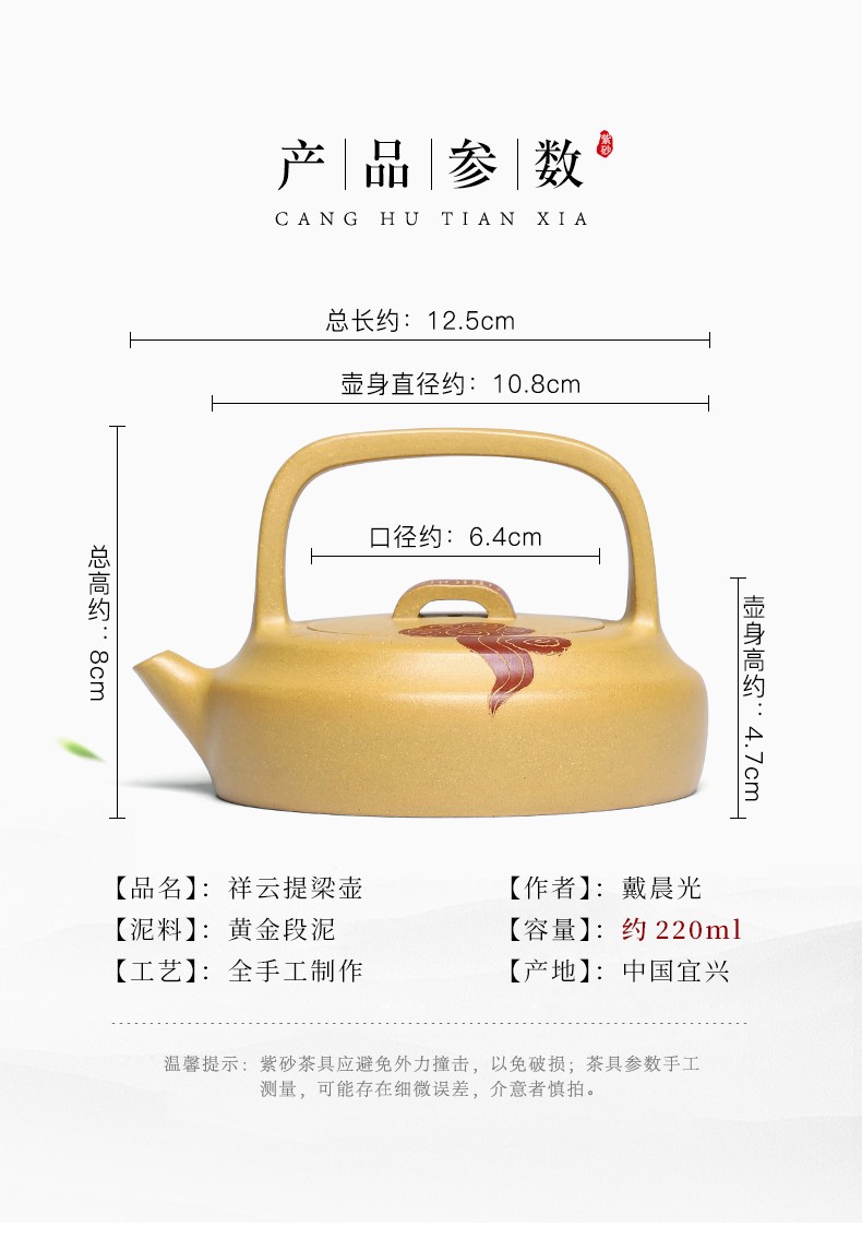 Zanghutianxia Yixing Zisha Teapot Famous Dai Chengguang Pure Handmade Teapot Tea Set Raw Ore Gold Segment Mud Xiangyun Lifting H
