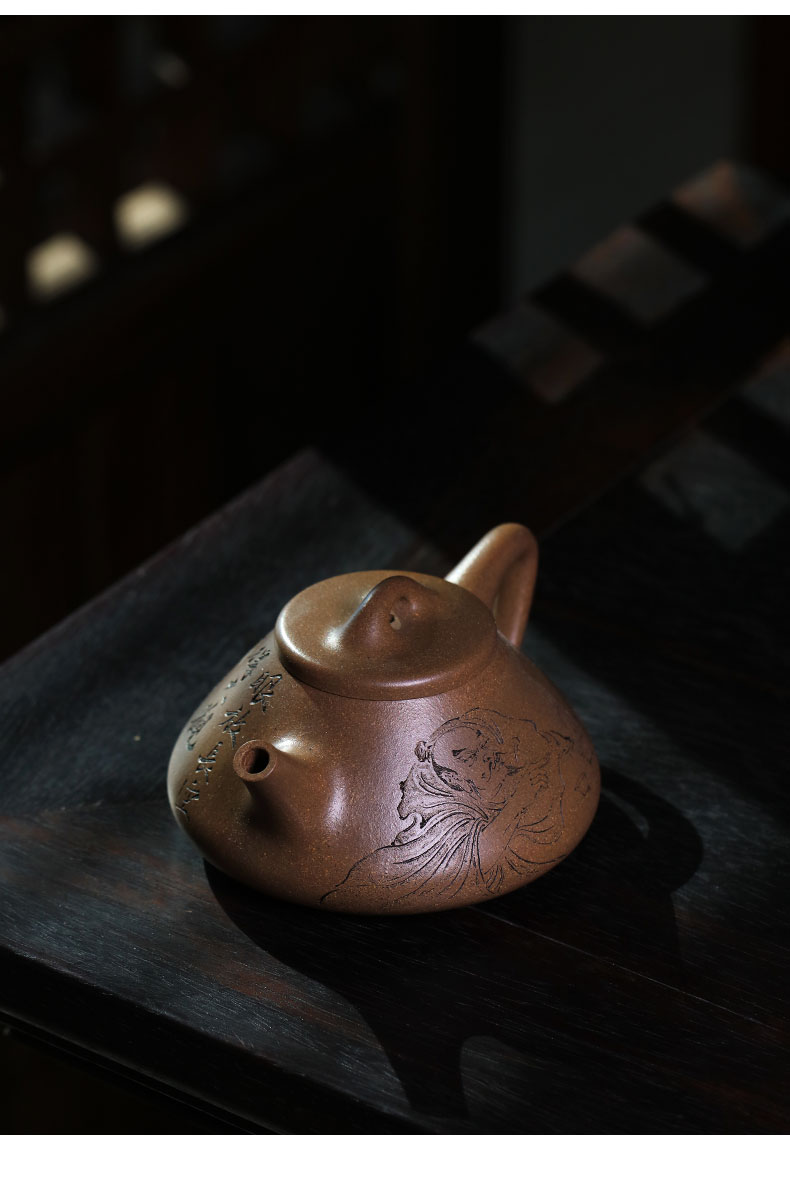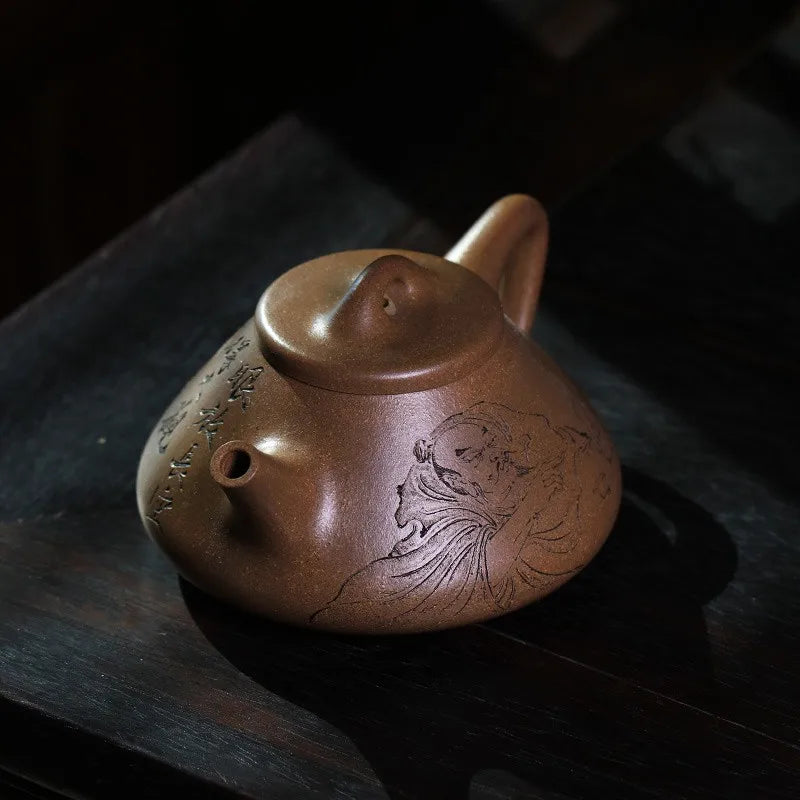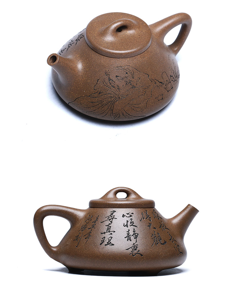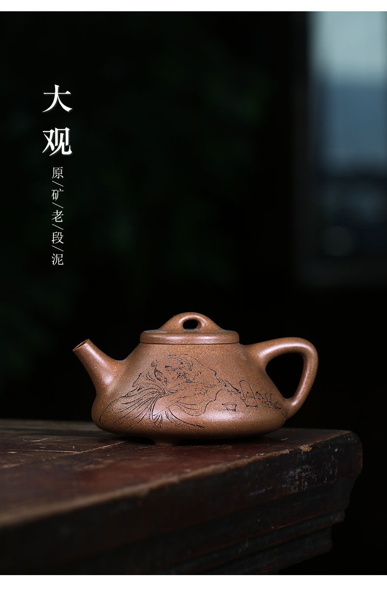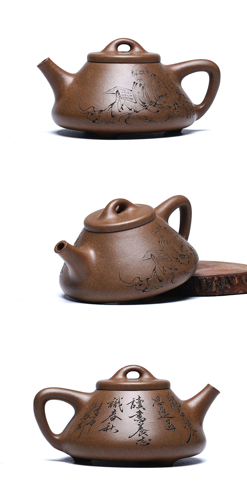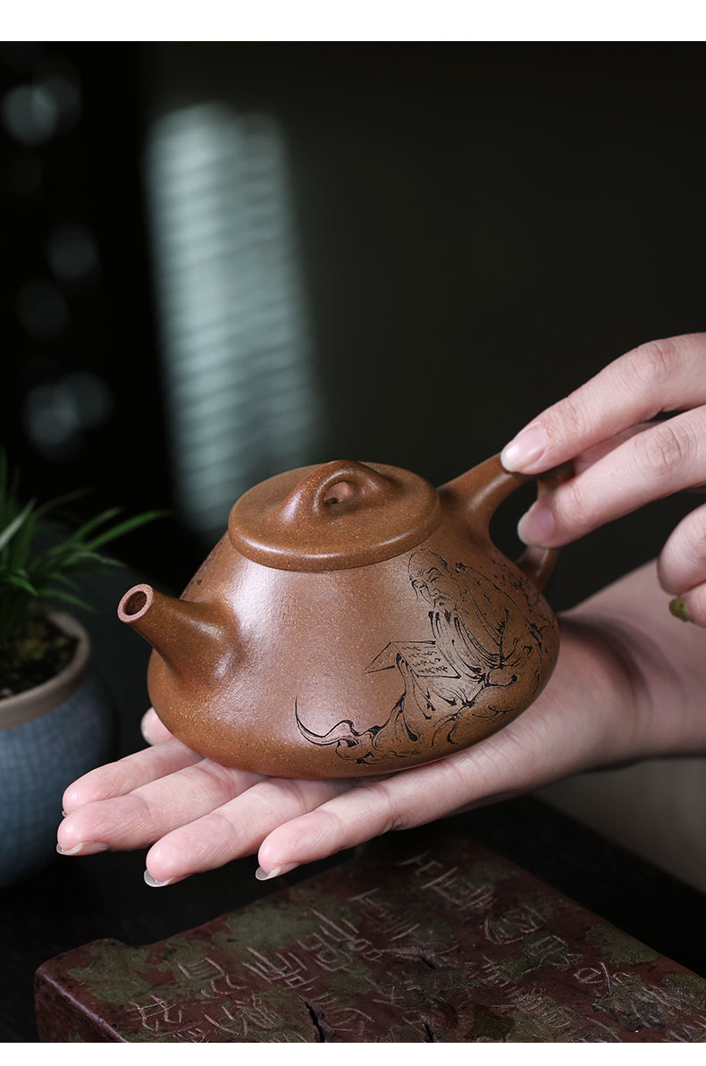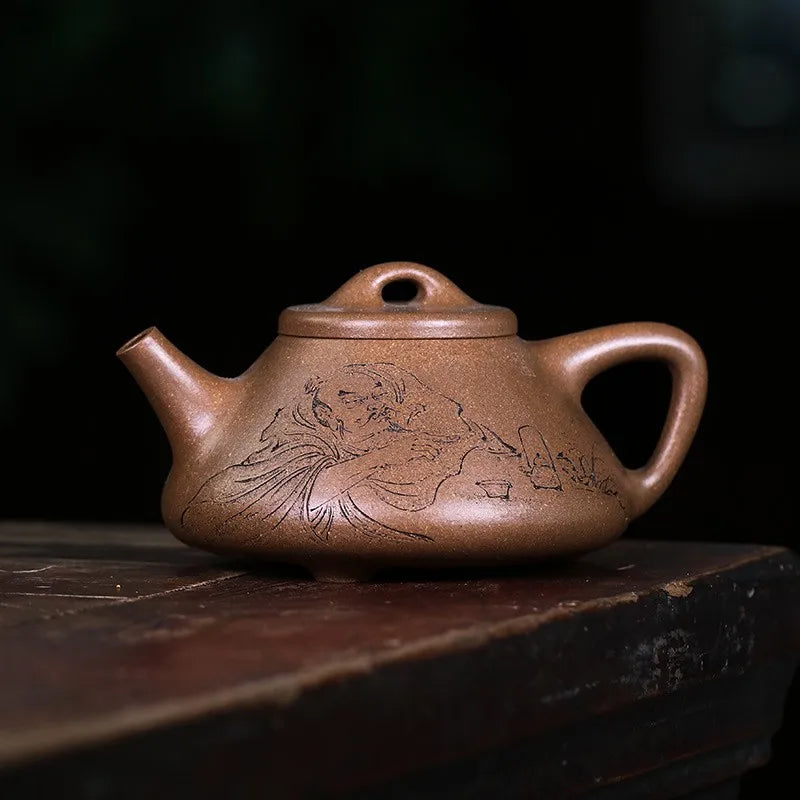 Zanghutianxia Yixing Zisha Teapot Famous Zhang Qian Hand-Carved Kung Fu Tea Set Handmade Teapot Raw Ore Old Section Clay Metallu