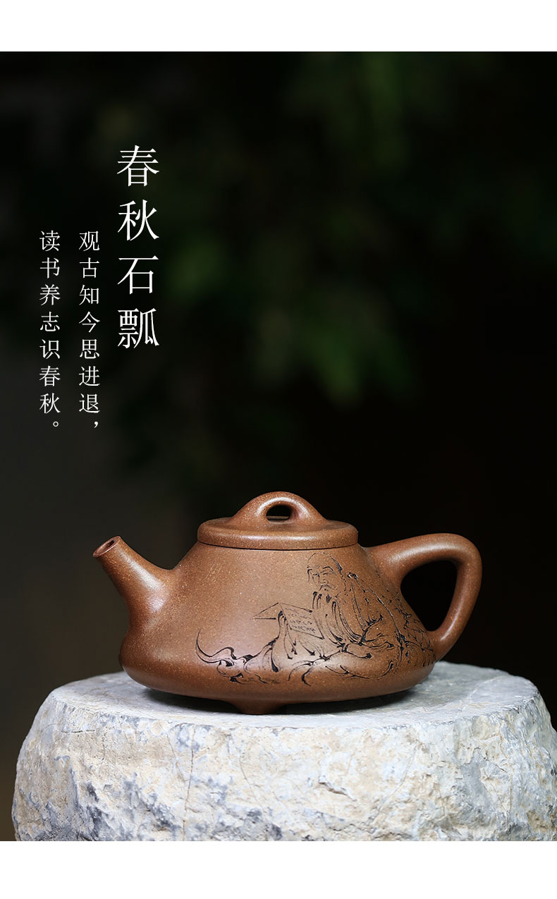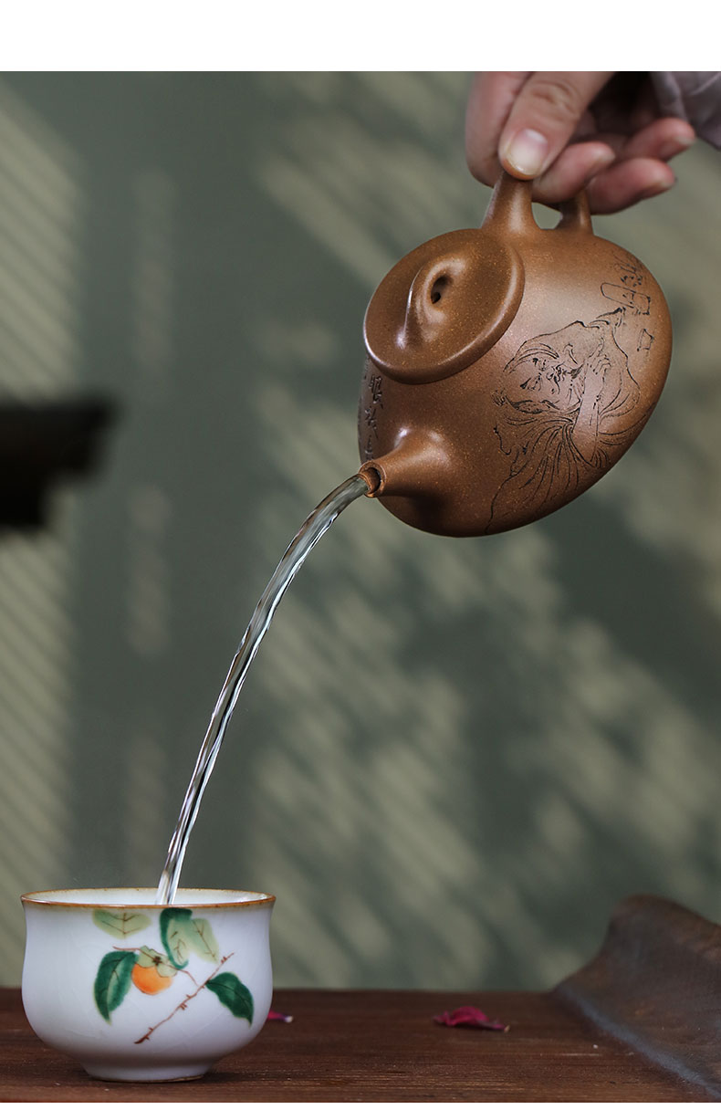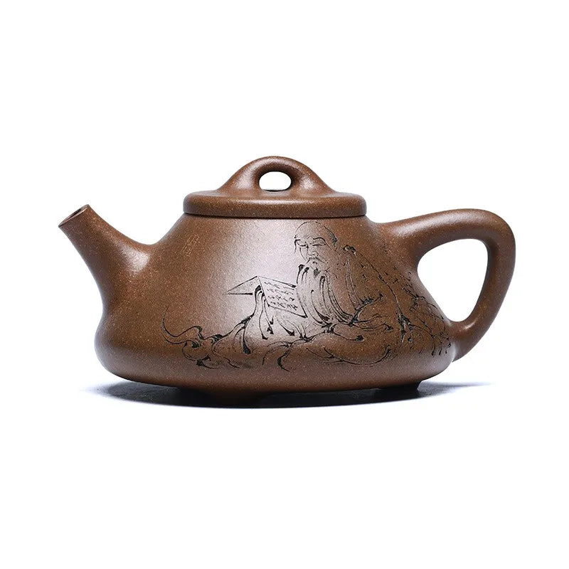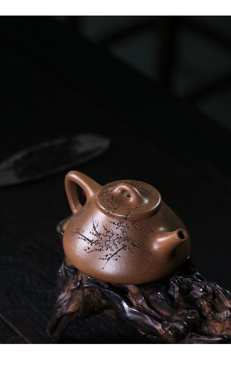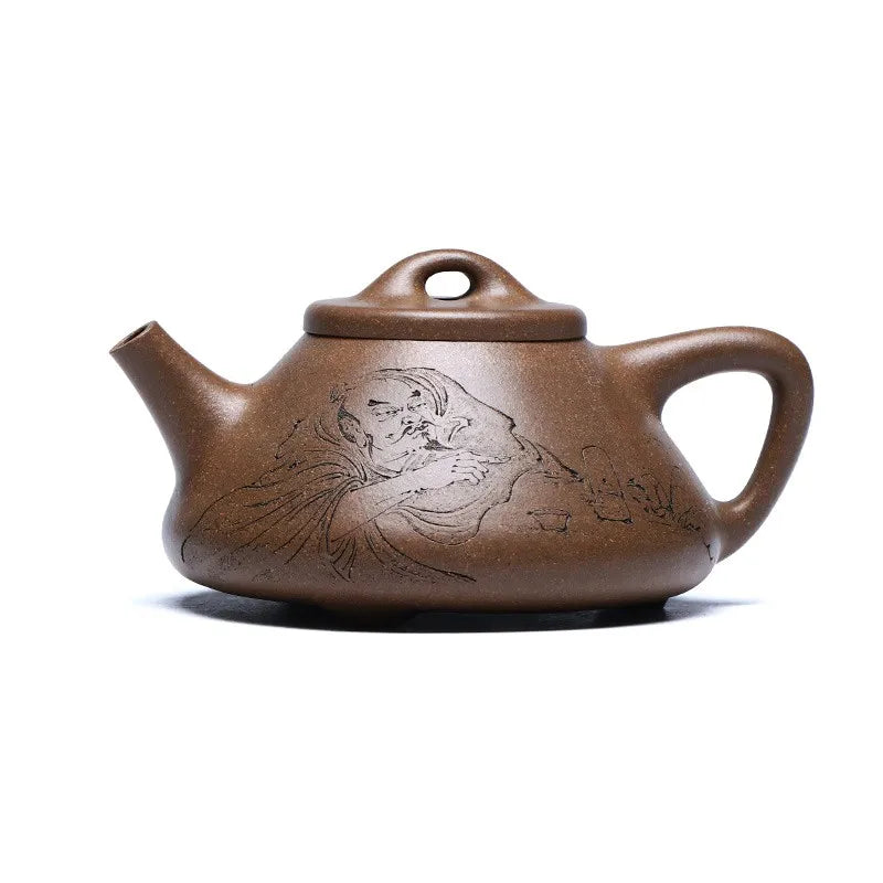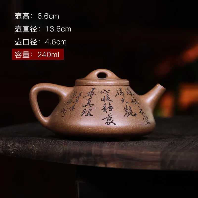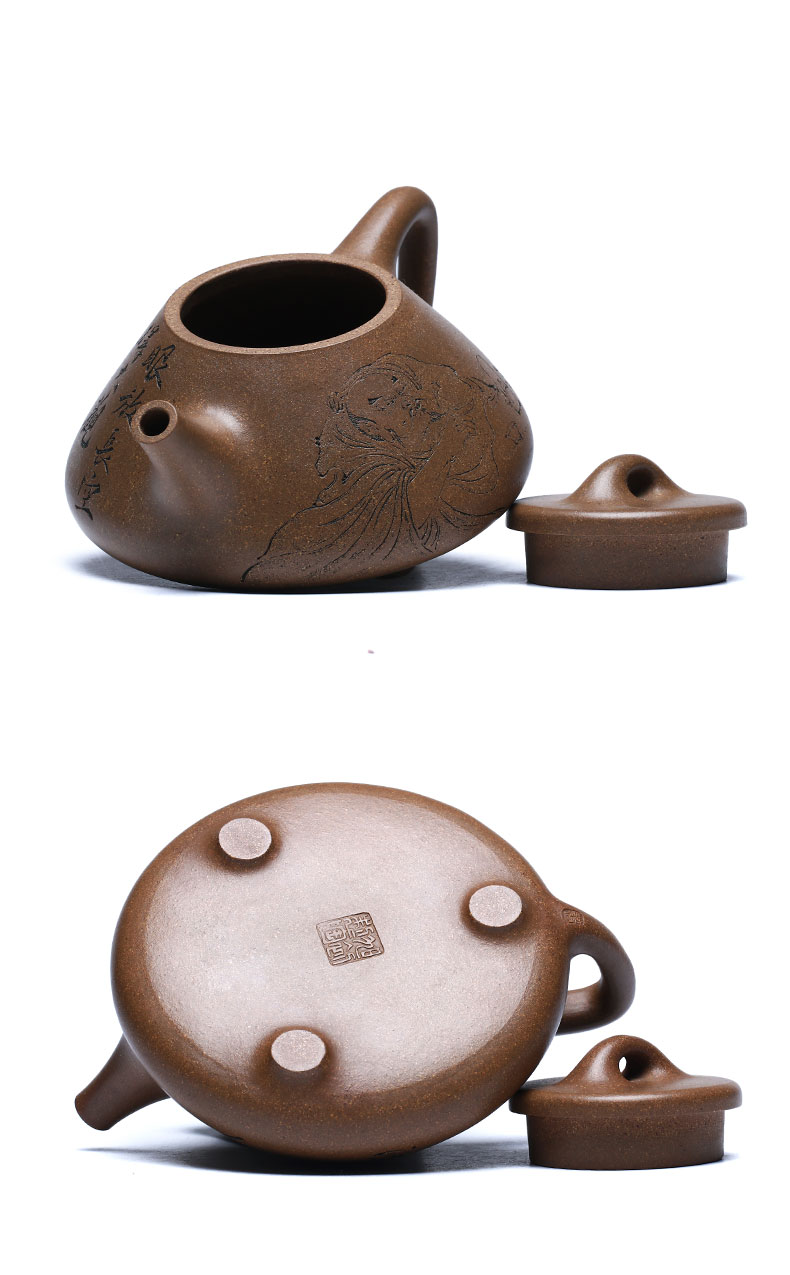 Zanghutianxia Yixing Zisha Teapot Famous Zhang Qian Hand-Carved Kung Fu Tea Set Handmade Teapot Raw Ore Old Section Clay Metallu