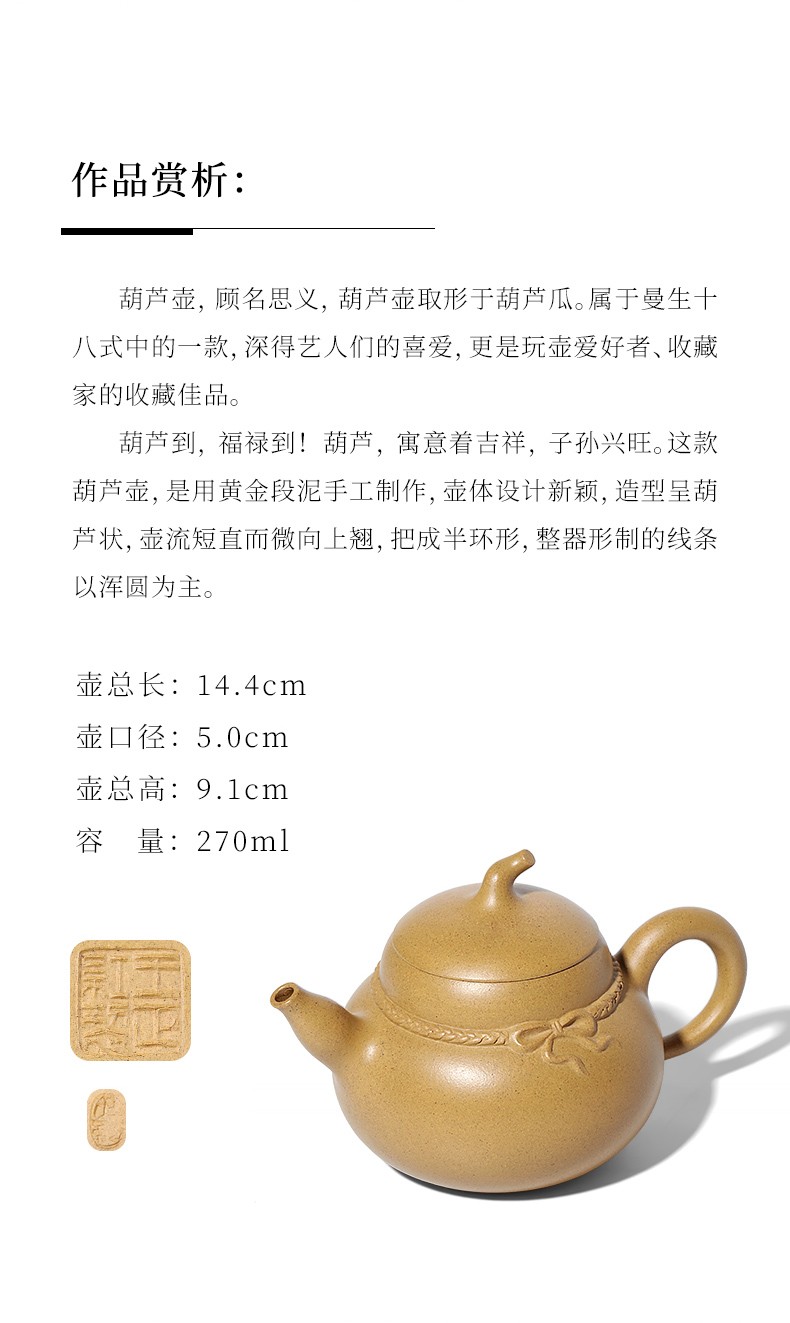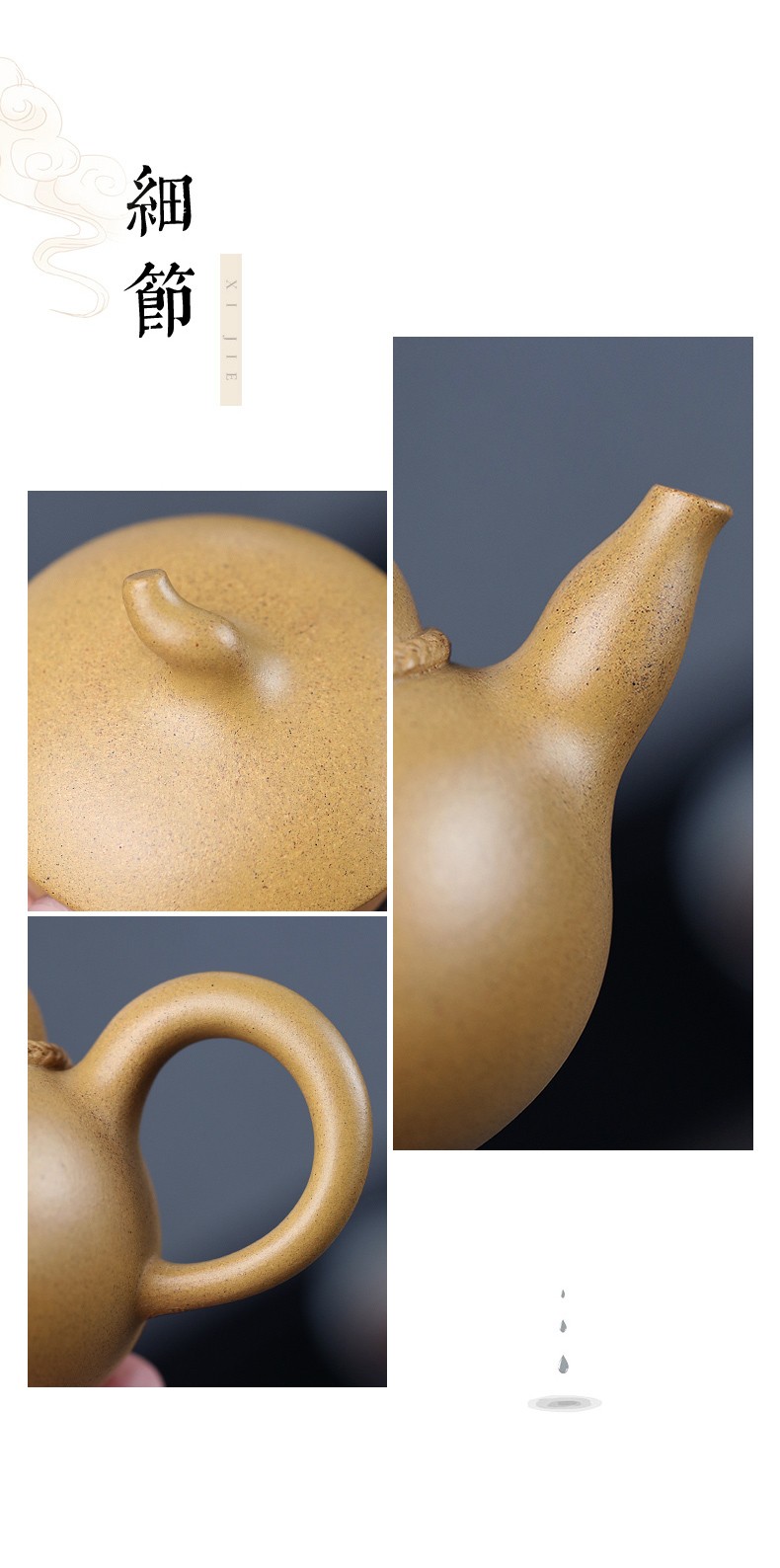 Zanghutianxia Yixing Zisha Teapot Handmade High-Grade Teapot Single Teapot Raw Ore Gold Segment Mud Handmade Zisha Tea Set Gourd