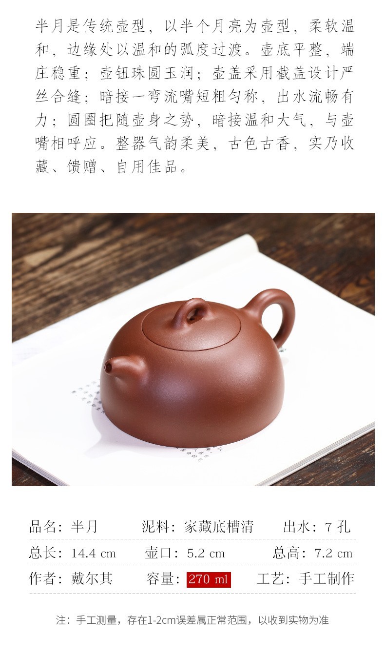 Zanghutianxia Yixing Zisha Teapot Handmade Zisha Tea Set Raw Ore Home Storage Bottom Trough Clear Teapot Single Teapot Half Mont