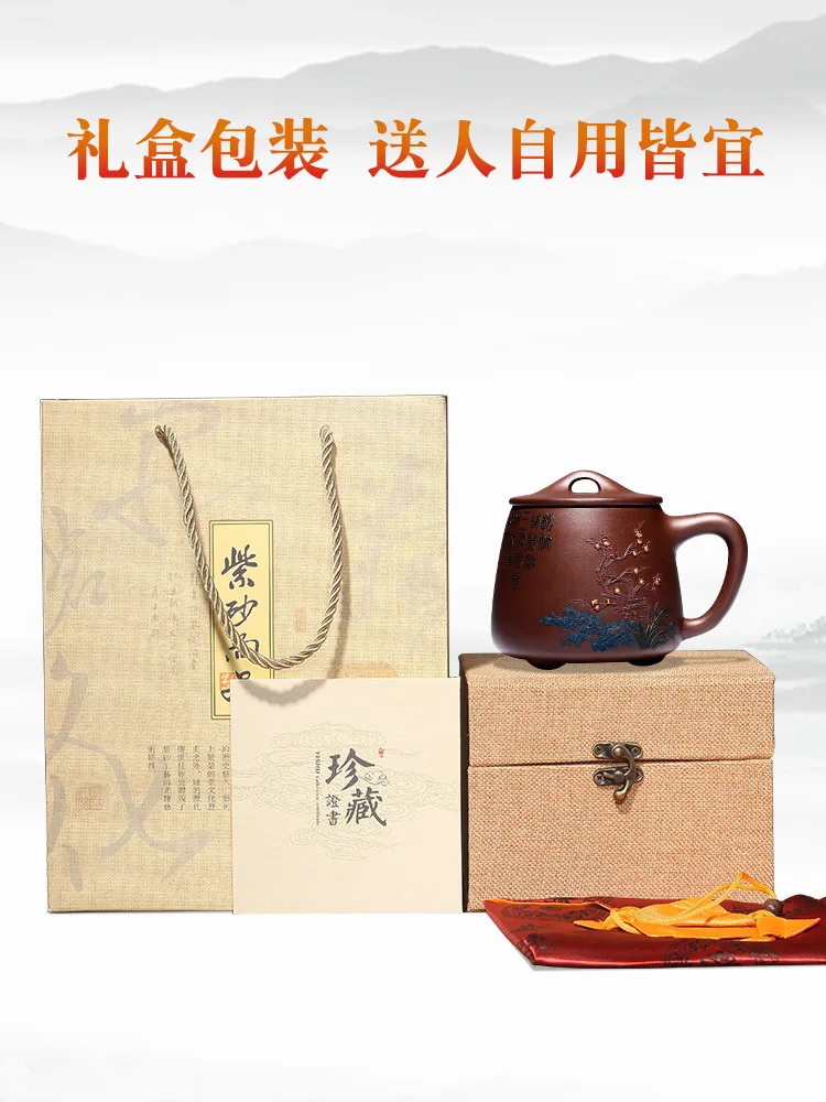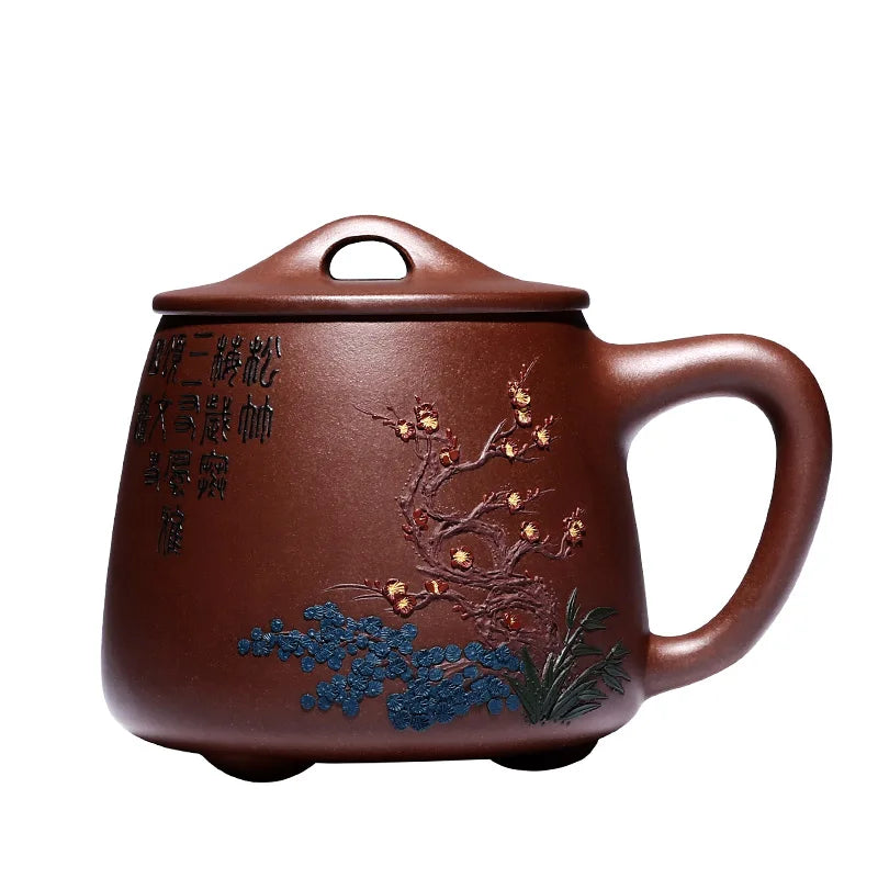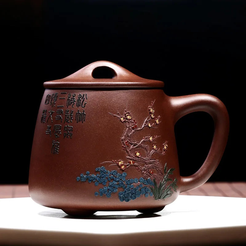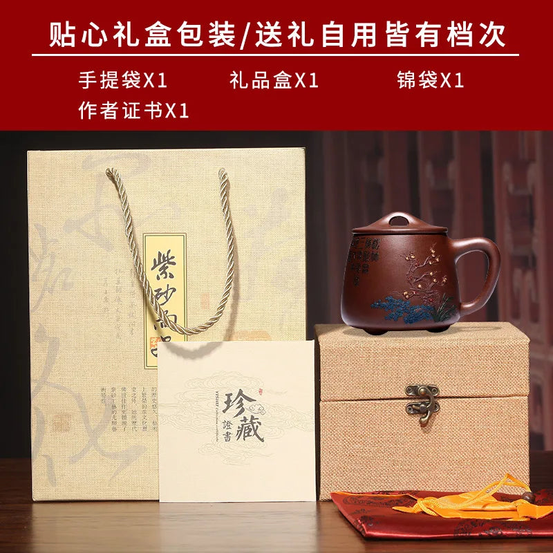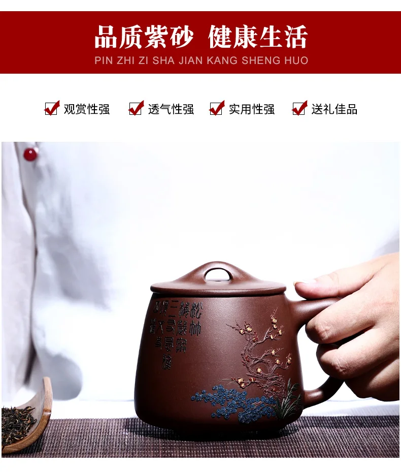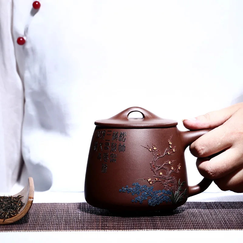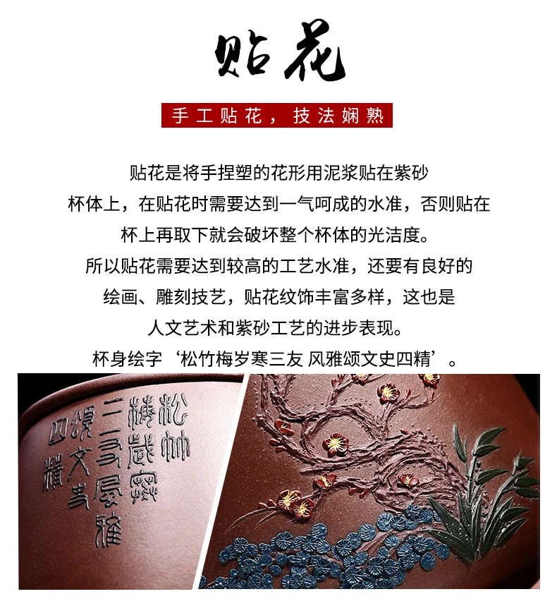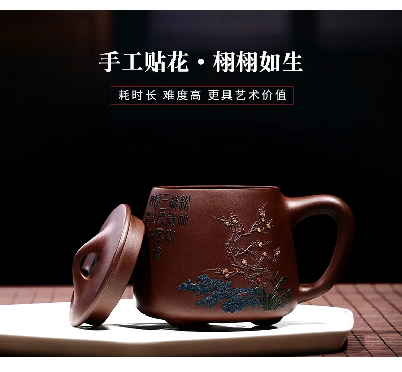 Zhenyi Yixing Zisha Cup pure handmade cover cup, piled flower tea cup, engraved tea set, Songzhumei shipao cup