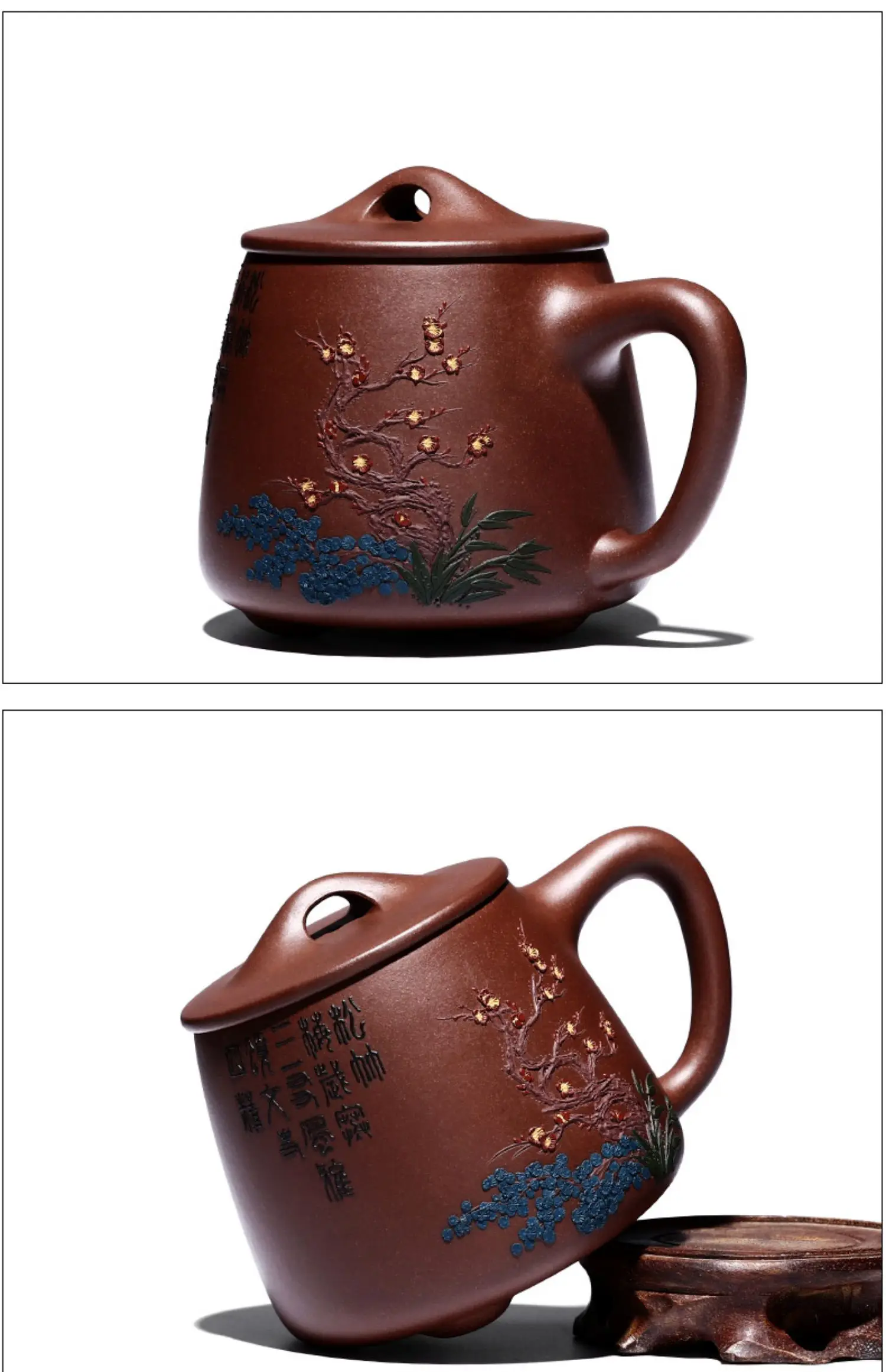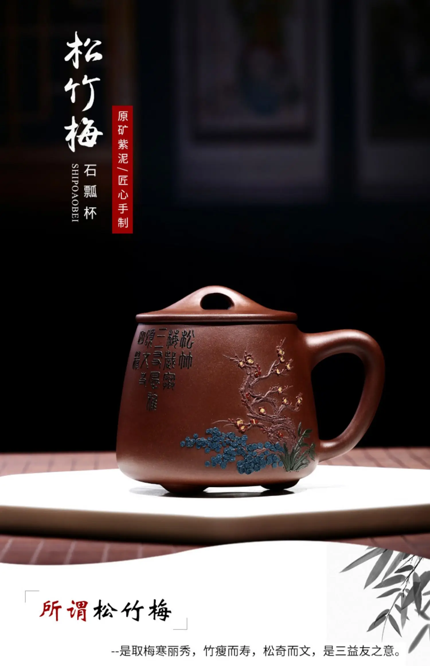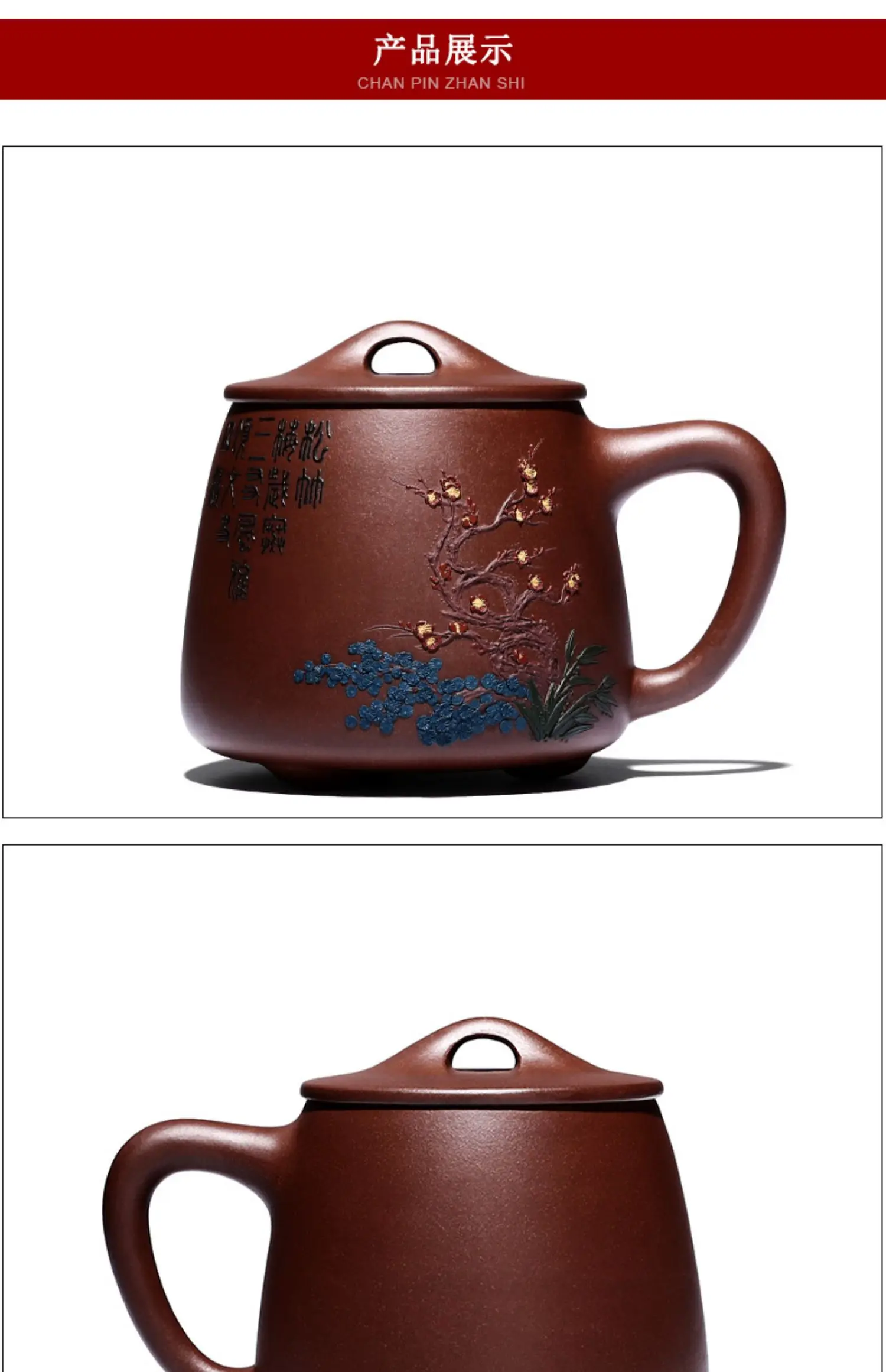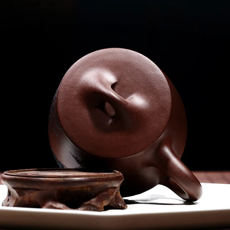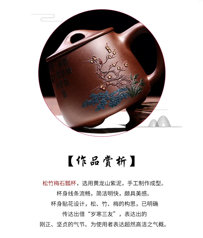 Zhenyi Yixing Zisha Cup pure handmade cover cup, piled flower tea cup, engraved tea set, Songzhumei shipao cup