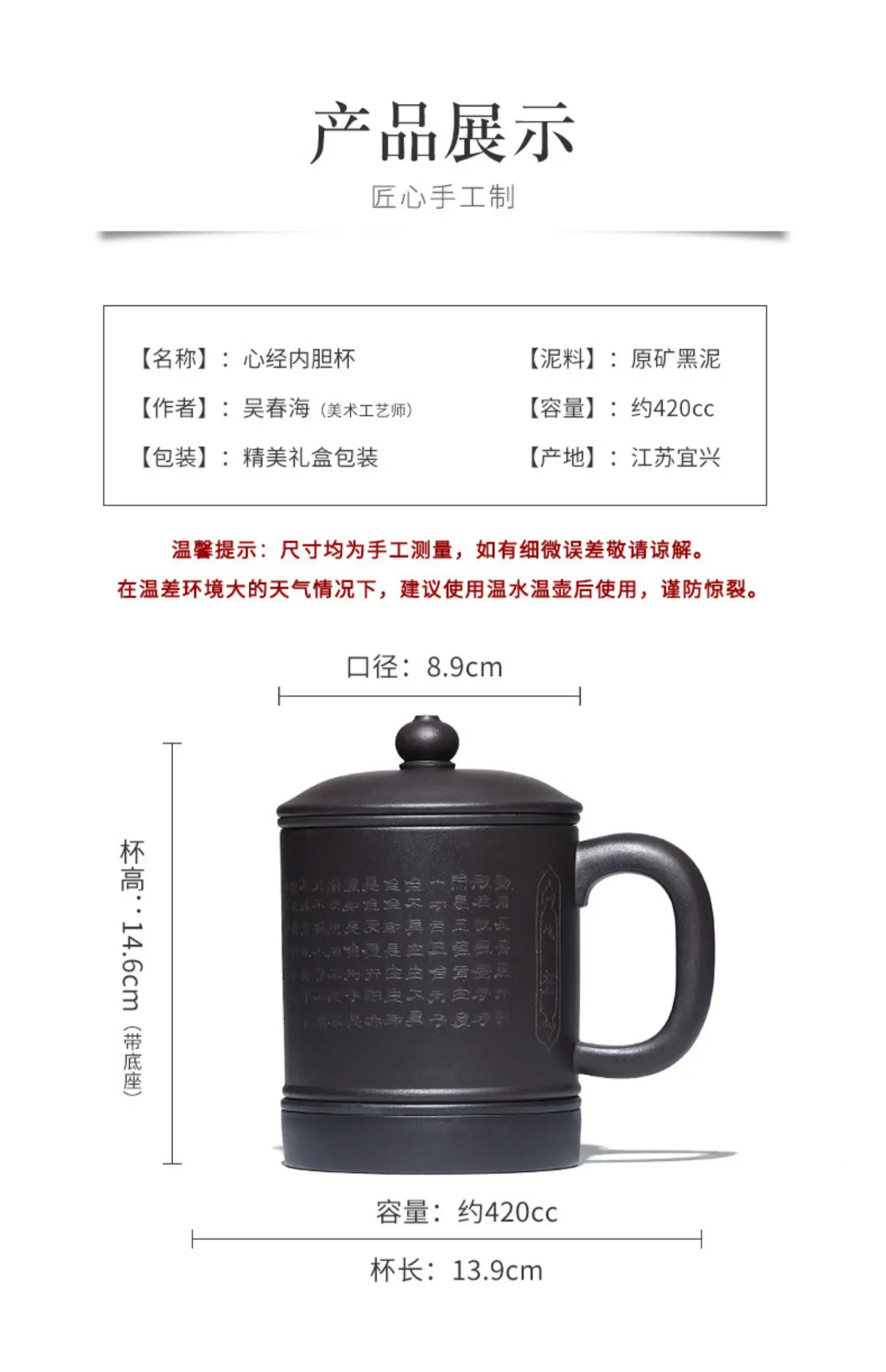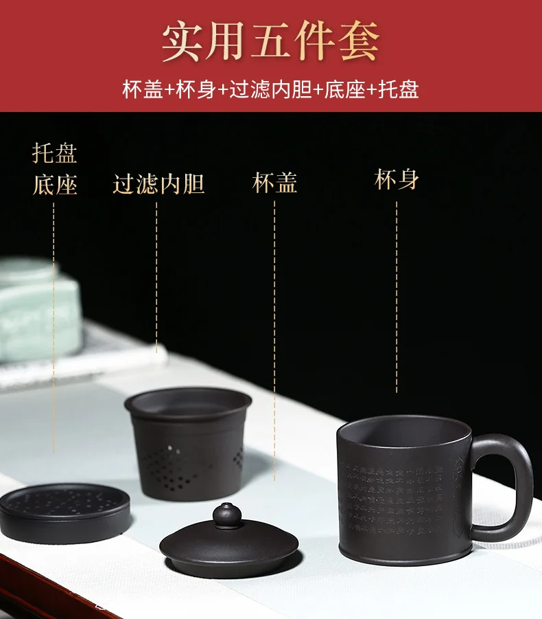 Zhenyi Yixing Zisha Cup pure handmade famous tea cup office cup tea set liner filter cup Heart Sutra cover cup