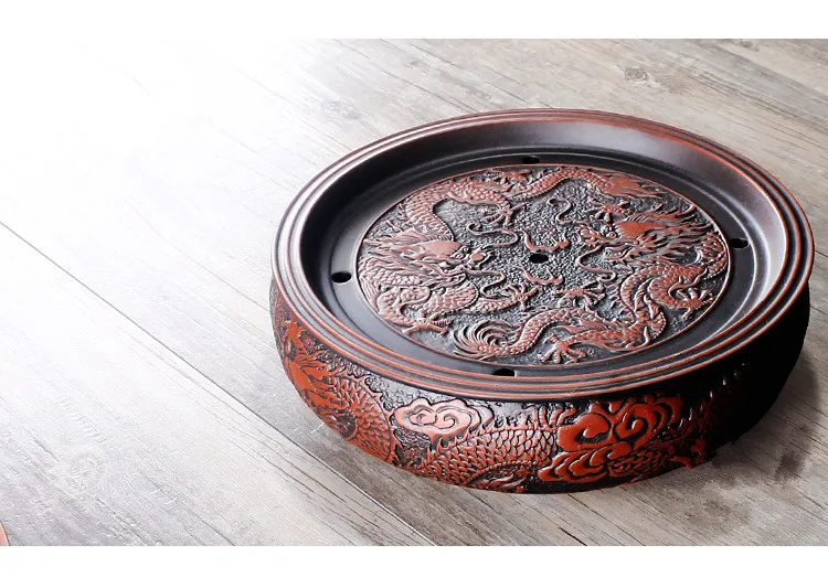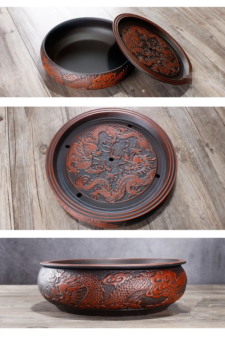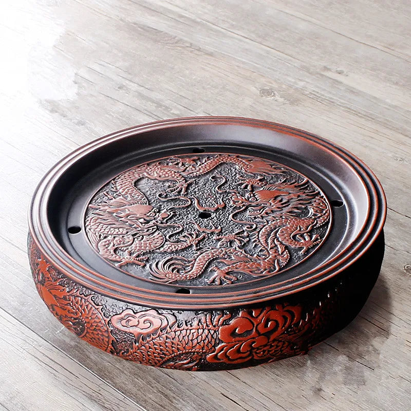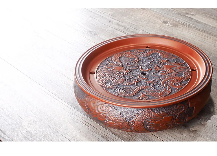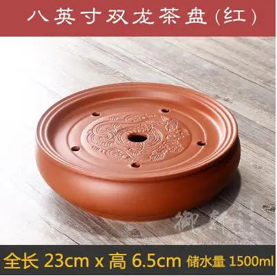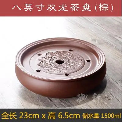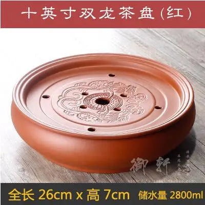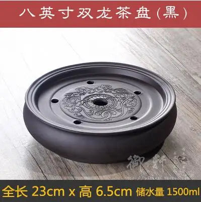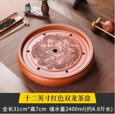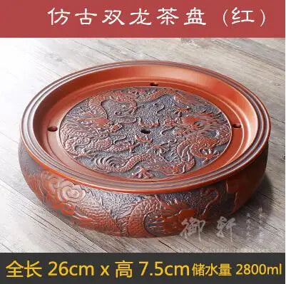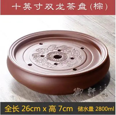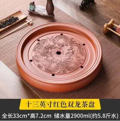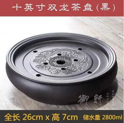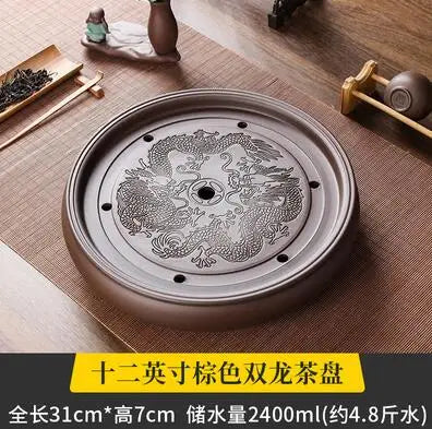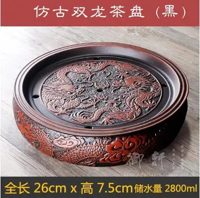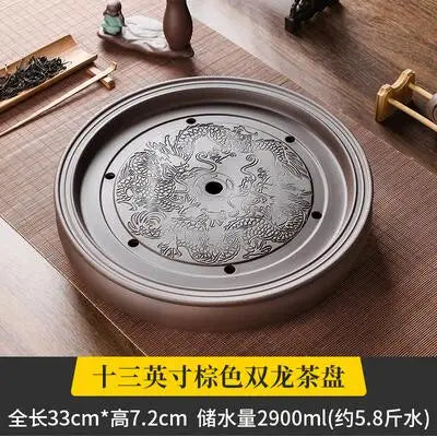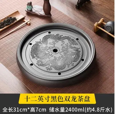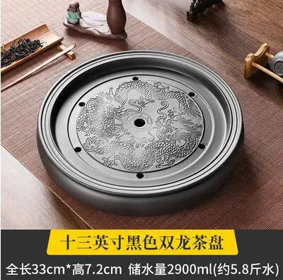 Zisha Chinese Tea Set, Water Storage Type, Large Tea Tray, Ceramic Round Dry Bubble Tea Table, Antique Double Dragon Tea Tray