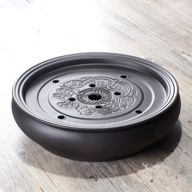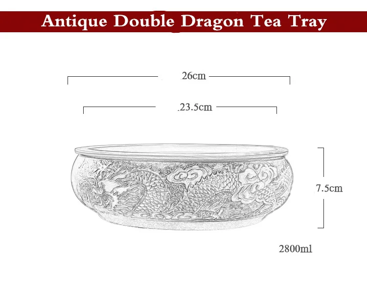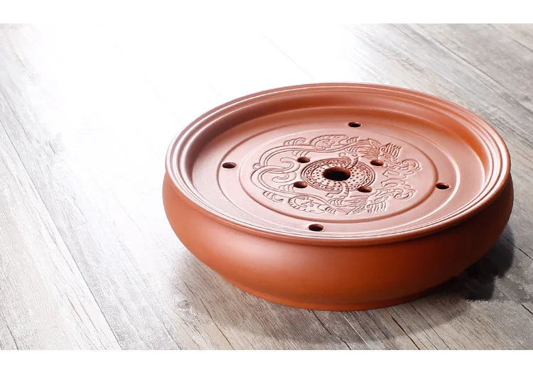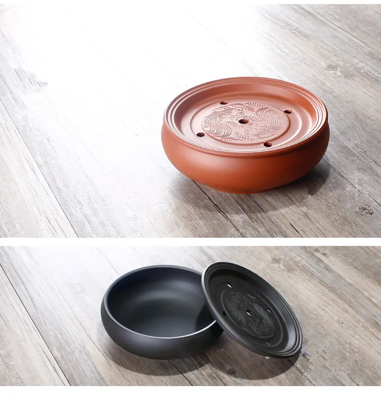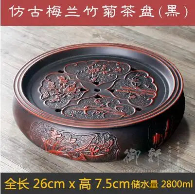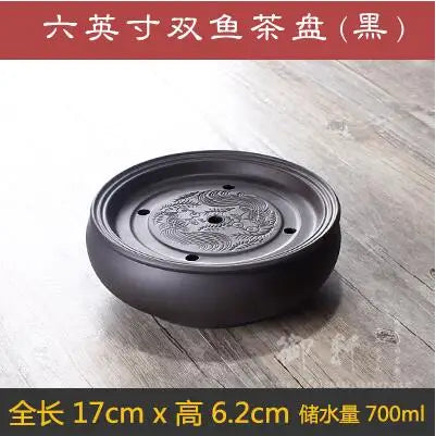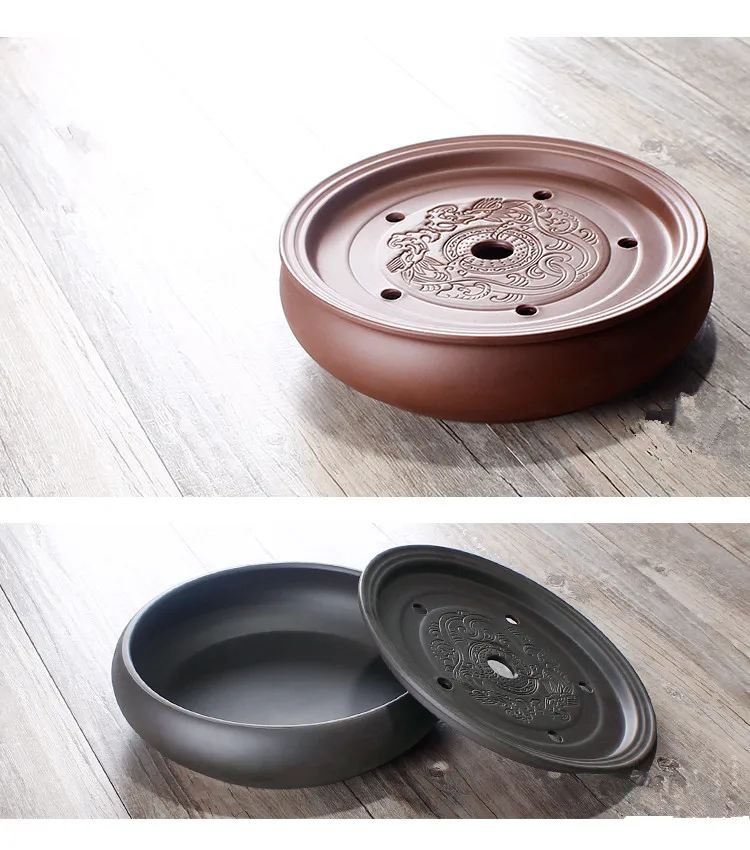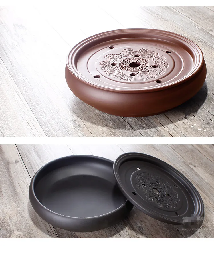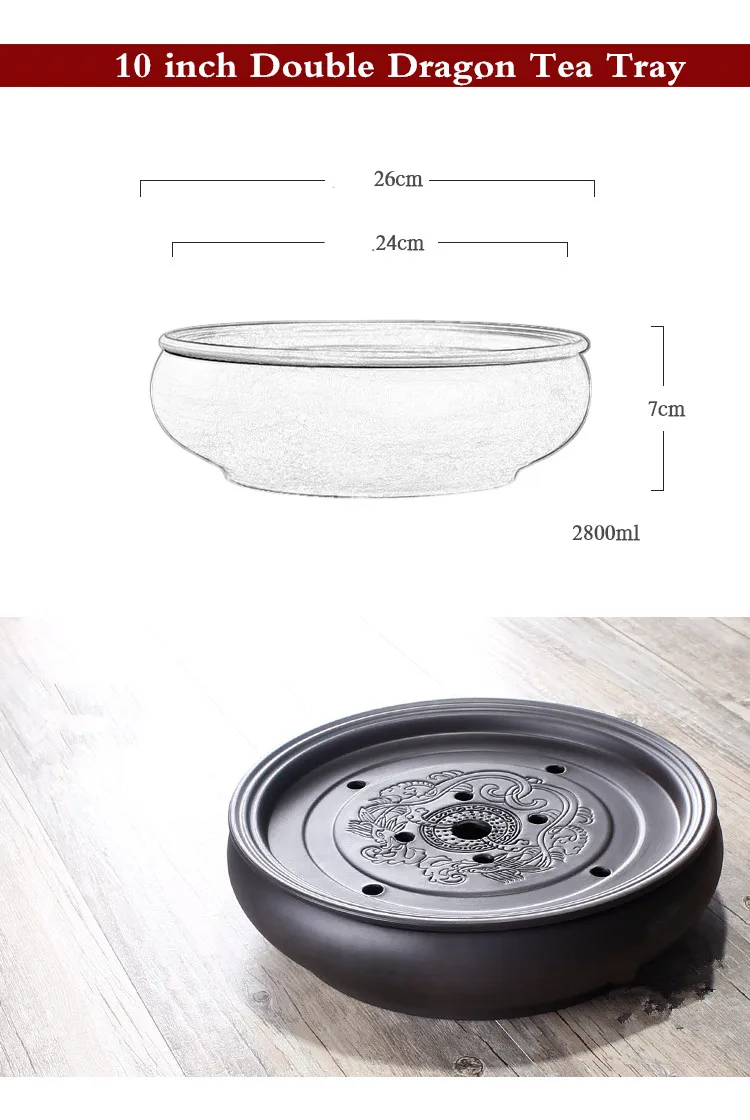 Zisha Chinese Tea Set, Water Storage Type, Large Tea Tray, Ceramic Round Dry Bubble Tea Table, Antique Double Dragon Tea Tray