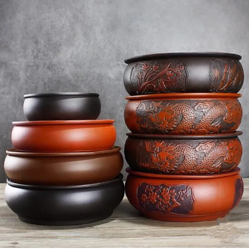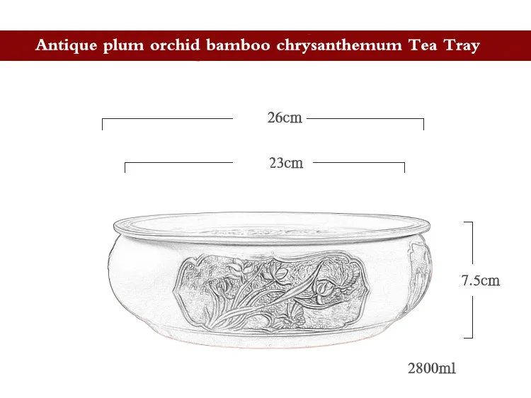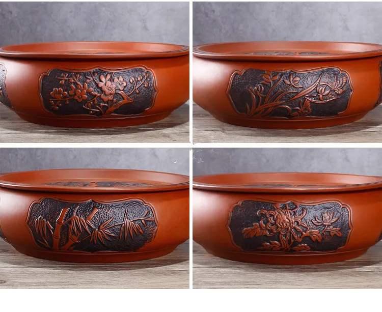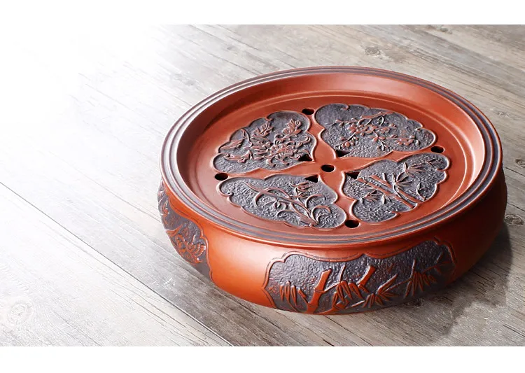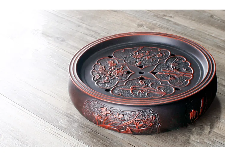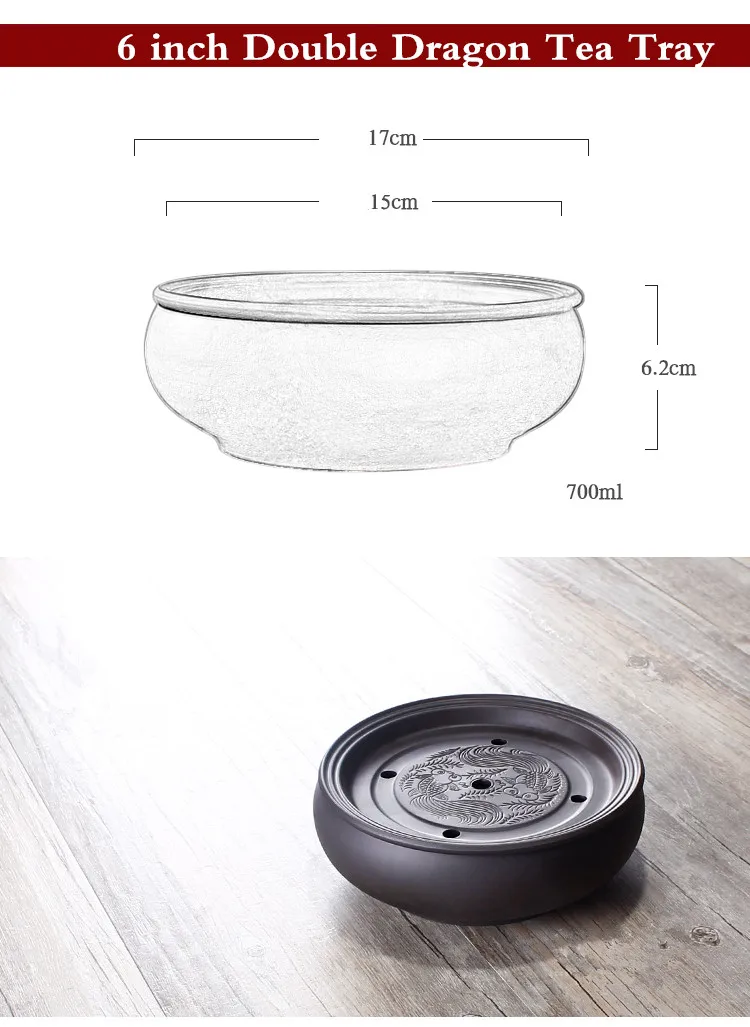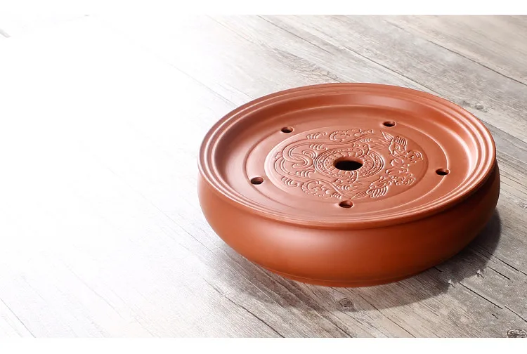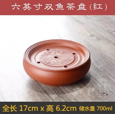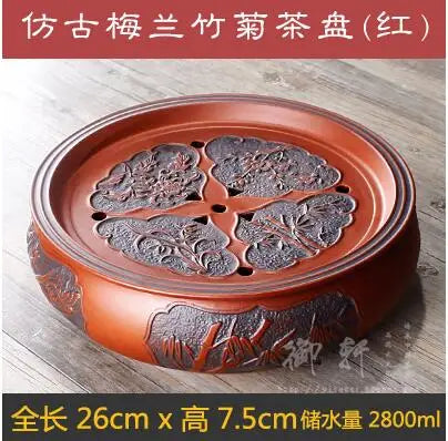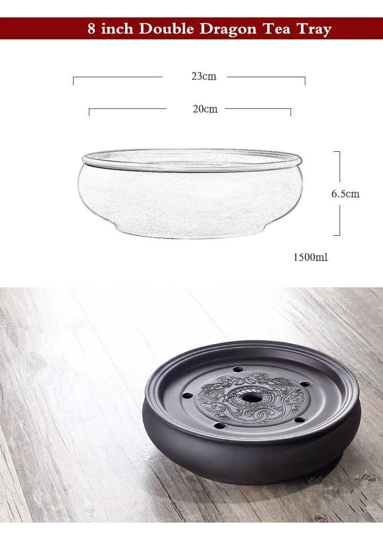 Zisha Chinese Tea Set, Water Storage Type, Large Tea Tray, Ceramic Round Dry Bubble Tea Table, Antique Double Dragon Tea Tray