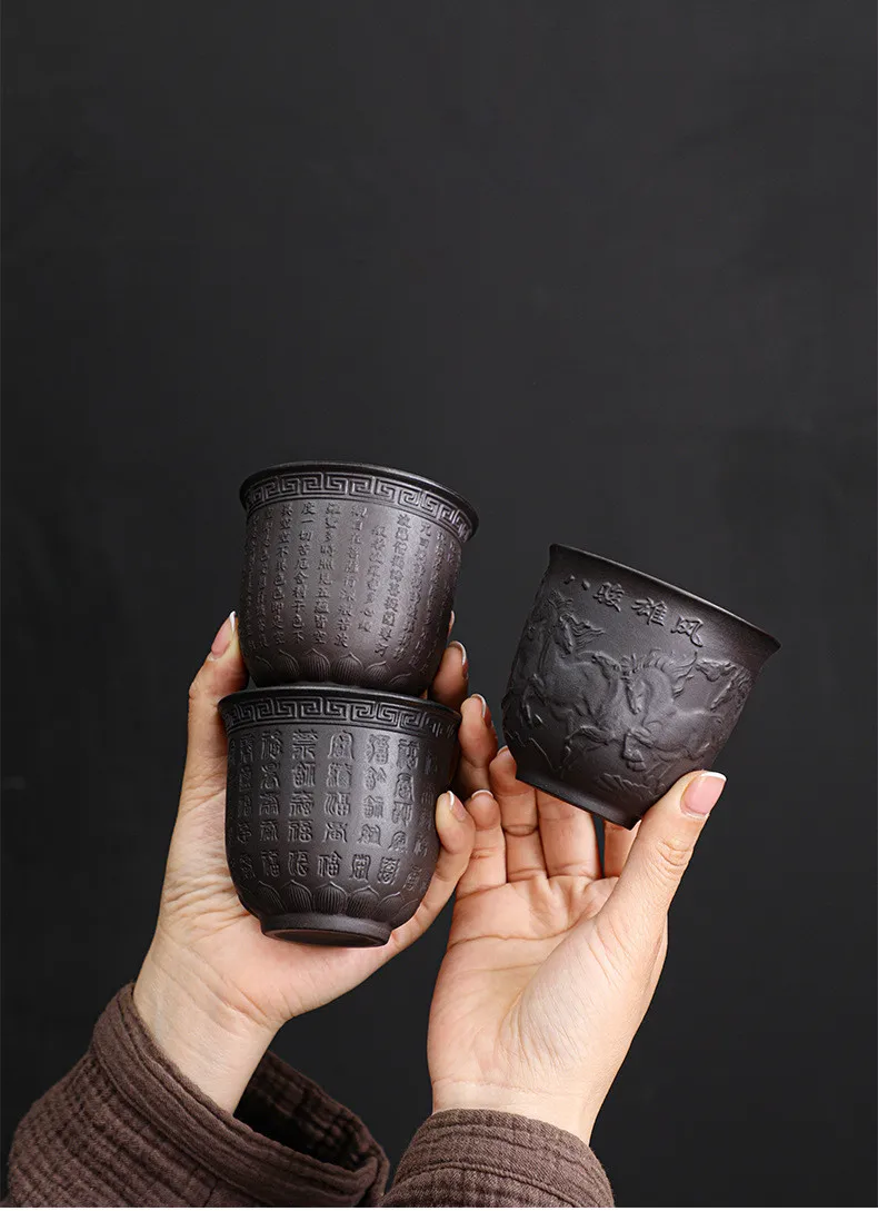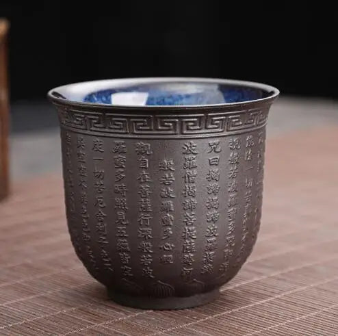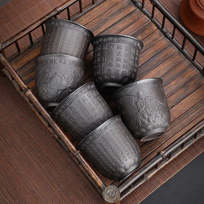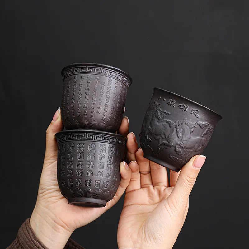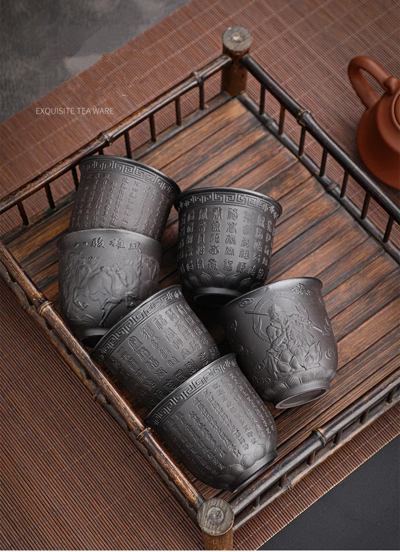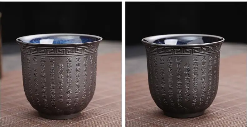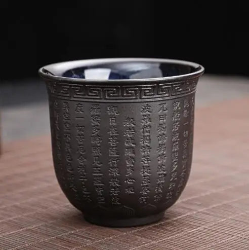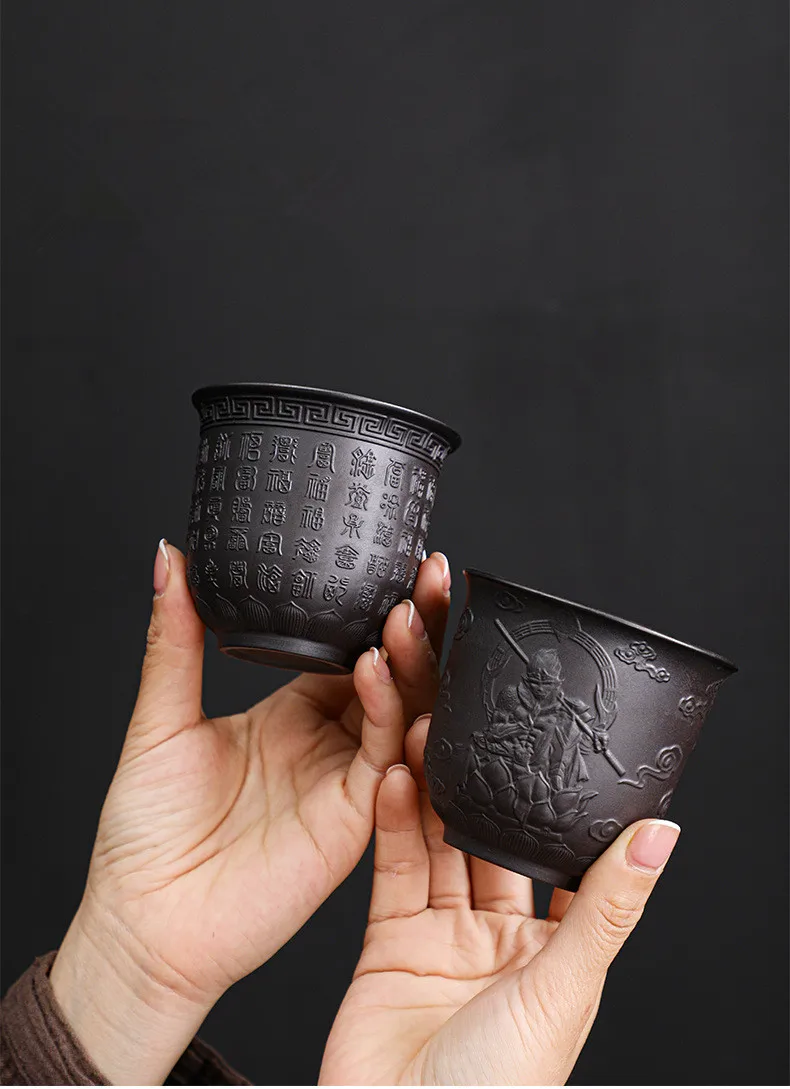 Zisha Kiln Transmission Large Master Cup, Ceramic Kungfu Baifu Tea Cup, Single Hand Built, Heart Sutra Cup, 170ml, 2Pcs Pack