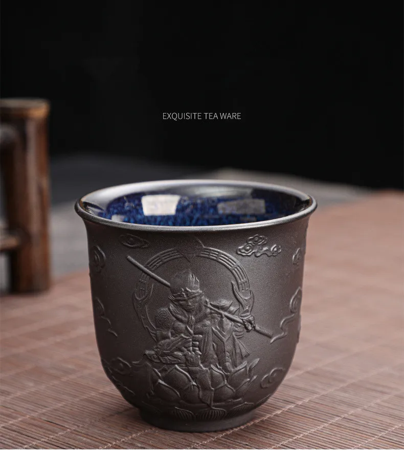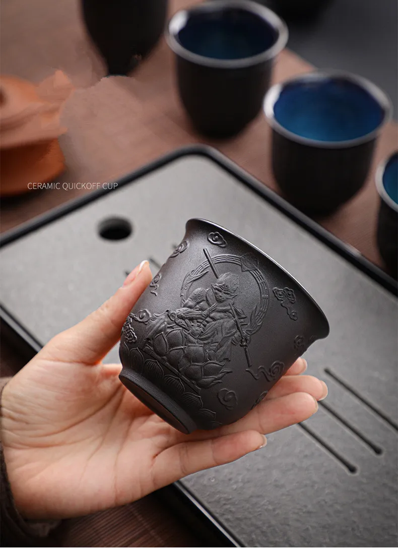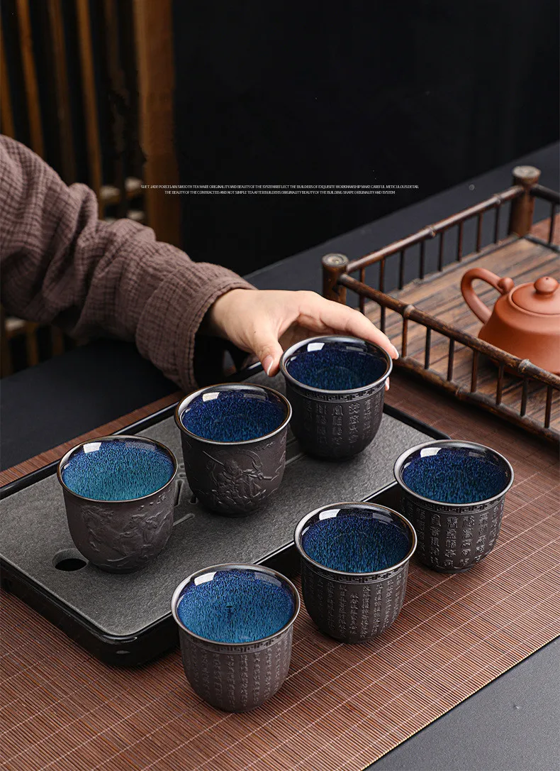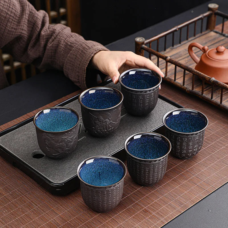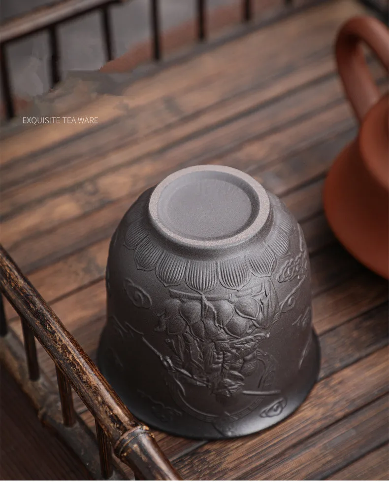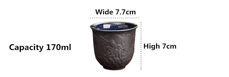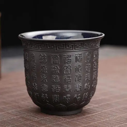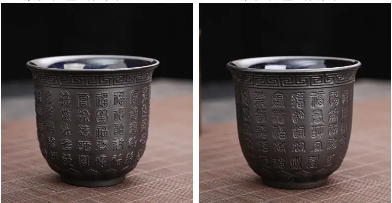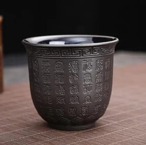 Zisha Kiln Transmission Large Master Cup, Ceramic Kungfu Baifu Tea Cup, Single Hand Built, Heart Sutra Cup, 170ml, 2Pcs Pack