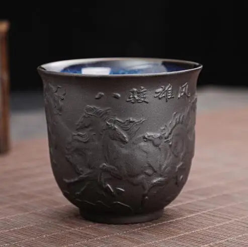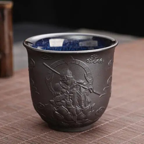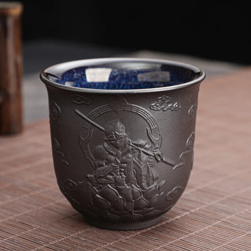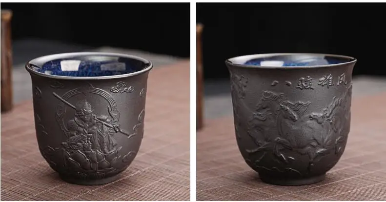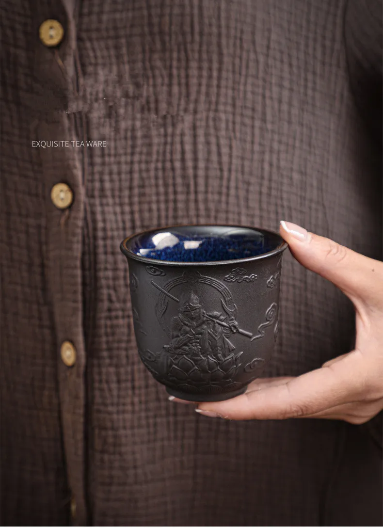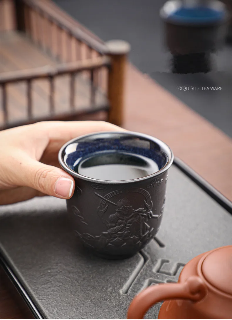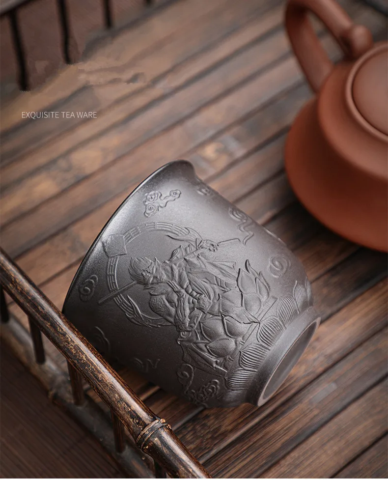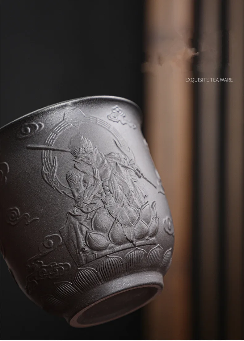Zisha Kiln Transmission Large Master Cup, Ceramic Kungfu Baifu Tea Cup, Single Hand Built, Heart Sutra Cup, 170ml, 2Pcs Pack