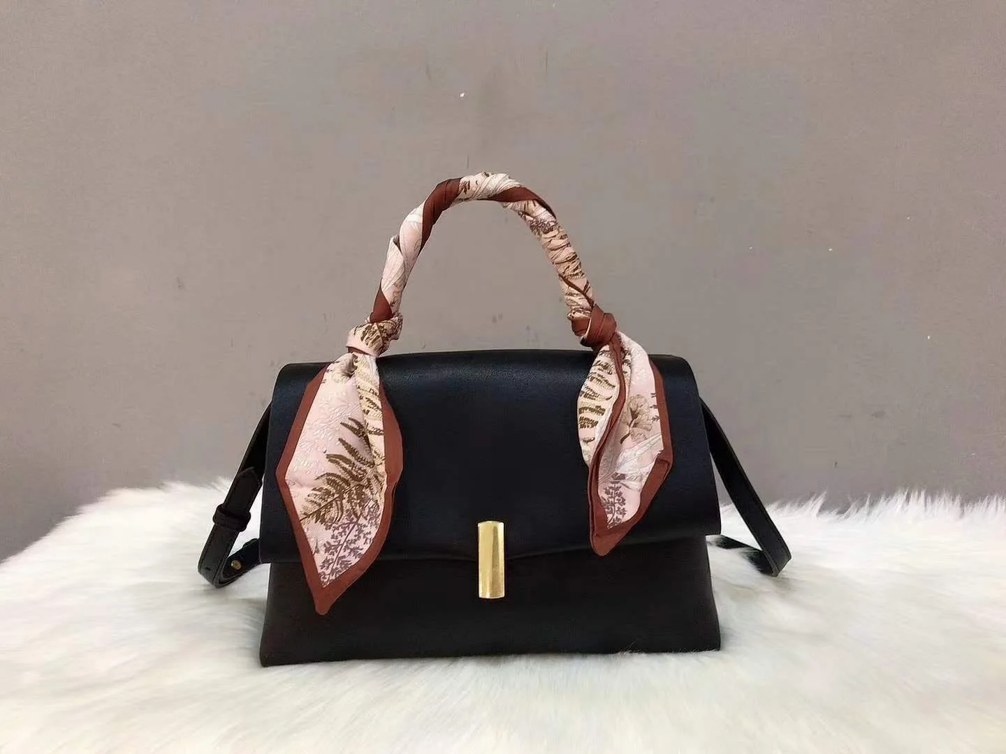 Microfiber leather upper materialCotton lining materialSilk scarf decorLength: 28cmWidth: 9cmHeight:18 cmColors: Black, Brown