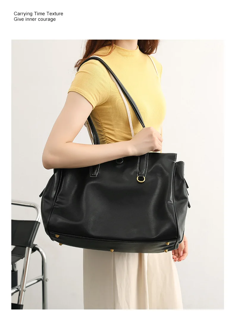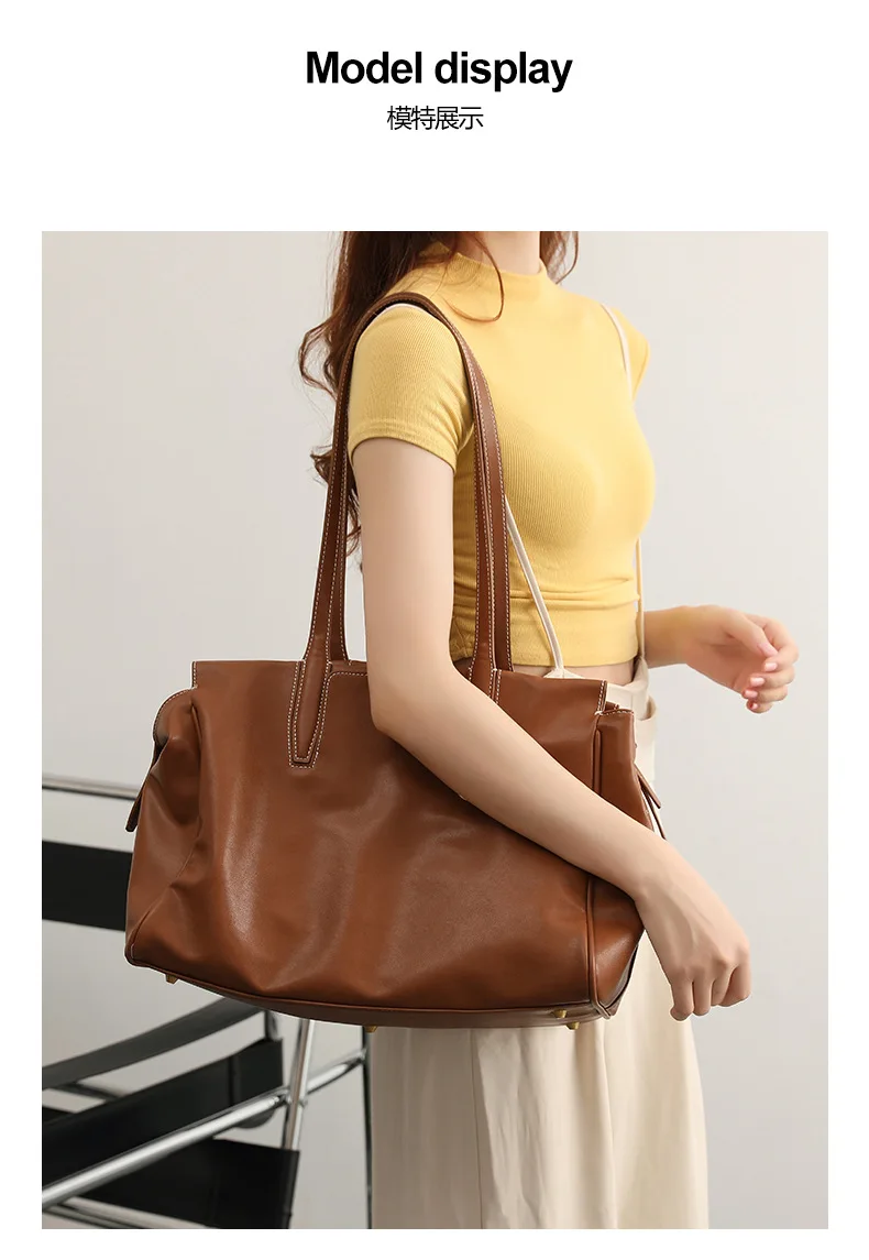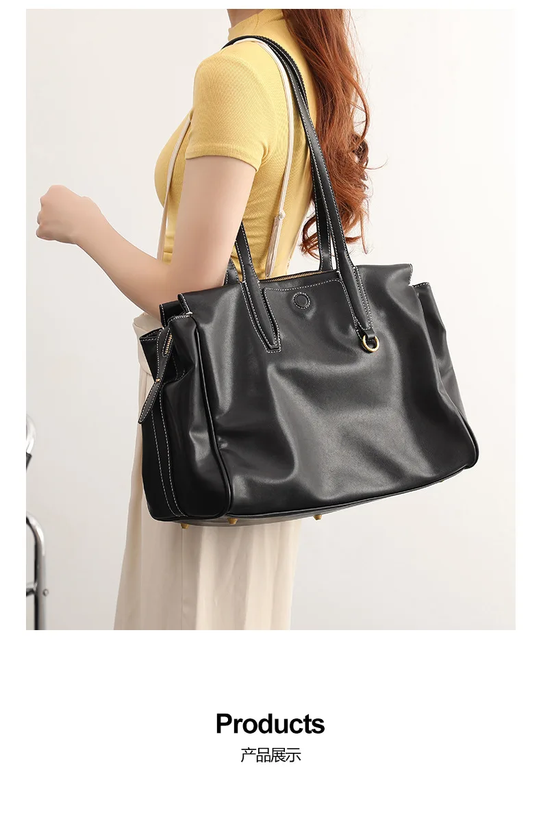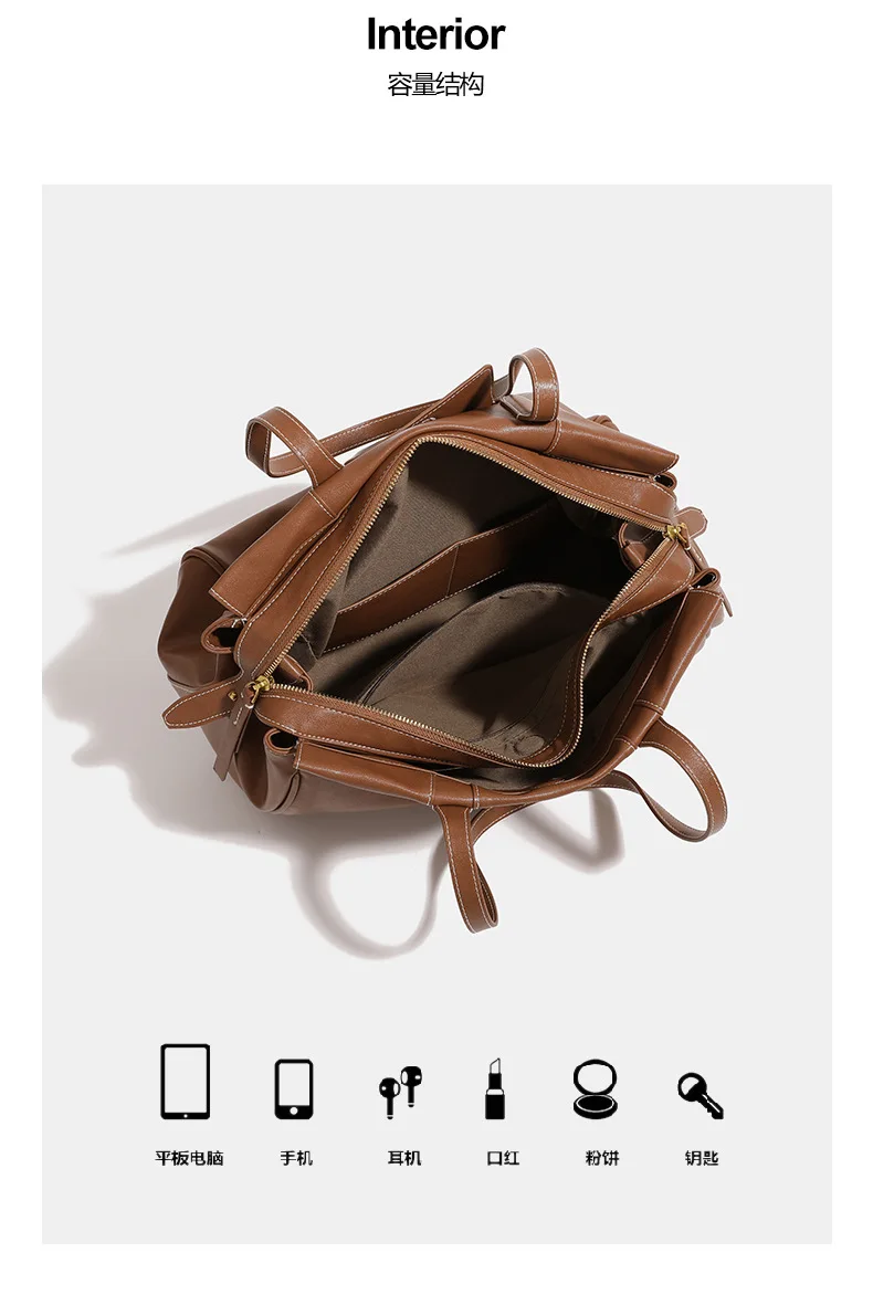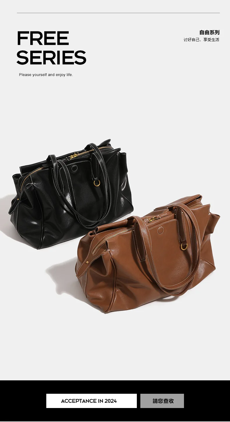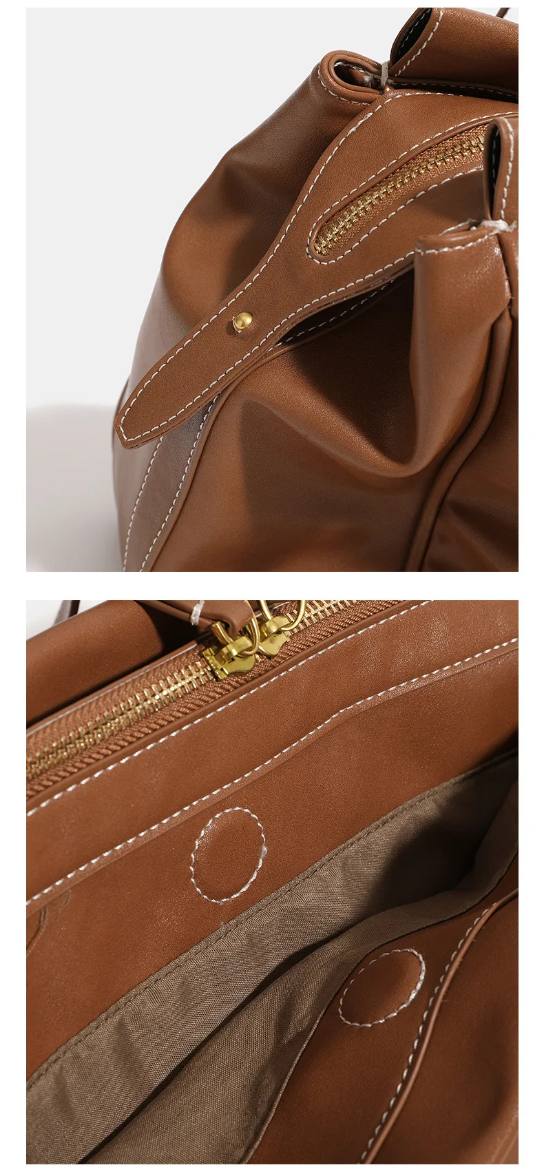 Synthetic leather upper material Polyester lining materialLarge capacitySize: 38*19*28cmSewing designColor: Black, Brown