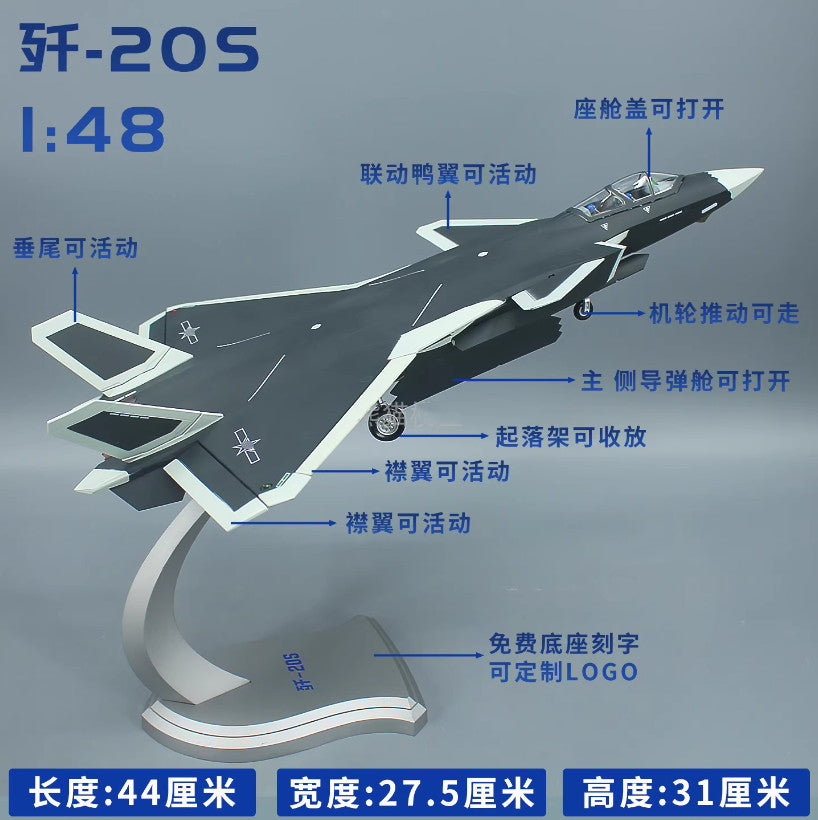 1:48 44CM J-20S Stealth Fighter Plane Aircraft Diecast Military Airplane Model Collection