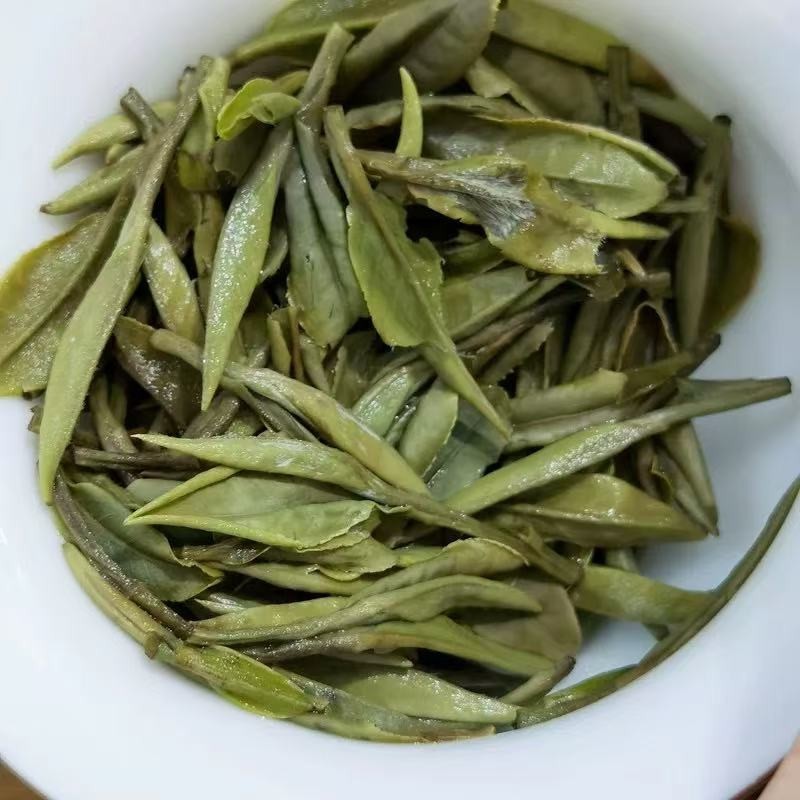White Peony, incorporates one bud and two tiny leaves, plucked in early spring, covered with tiny silver/white fuzz on one side and touting a deep sage green color on the other side. In rare cases, the leaves may be mixed with the Shui Xian tea tree.