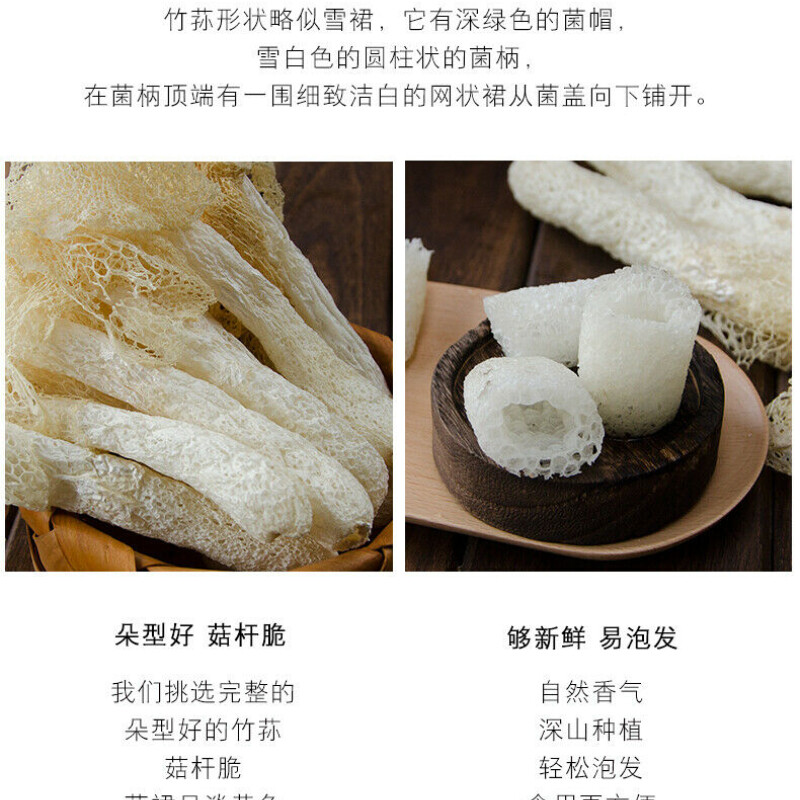 100g Organic Bamboo Fungus Natural China Dictyophora for Soup Ingredients Zhusun