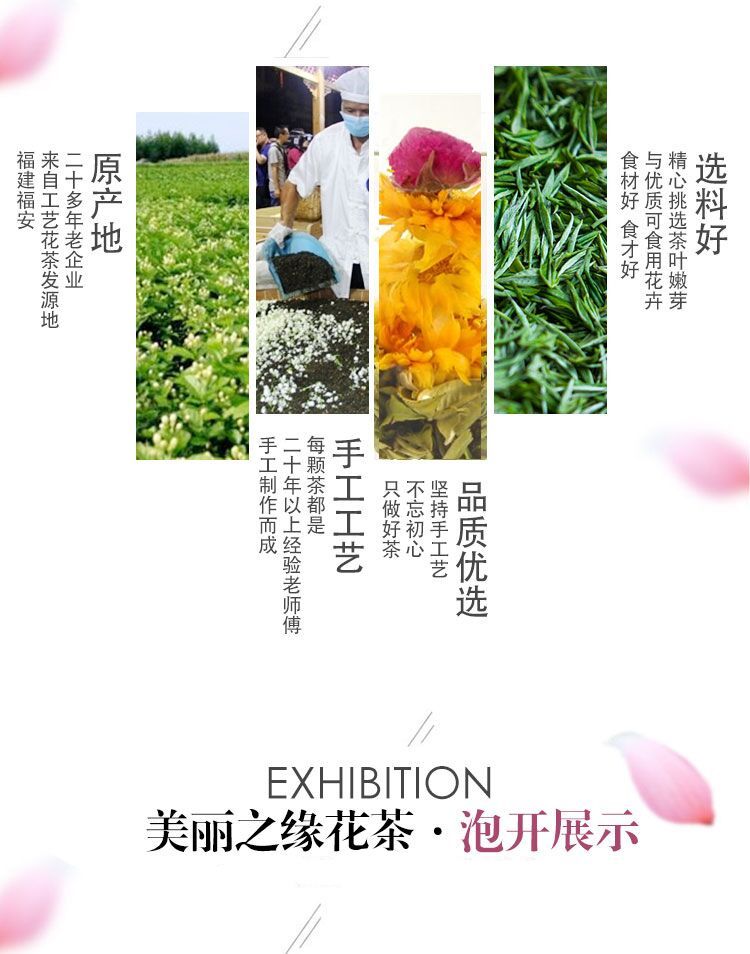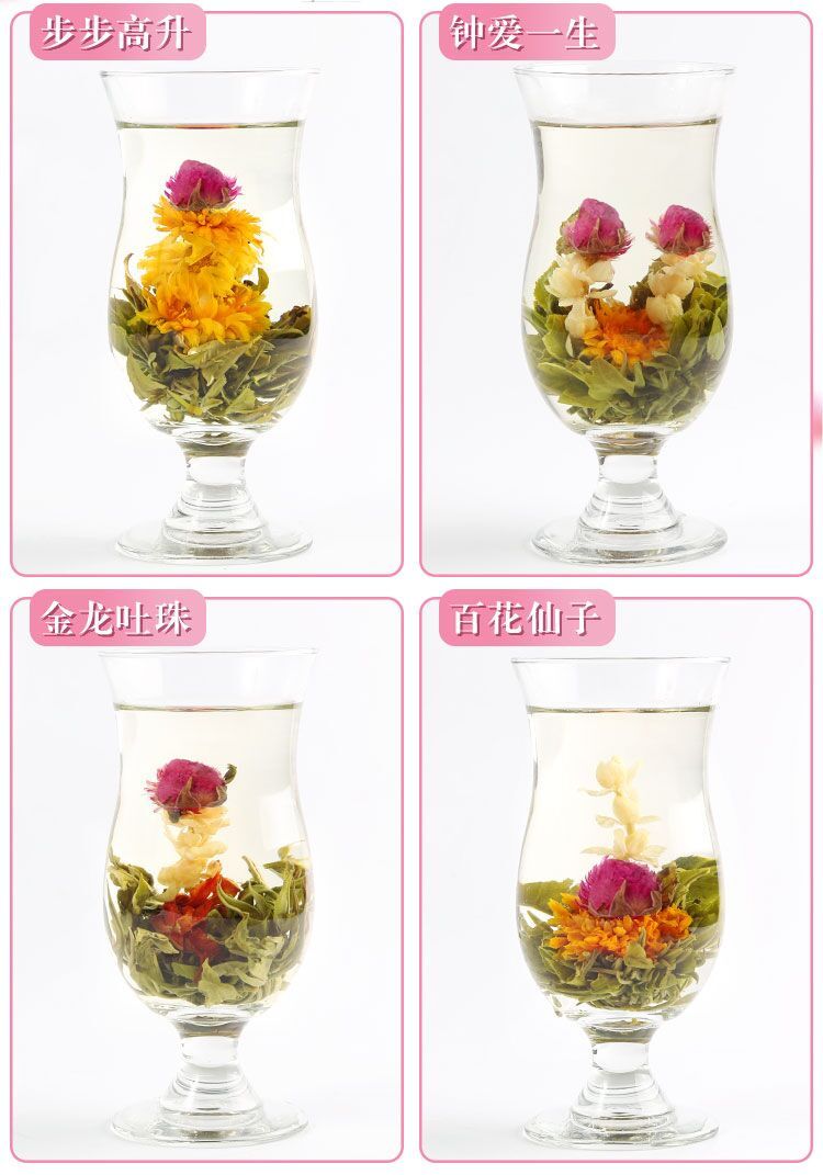 *****Chinese Artistic Teas, which are also called Blooming Teas, Artificial Teas or Artistic Teas, are all made by hand with the most complicated technology. It is a newly-innovated special green tea, which features unique appearance, splendid infusion view, lingering flower scent mixed with tea flavor and various health benefits such as delaying the ageing of cells, whitening the skins, improving immunity, etc. The tea is made of the highest grade special green tea of fresh spring crops and natural herbal flowers.