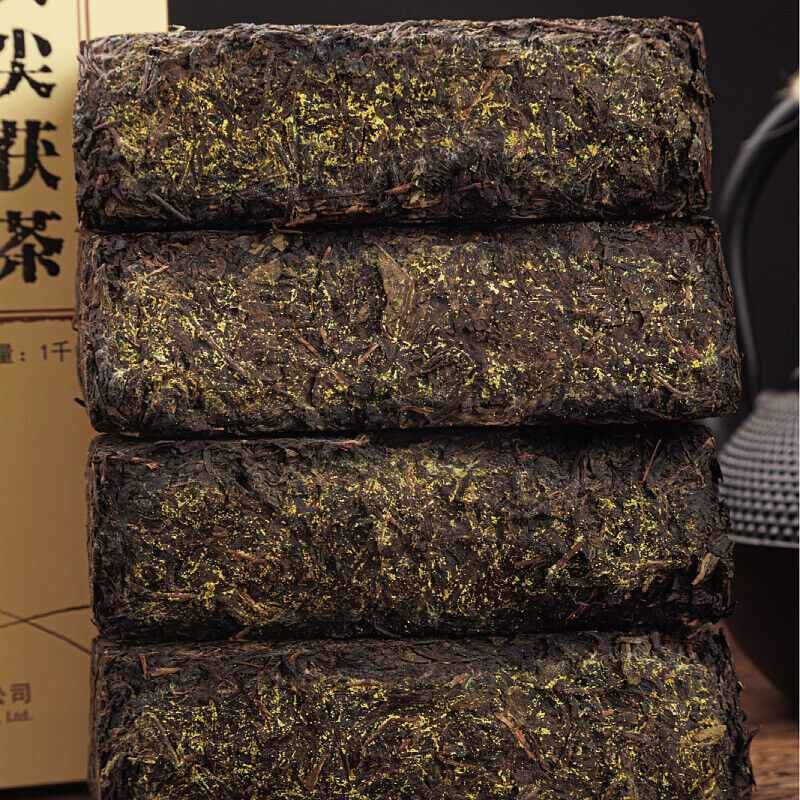 1kg Hunan Anhua black tea authentic gold flower Por brick tea hand-built Por tea