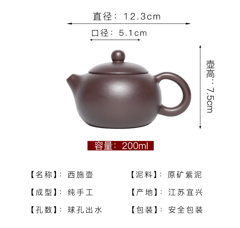 200ml Chinese Yixing Purple Clay Teapots Classic Xishi Tea Pot 188 Ball Hole Filter Kettle Master Handmade Zisha Teaware Gifts