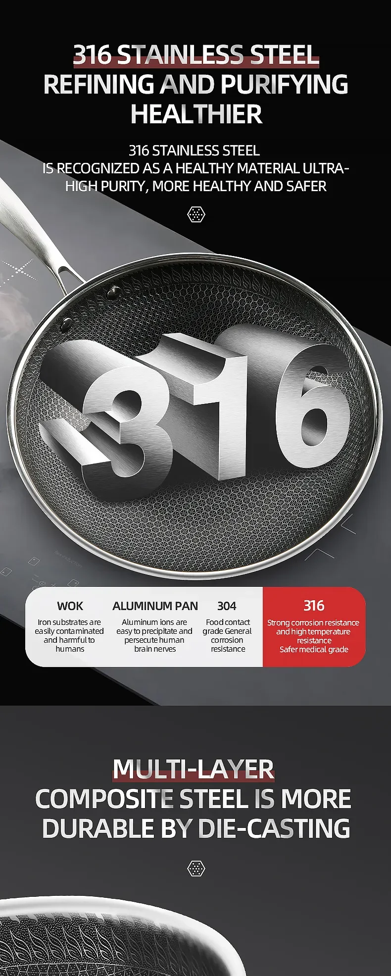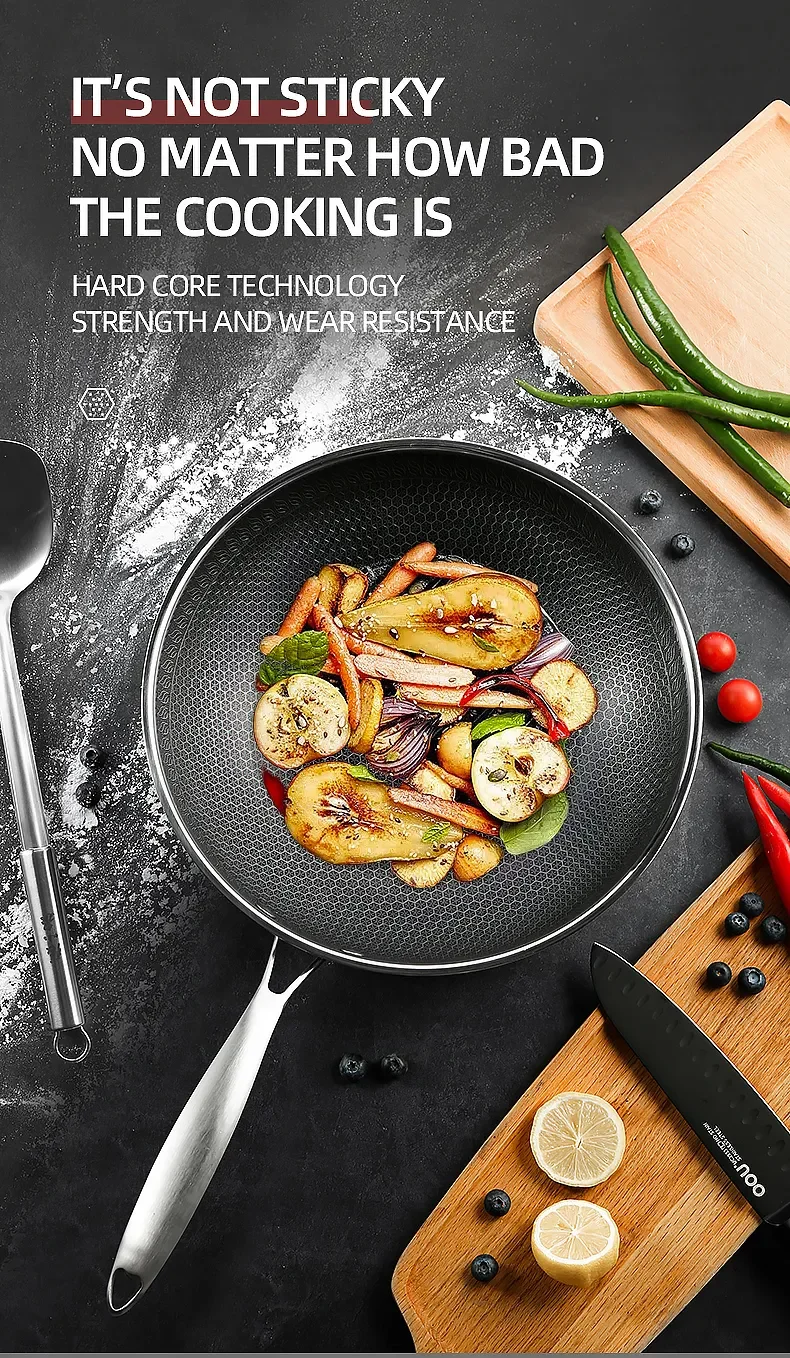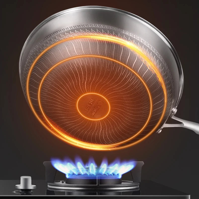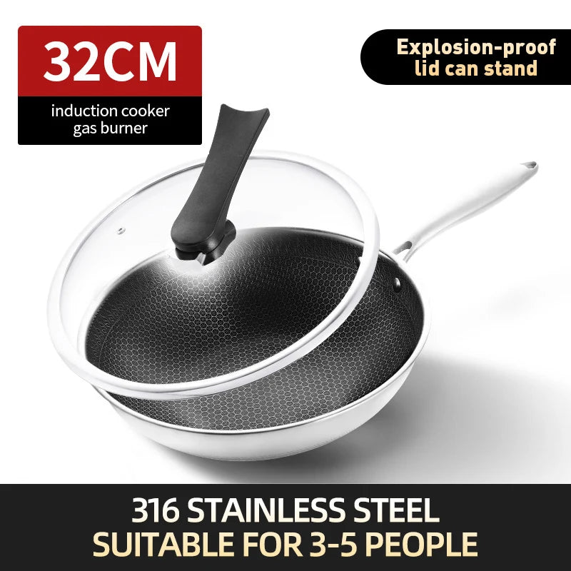 2023 New Kitchen Wok Non Stick Pan Fried Steak Cooking Tools 316 Stainless Steel Frying Pan Induction Cooker Gas Stove General
