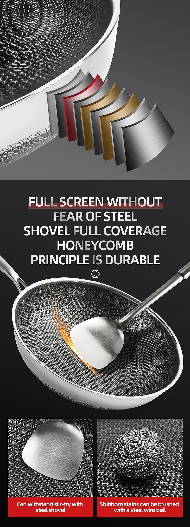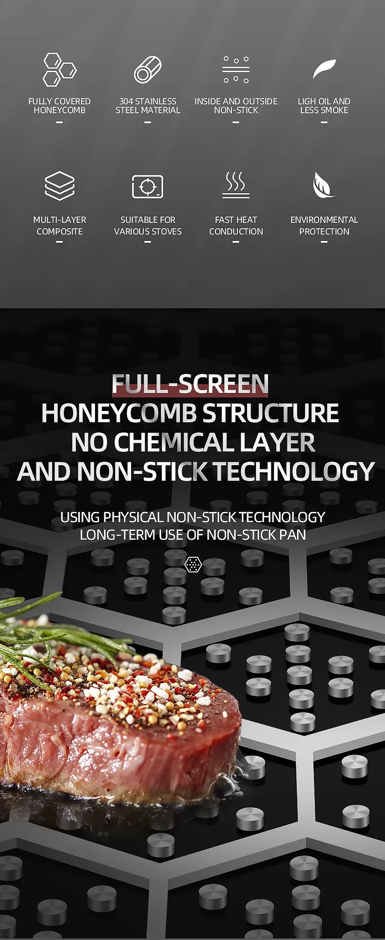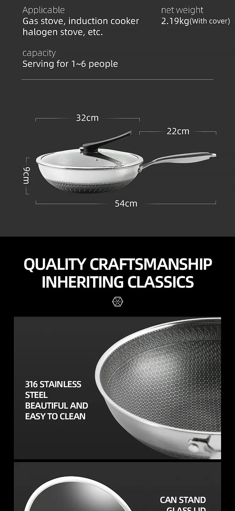 2023 New Kitchen Wok Non Stick Pan Fried Steak Cooking Tools 316 Stainless Steel Frying Pan Induction Cooker Gas Stove General