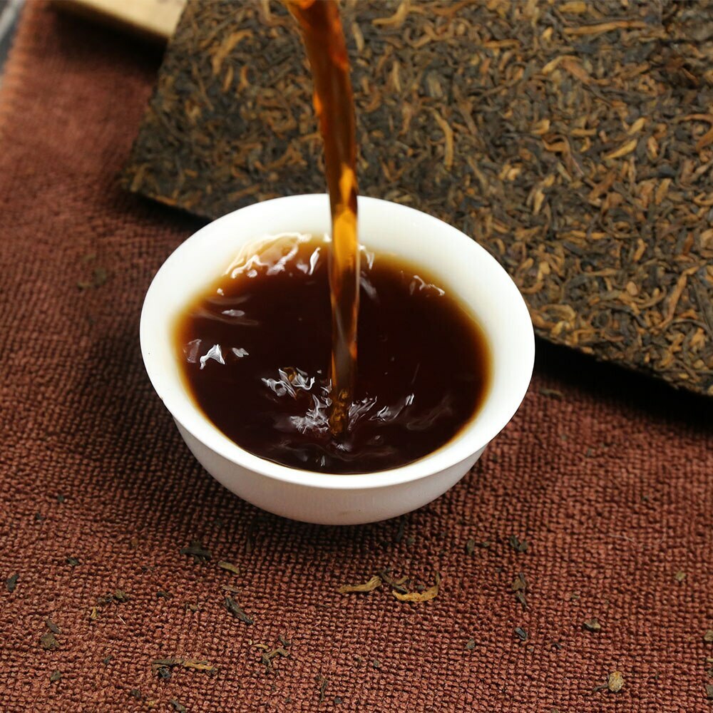 Our Yong Zhen palace puer tea brick includes many gold bud, it is complete without any fannings, has a obvious Menghai flavor.