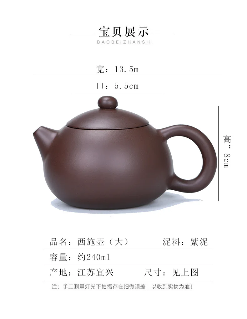 240ML Yixing Teapot Real Handmade Chinese Kettle Ball Hole Filter Purple Clay Tea Pot Puer xishi Teaware Kung Fu Zisha Teaset
