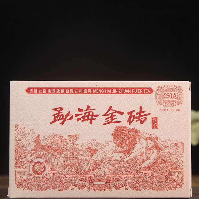 250g Ripe Tea Menghai Golden Brick Pu'er Tea Ancient Tree Aged Mellow Black Tea